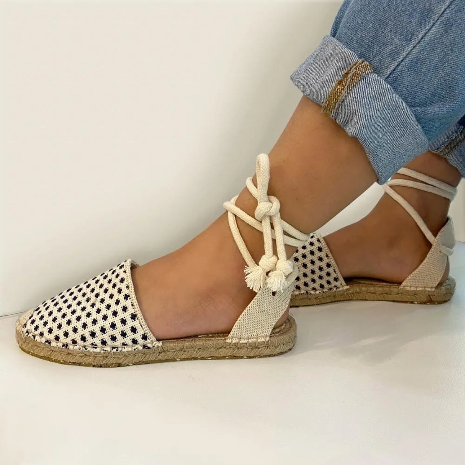 A Alpargata Laura é confeccionada em tecido. Modelagem em bico redondo e solado revestido em corda. Fechamento por amarração no tronozelo. Peça confortável de estilo alternativo totalmente Verão 22! Aproveite e garanta a sua peça exclusiva Paula Torres!