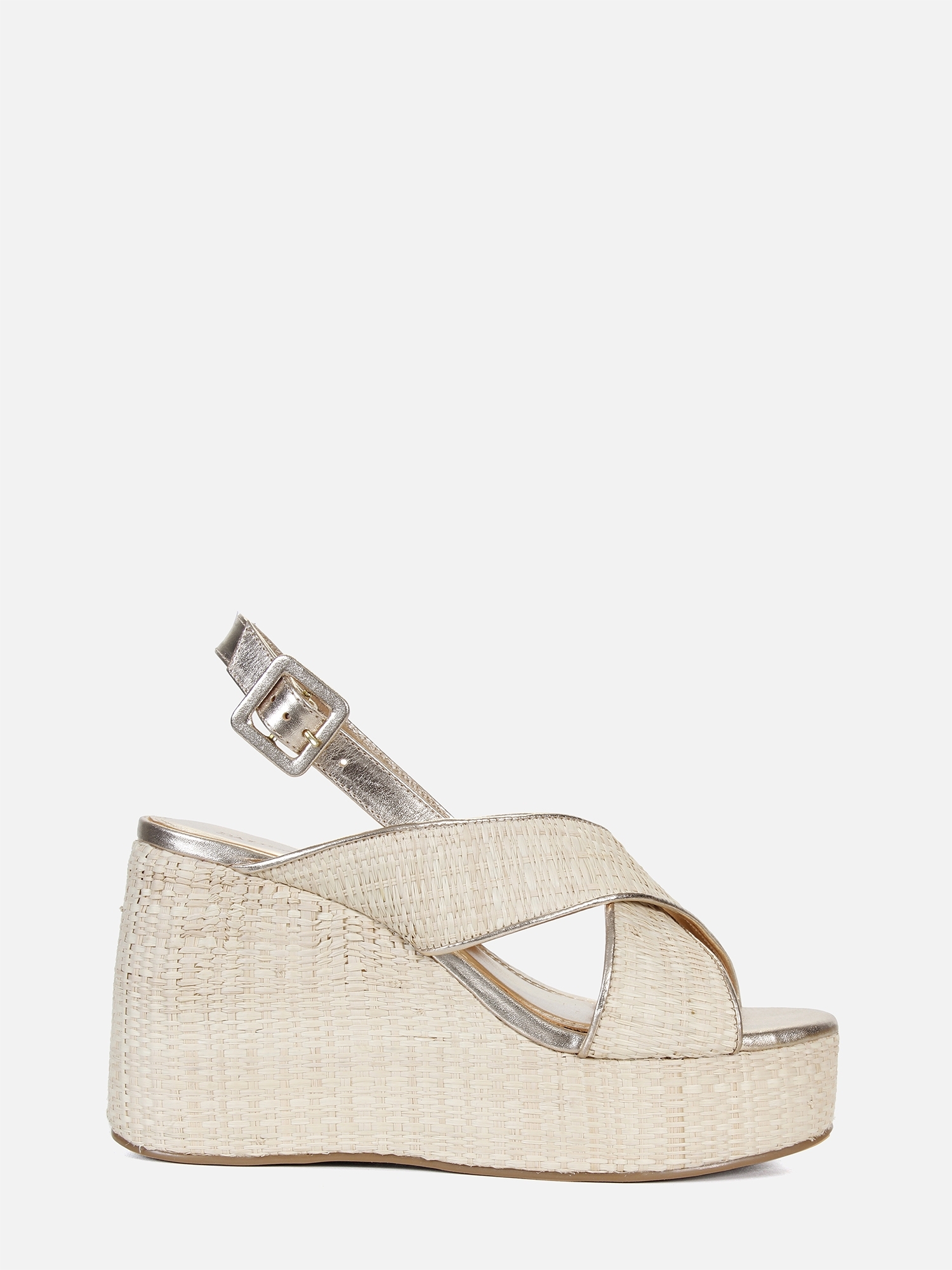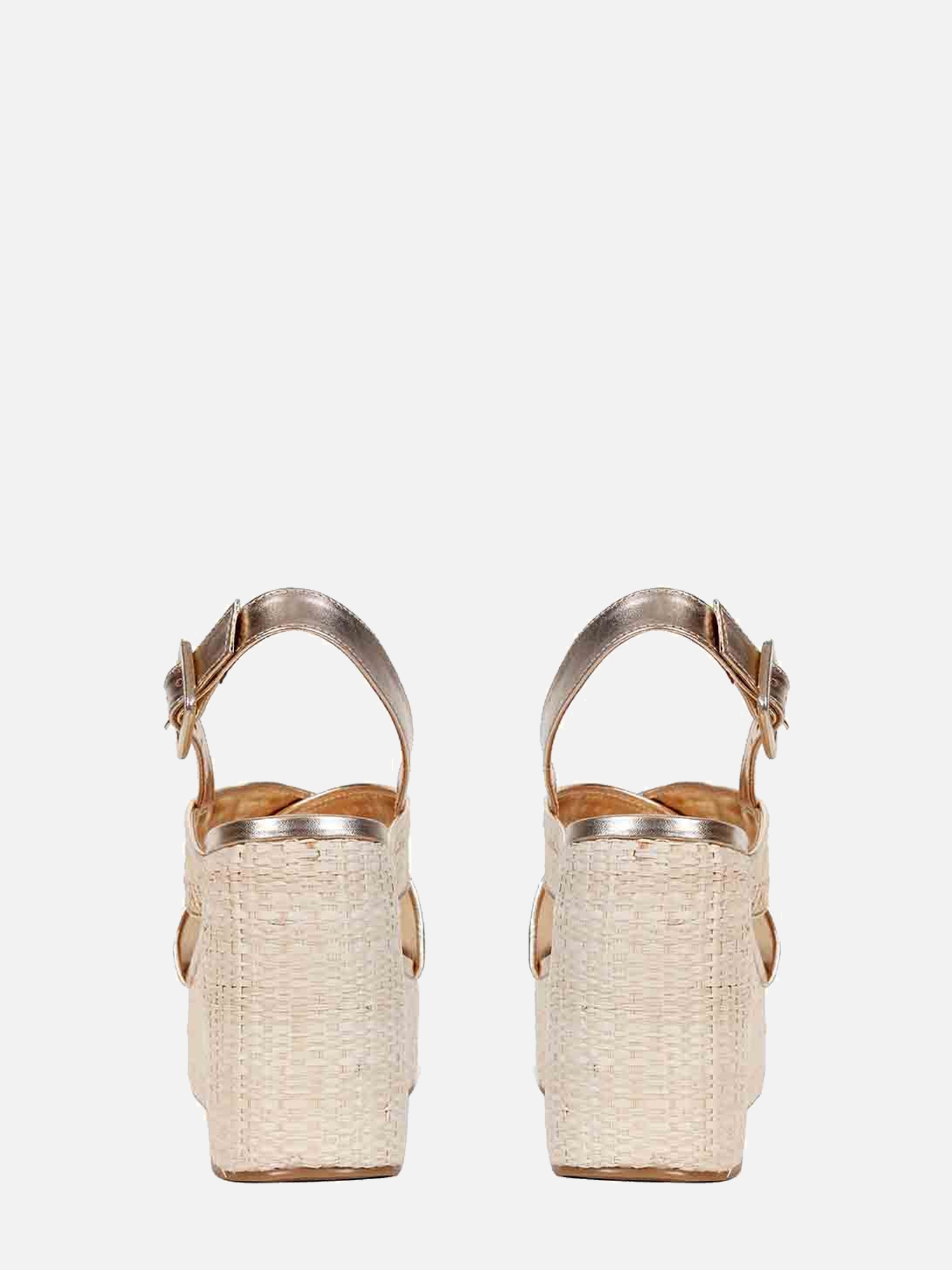 Em parceria com a marca de beachwear Água de Coco, apresentamos a Anabela Jeri. O modelo foi desenvolvido com palha natural produzida de forma artesanal no Ceará e couro metalizado. A sandália possui um salto plataforma robusto e duas tiras largas em palha com acabamento em couro que se cruzam sobre o peito do pé, formando um X. Para o ajuste, há uma fivela lateral na tira em couro que passa pelo calcanhar. Solado emborrachado que proporciona maior aderência.