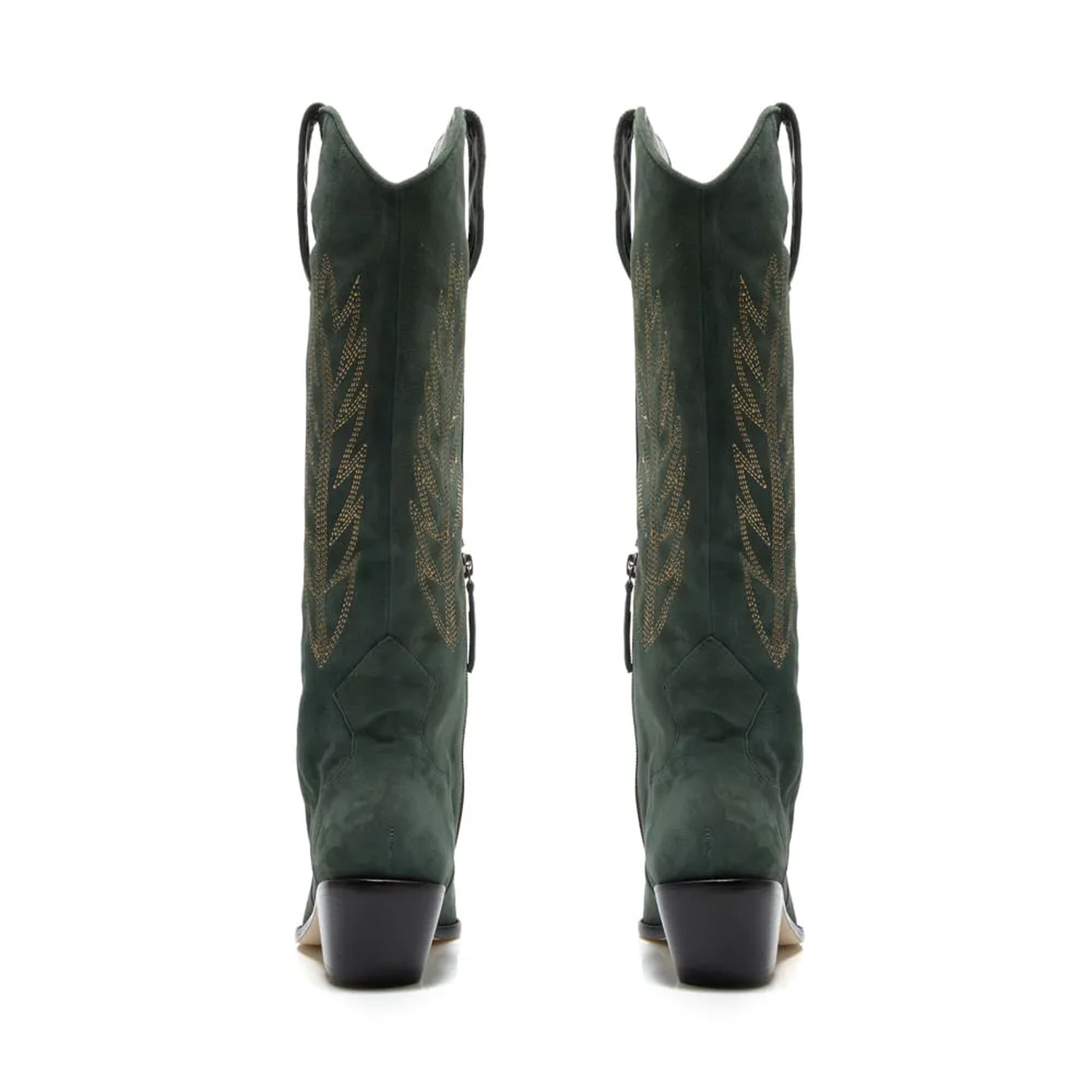 Com espirito nostálgico, a Bota Berlim busca referencias dos anos 80. Produzida em camurça e forro e solado de couro, o modelo é apresentado com bordados expressivos nas laterais e o fechamento é feito por zíper com puxador em couro. Salto médio perfeito para o uso no dia a dia, ou até mesmo em looks mais elaborados.