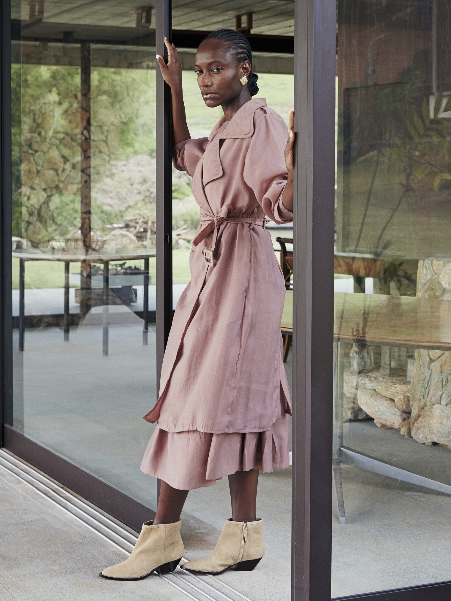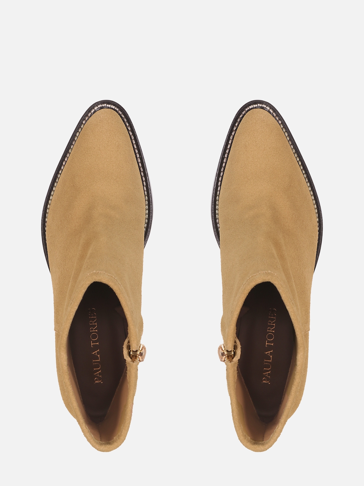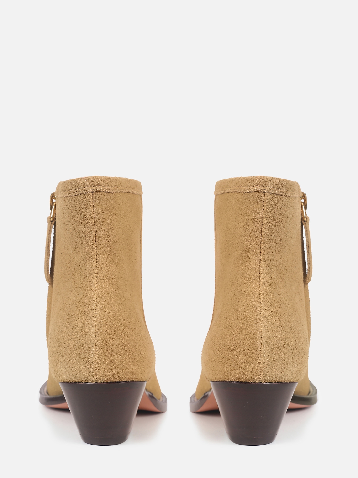 A Bota Carlota é produzida com camurça, trazendo um visual sofisticado e contemporâneo com inspiração no estilo western. O modelo de cano curto possui design clean e linhas minimalistas, com zíper interno para fechamento, que valorizam a textura do material e garantem versatilidade para diferentes composições. Conta com salto médio, que proporciona conforto e estabilidade no uso diário, e solado de couro, que confere acabamento premium, maior durabilidade e melhor respirabilidade, elevando a qualidade do produto.