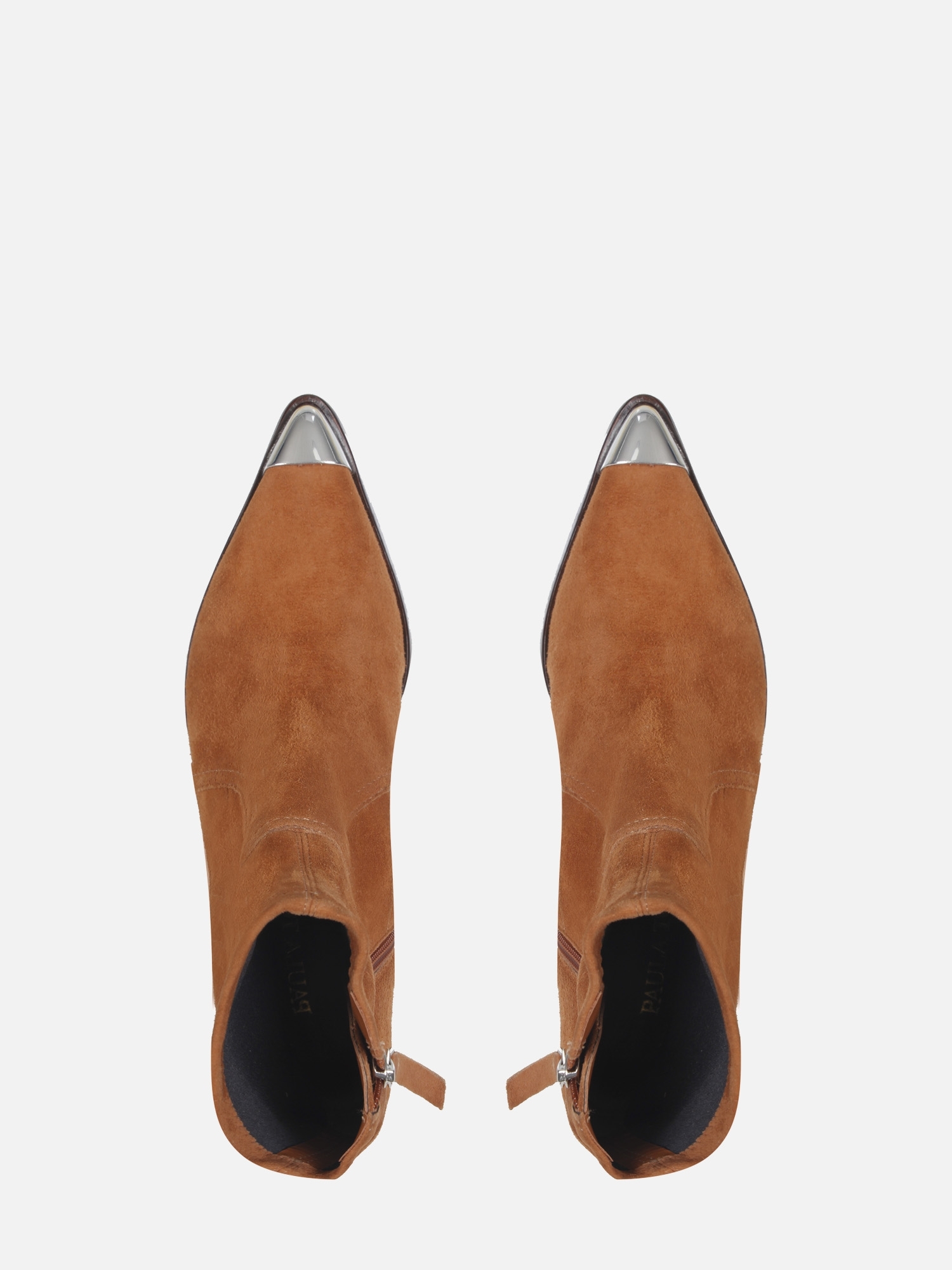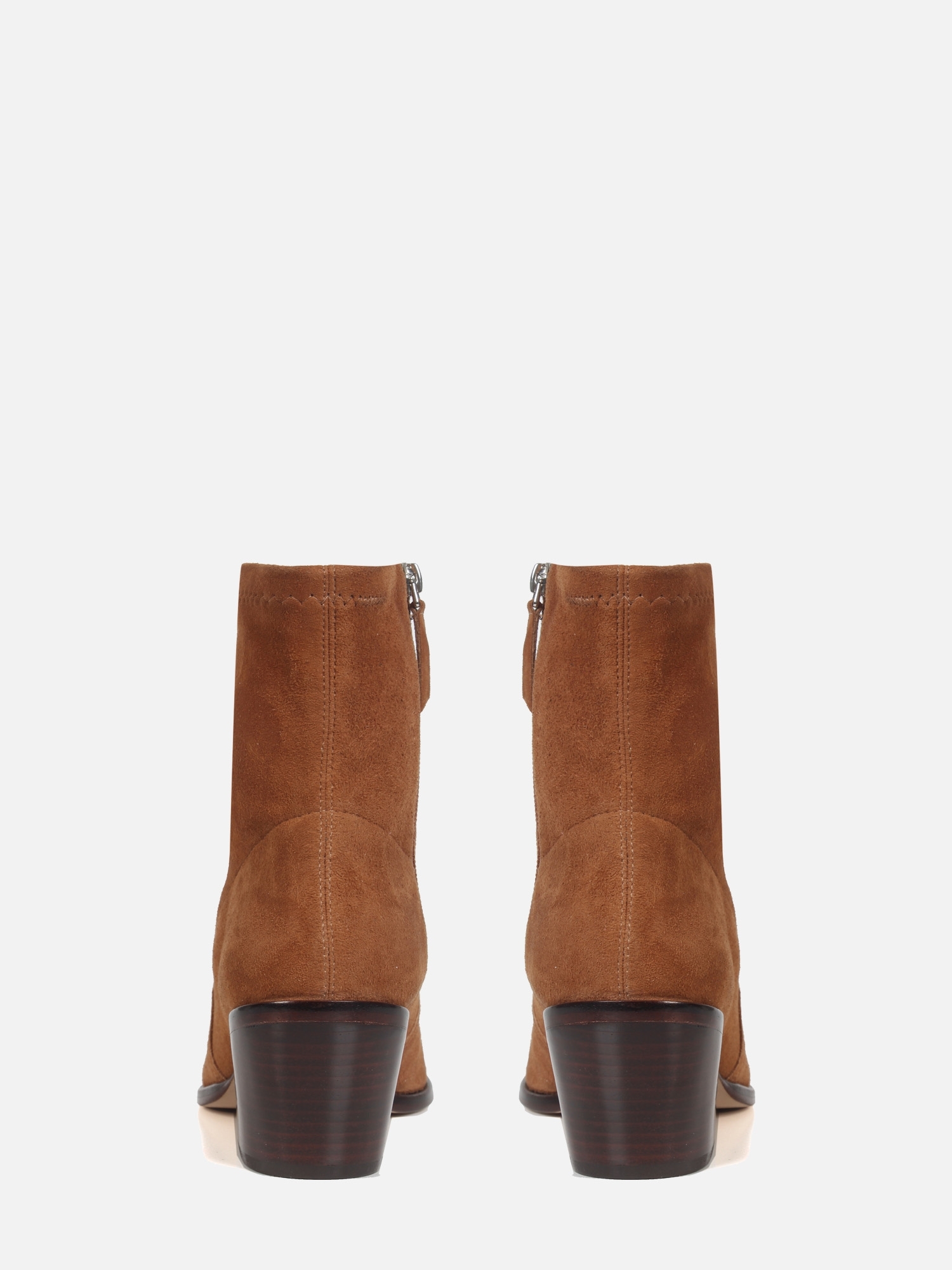 A Bota Cléo é um calçado que toda mulher merece ter no armário por sua versatilidade, além de ser um modelo clássico e refinado. Confeccionada em camurça, que confere maior flexibilidade, ela se adapta facilmente aos pés e garante sensação de maciez. Com um design contemporâneo, a bota apresenta um bico fino com aplicação de ponteira em metal prateado e acabamento pespontado. Além disso, o salto médio bloco proporciona estabilidade e segurança ao caminhar, solado em couro e fechamento lateral por zíper.