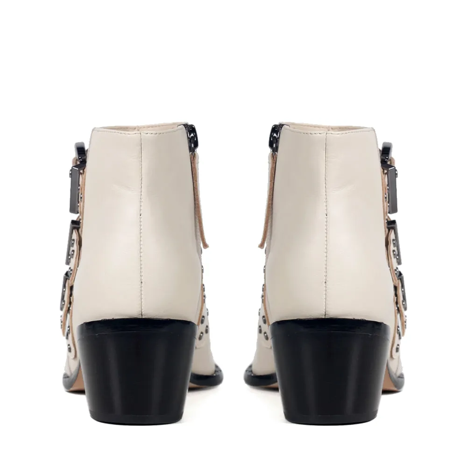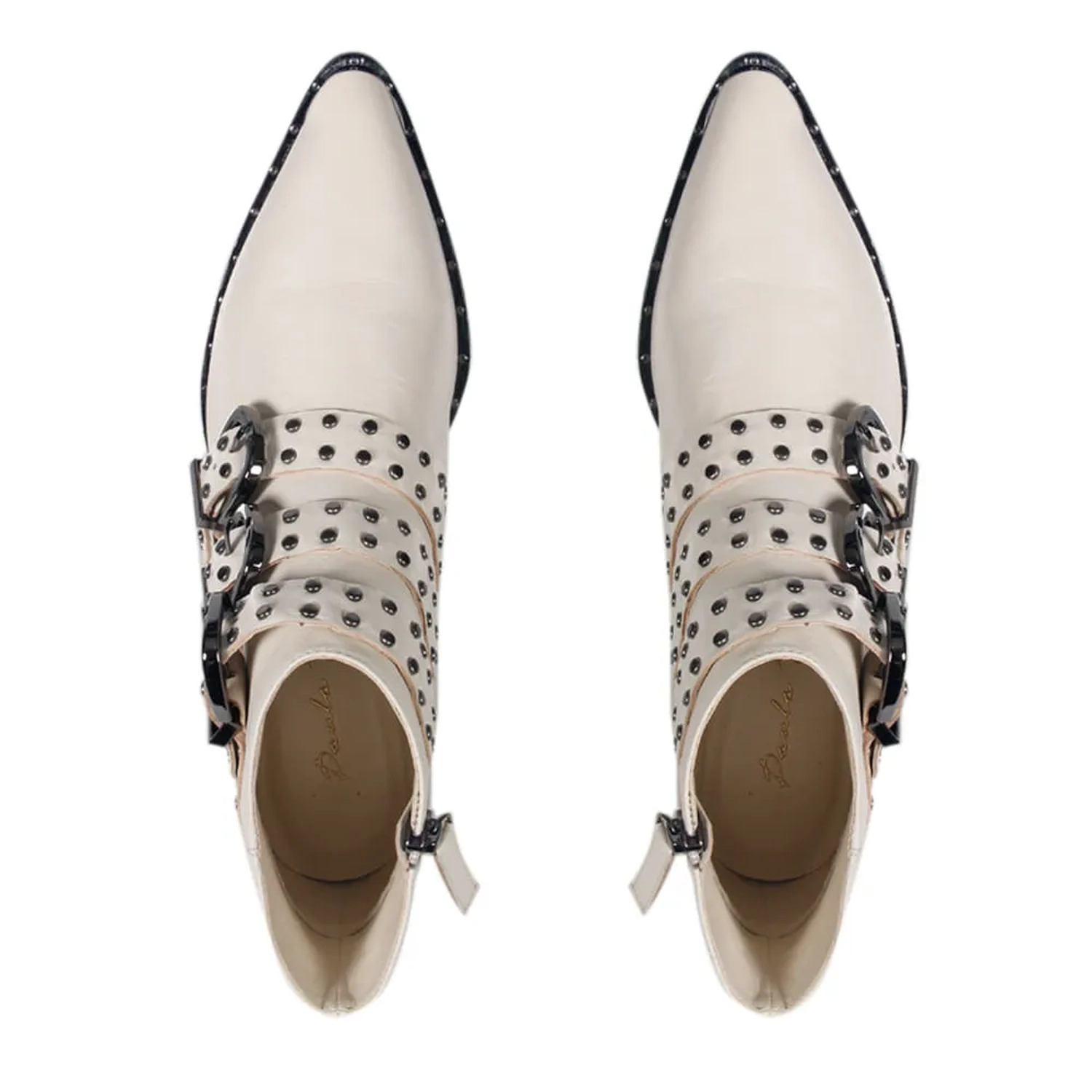A Bota Dublin é confeccionada em couro. A modelagem em bico fino metalizado e salto grosso, conferem um visual despojado. Os rebites nas tiras e as fivelas metalizadas oferecem mais personalidade ao modelo. O fechamento por zíper completa a peça, pois transmite a atitude de algo prático e estiloso.