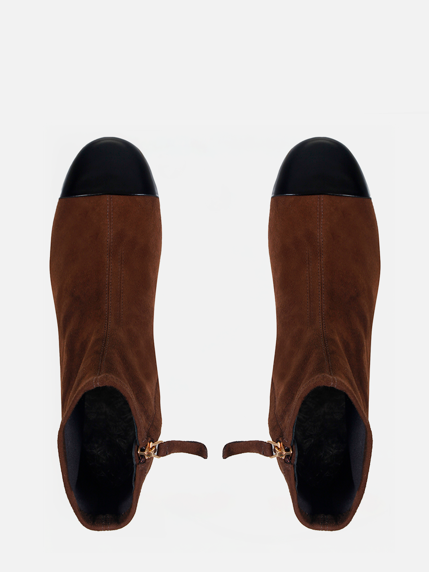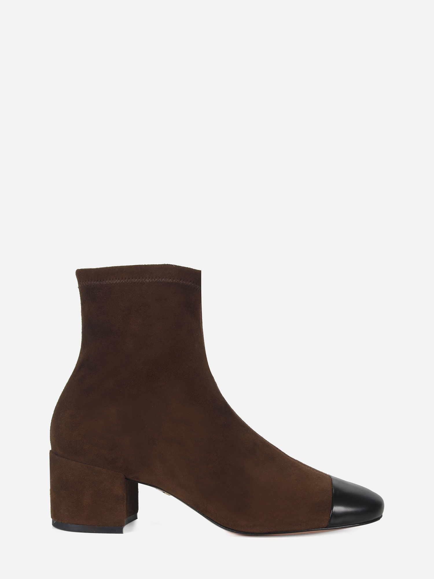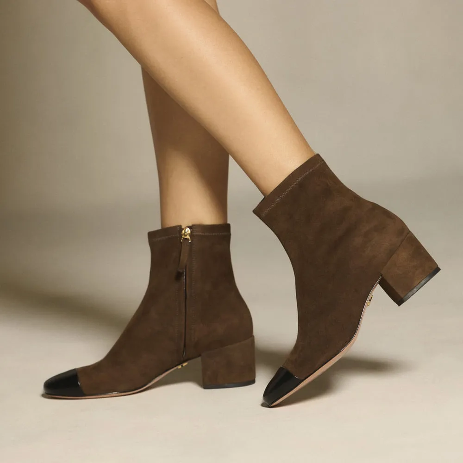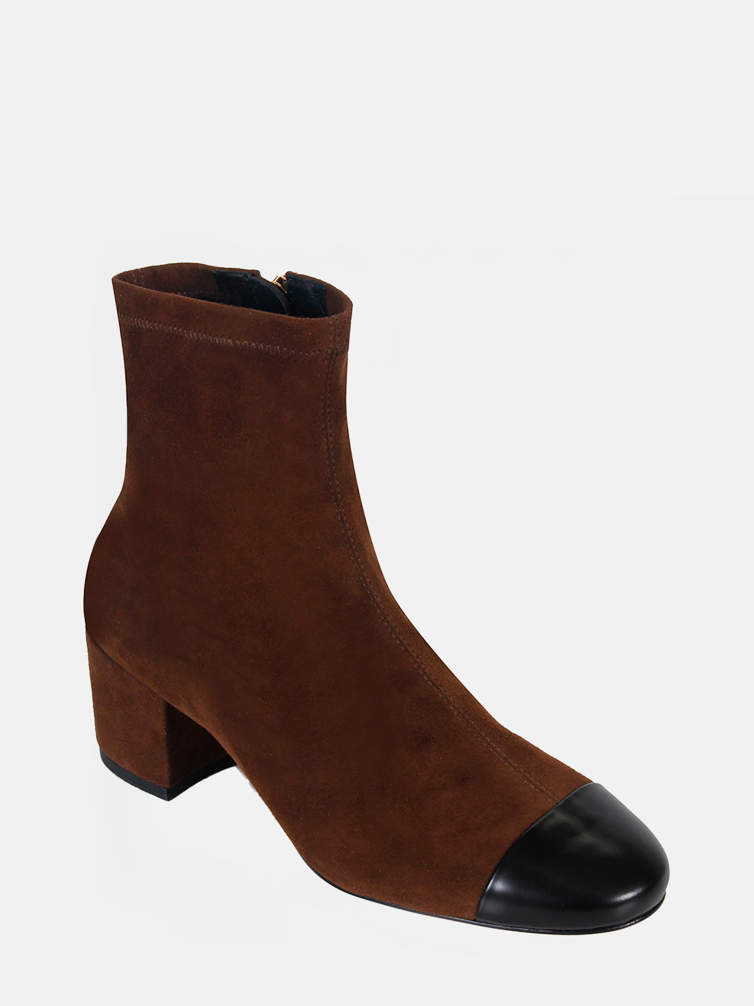 A Bota Duda é feita em camurça stretch de alta qualidade. O design sofisticado apresenta bico redondo e salto bloco médio. Para facilitar o calce, conta com um zíper lateral, enquanto a biqueira em couro com toque de brilho acrescenta um detalhe elegante. O solado em couro completa o modelo com durabilidade e refinamento.