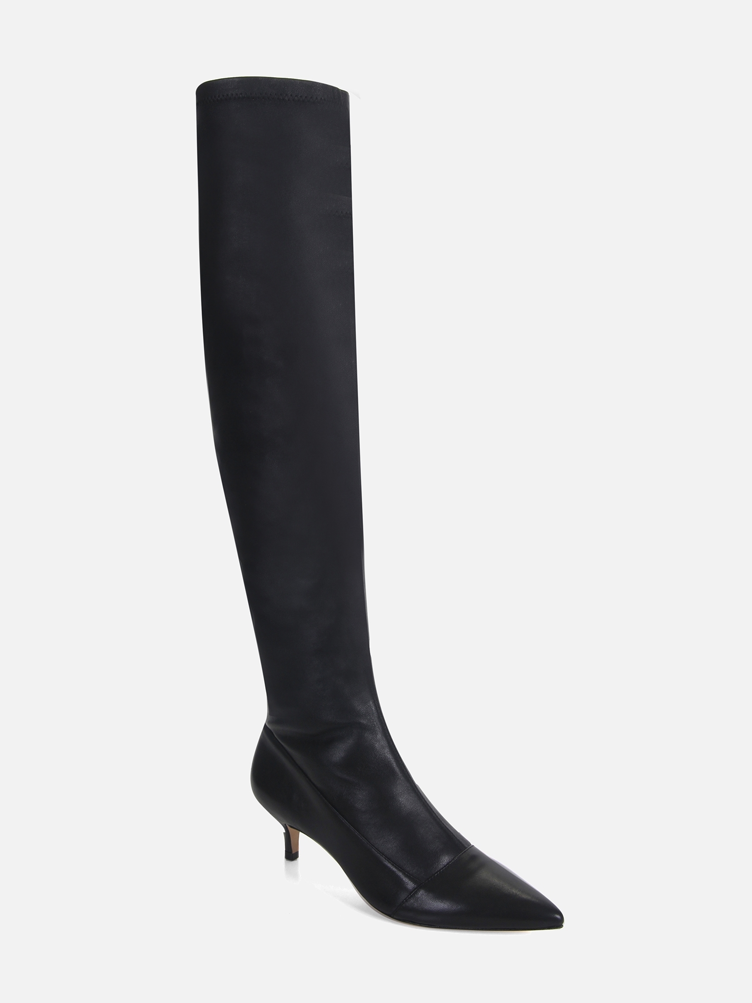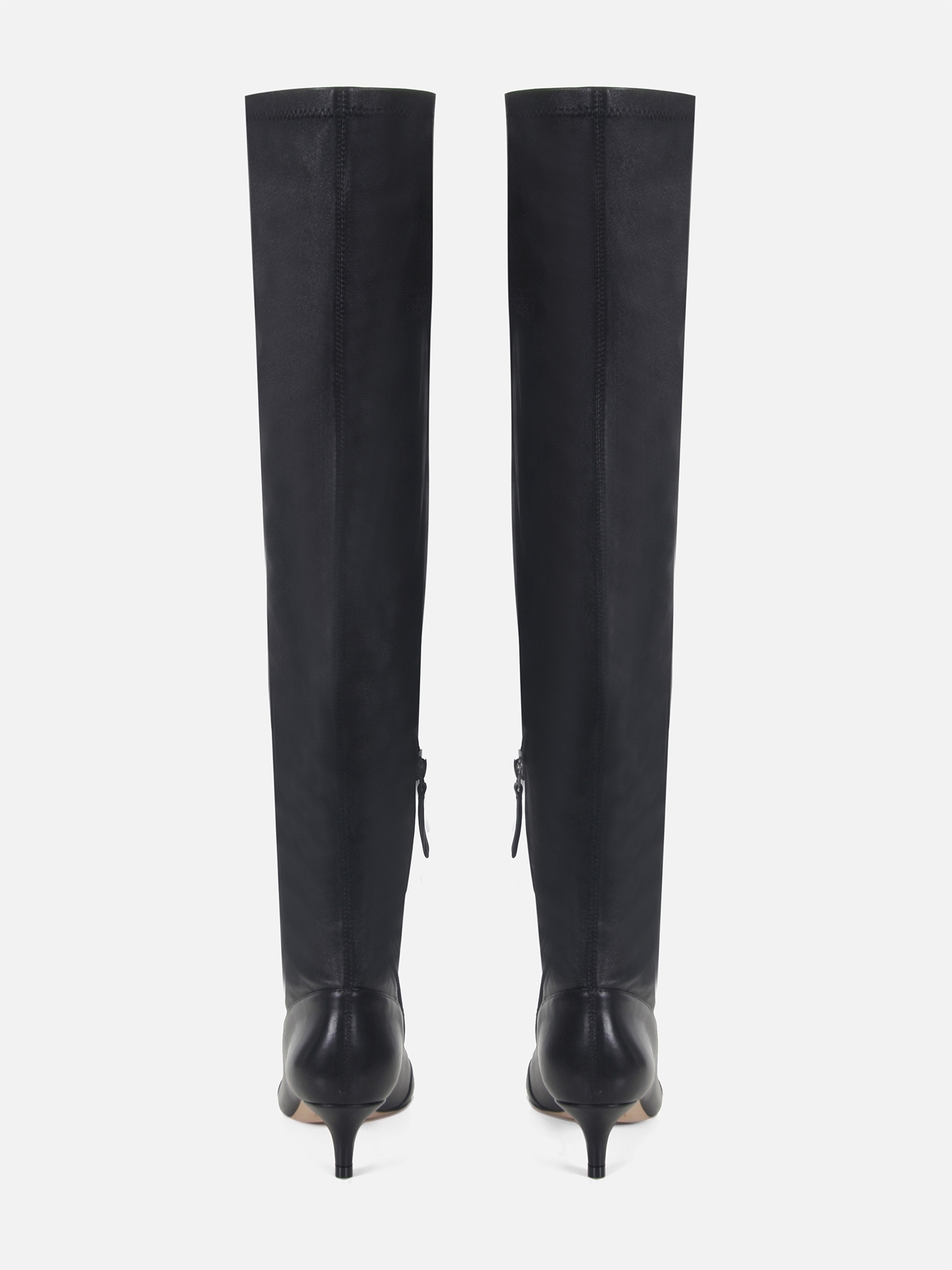 A Bota Fran Over The Knee é um calçado imponente, que realça o poder do look e trazem personalidade ao visual! Confeccionada em couro, a bota possui um bico fino que adiciona elegância, possui kitten heels, ou seja, um salto baixo e delicado. O seu cano têm 47 centímetros, é uma excelente escolha para combinar com saias, vestidos, shorts ou calças justas para dar maior destaque ao calçado. O seu fechamento é na lateral através de zíper. É a aposta perfeita para quem quer conhecer mais sobre o conforto e qualidade Paula Torres.