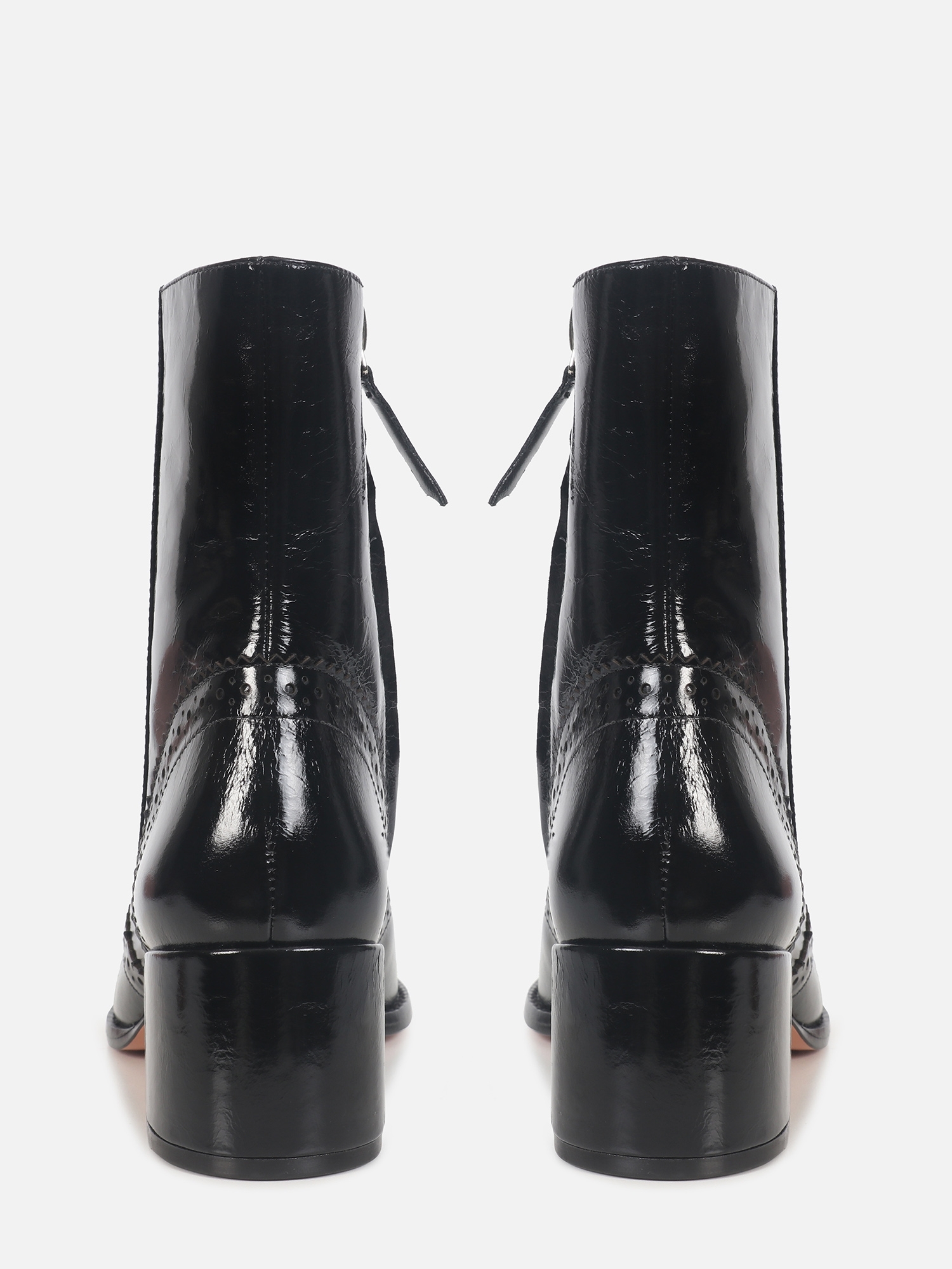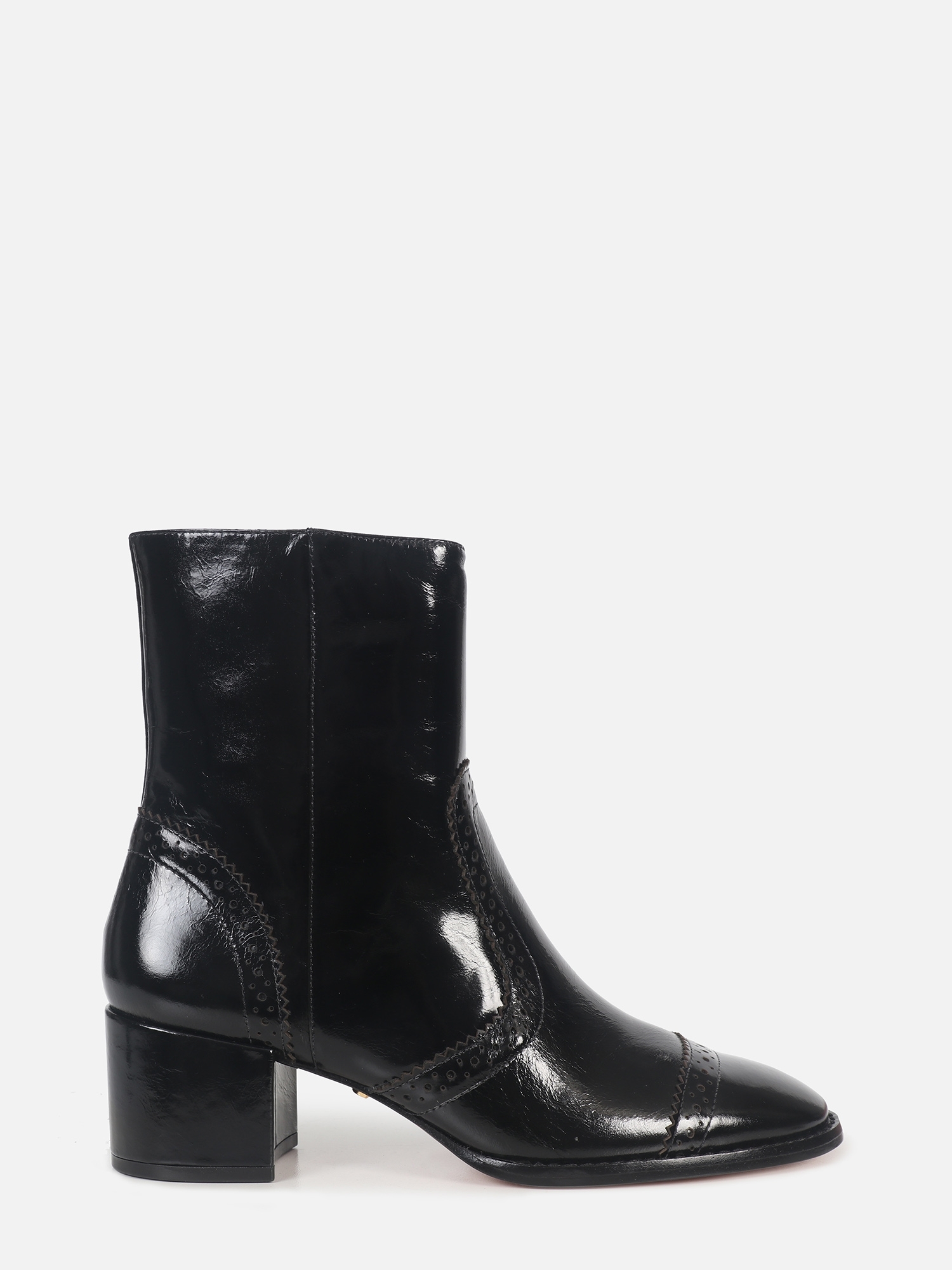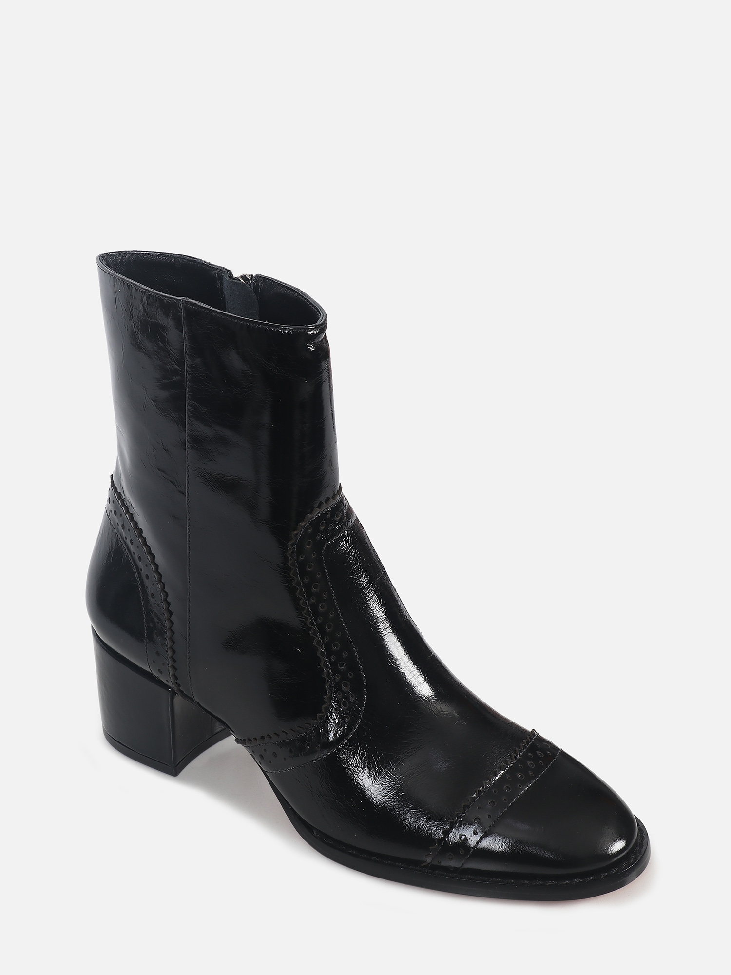 A Bota Giu é produzida em couro, trazendo um visual sofisticado e marcante com acabamento brilhoso. O modelo de cano curto apresenta recortes clássicos e detalhes perfurados no cabedal, conhecidos como brogues, que valorizam o design e adicionam personalidade ao produto. Conta com salto médio grosso, que garante conforto e estabilidade no uso diário, fechamento interno por zíper e solado de couro, que confere acabamento premium, maior durabilidade e melhor respirabilidade, elevando a qualidade do produto.