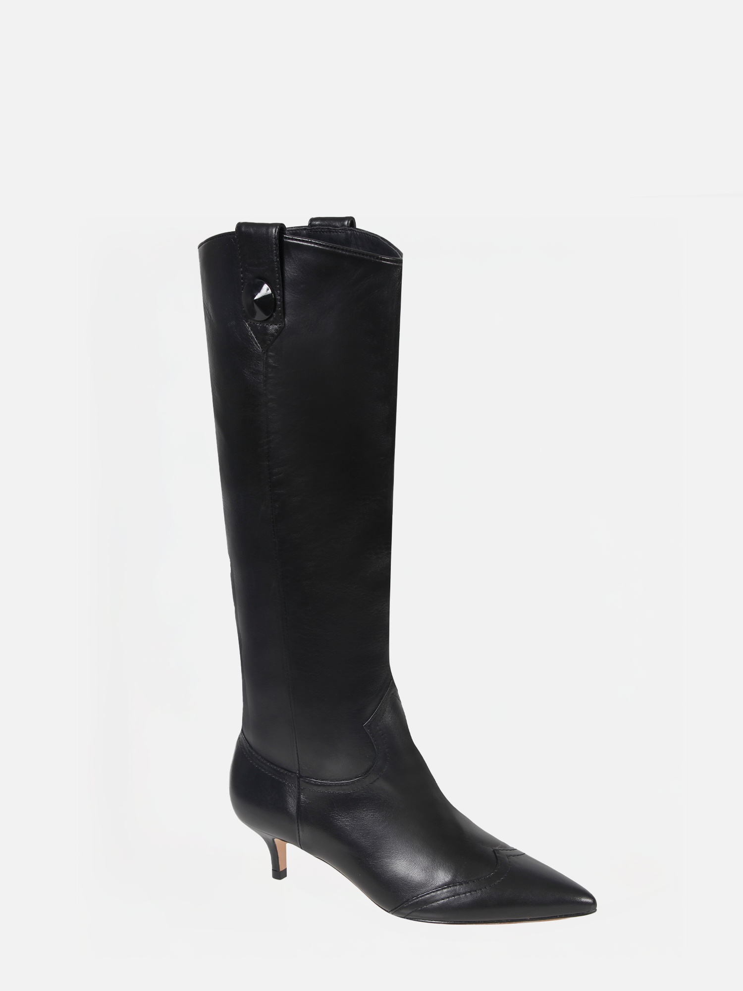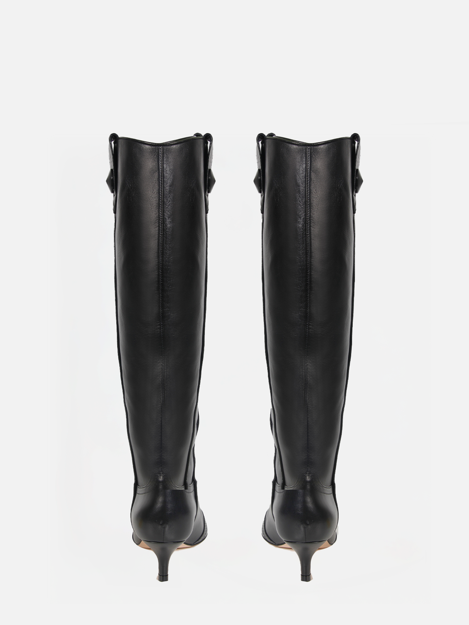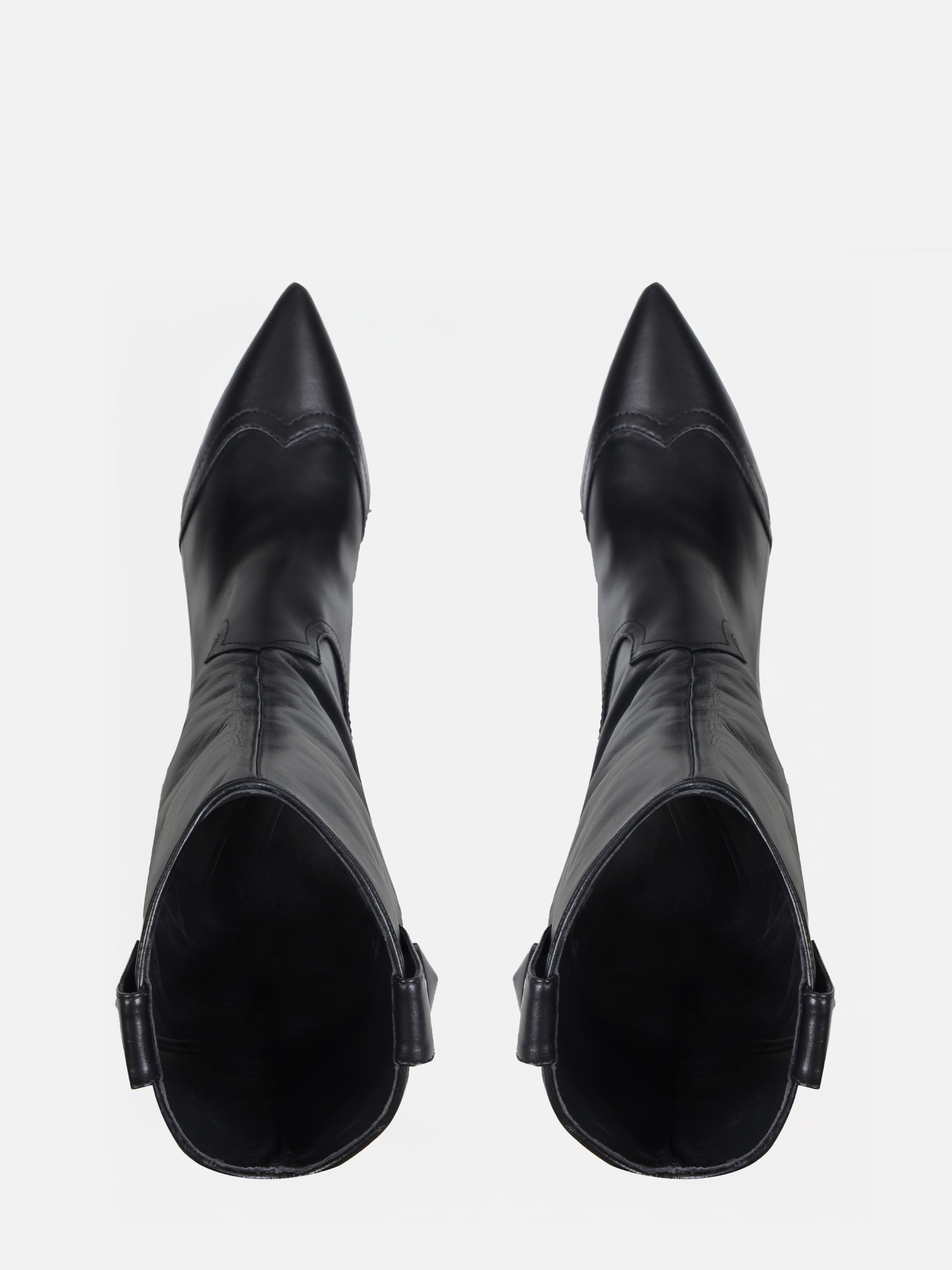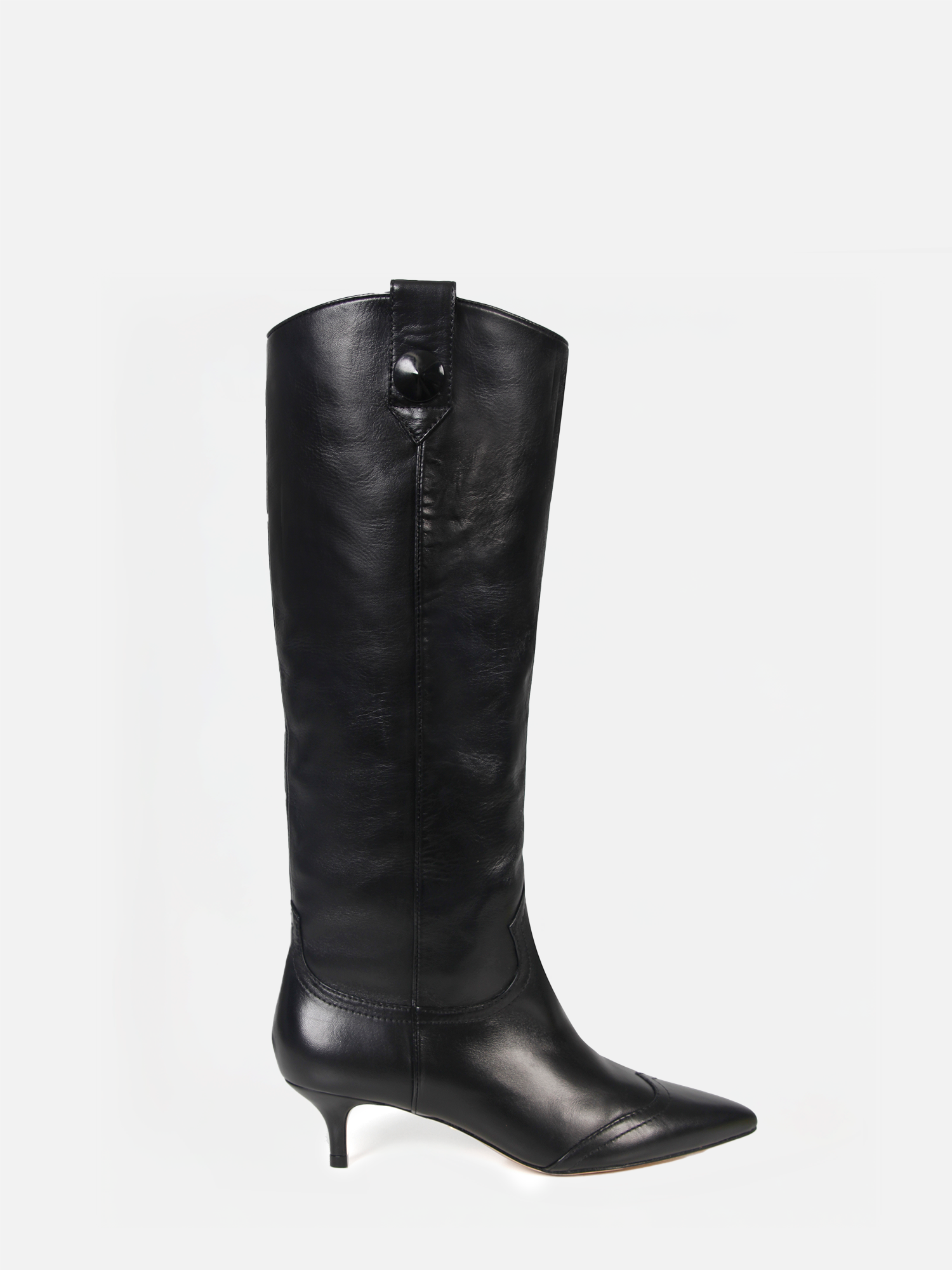 A Bota Lina é um calçado delicado e elegante, apesar de ser um modelo clássico, ele é apresentado na nossa coleção completamente repaginado. Confeccionada em couro napa, a bota possui um bico fino que adiciona elegância, possui o salto fino e baixo para adicionar maior conforto. O acabamento pespontado dela, trás como referência o estilo western, dando um ar autêntico à bota, enquanto o cano alto possui aplicação de aviamento decorativo aplicado na lateral, que adiciona ainda mais estilo e personalidade Paula Torres ao calçado.