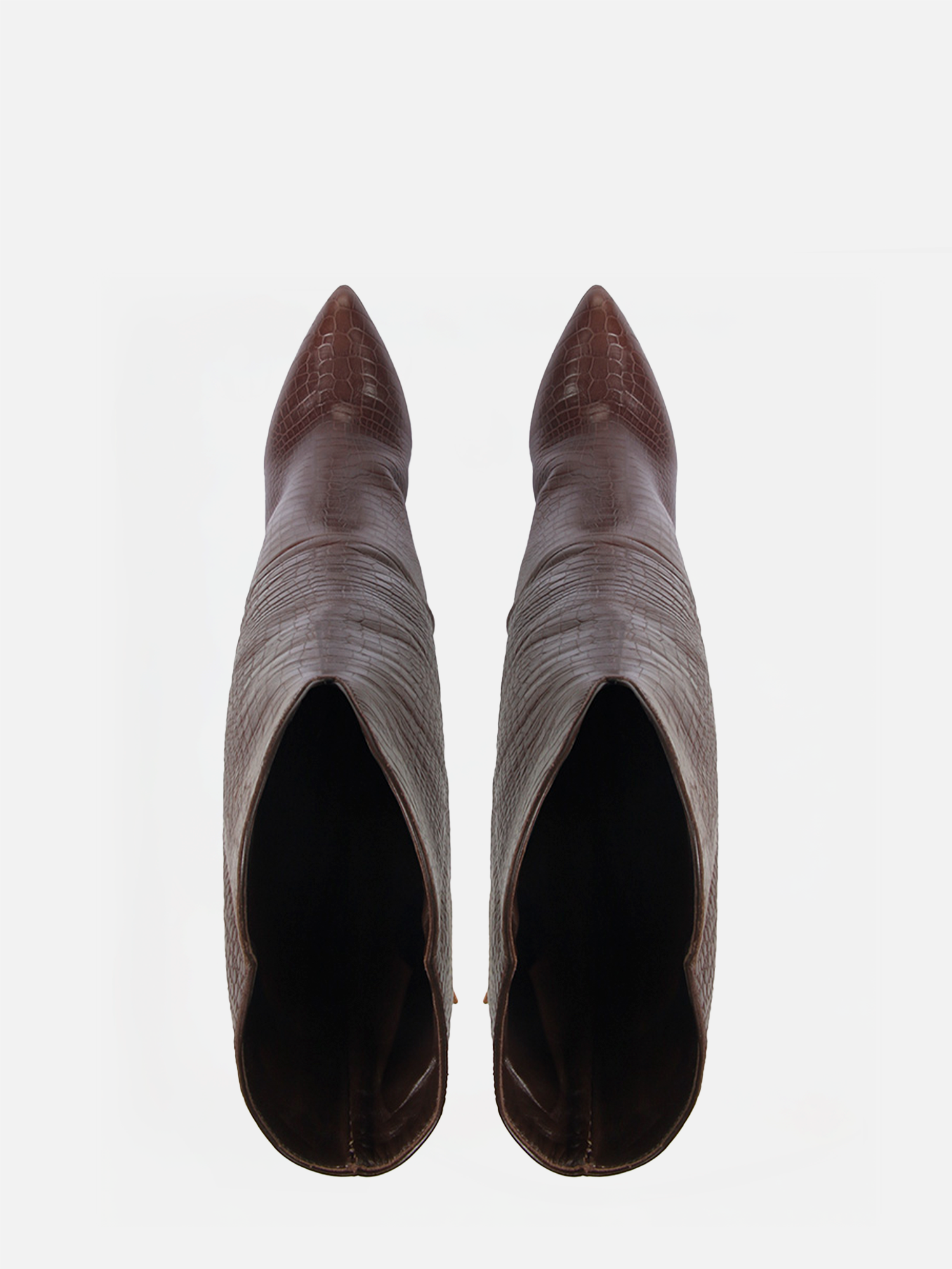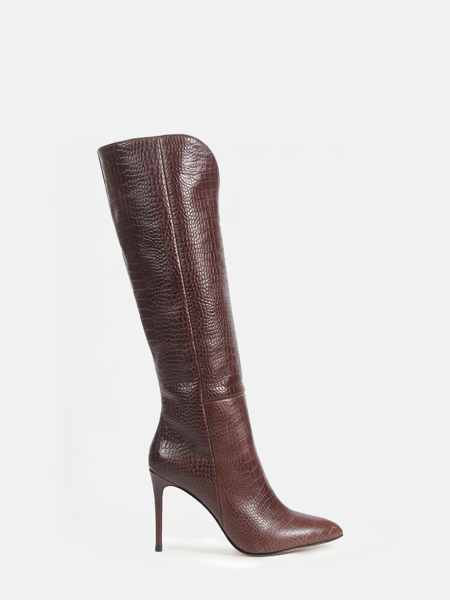 A Bota Madson é um calçado elegante e sofisticado, confeccionado em napa com uma textura croco, que adiciona um toque de estilo e certamente ao seu design. A napa é um material resistente e de alta qualidade, proporcionando conforto e resistência ao calçado. Com um bico fino, a Bota Madson apresenta um perfil refinado e feminino, perfeito para complementar looks mais formais ou sofisticados. O salto alto fino confere uma dose de exaltação e acrescenta altura, ao longo da silhueta.