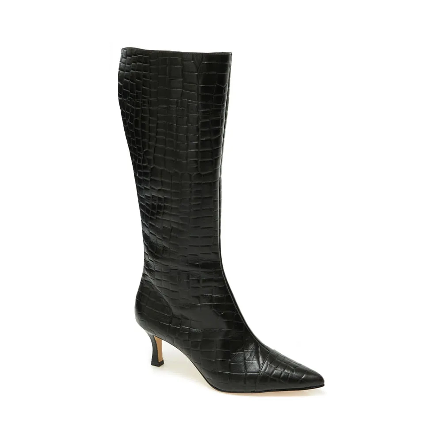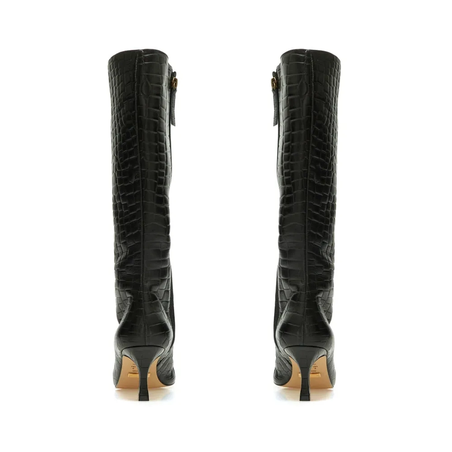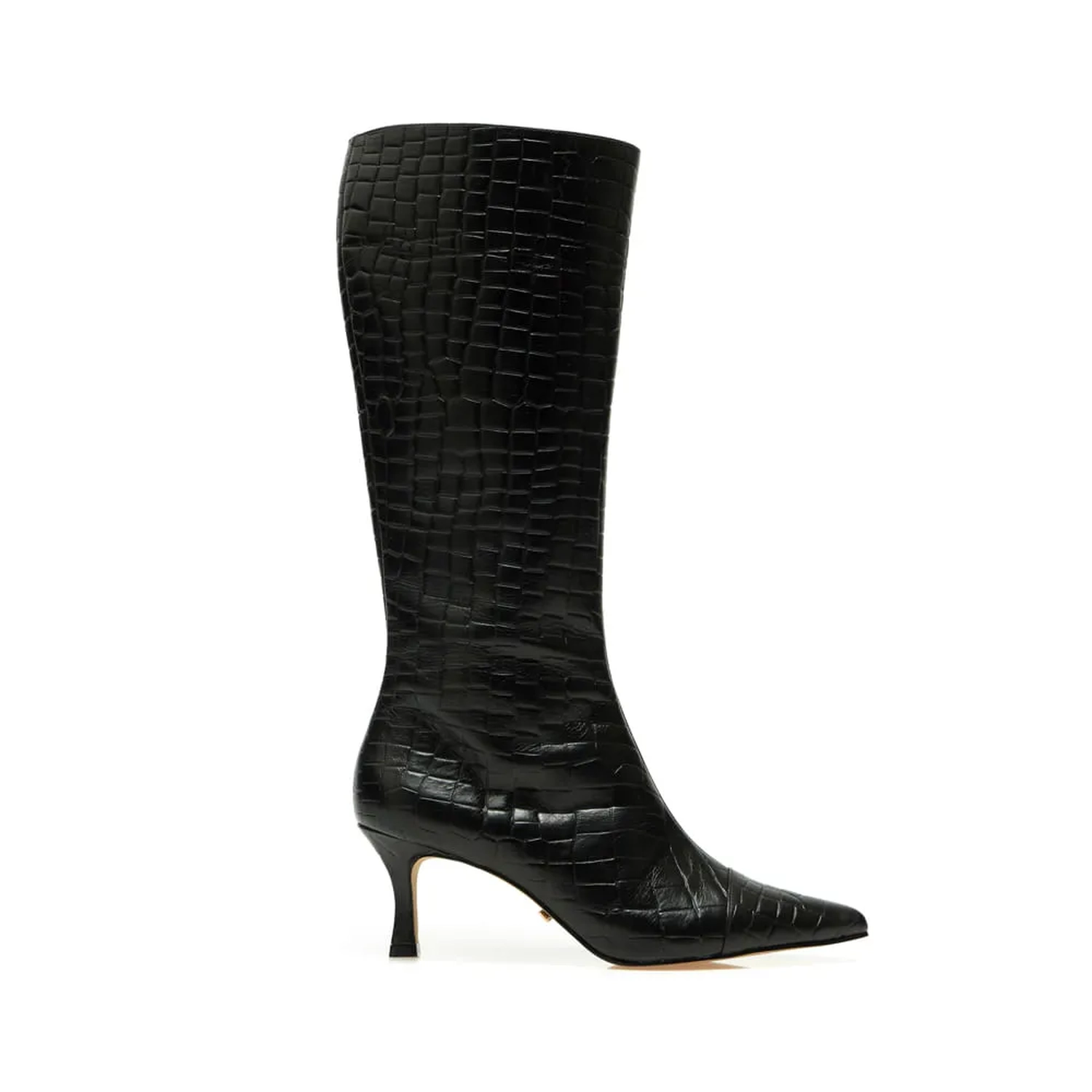 A Bota Marbella é produzida em couro com textura em croco. O modelo carrega as principais trends internacionais e tem com ponto chave  a textura e a paleta de cores. De modelagem contemporânea e ultrafeminina, a construção da peça  conta com cano alto, salto médio, bico fino e fechamento lateral, além de todo conforto presente no DNA Paula Torres.