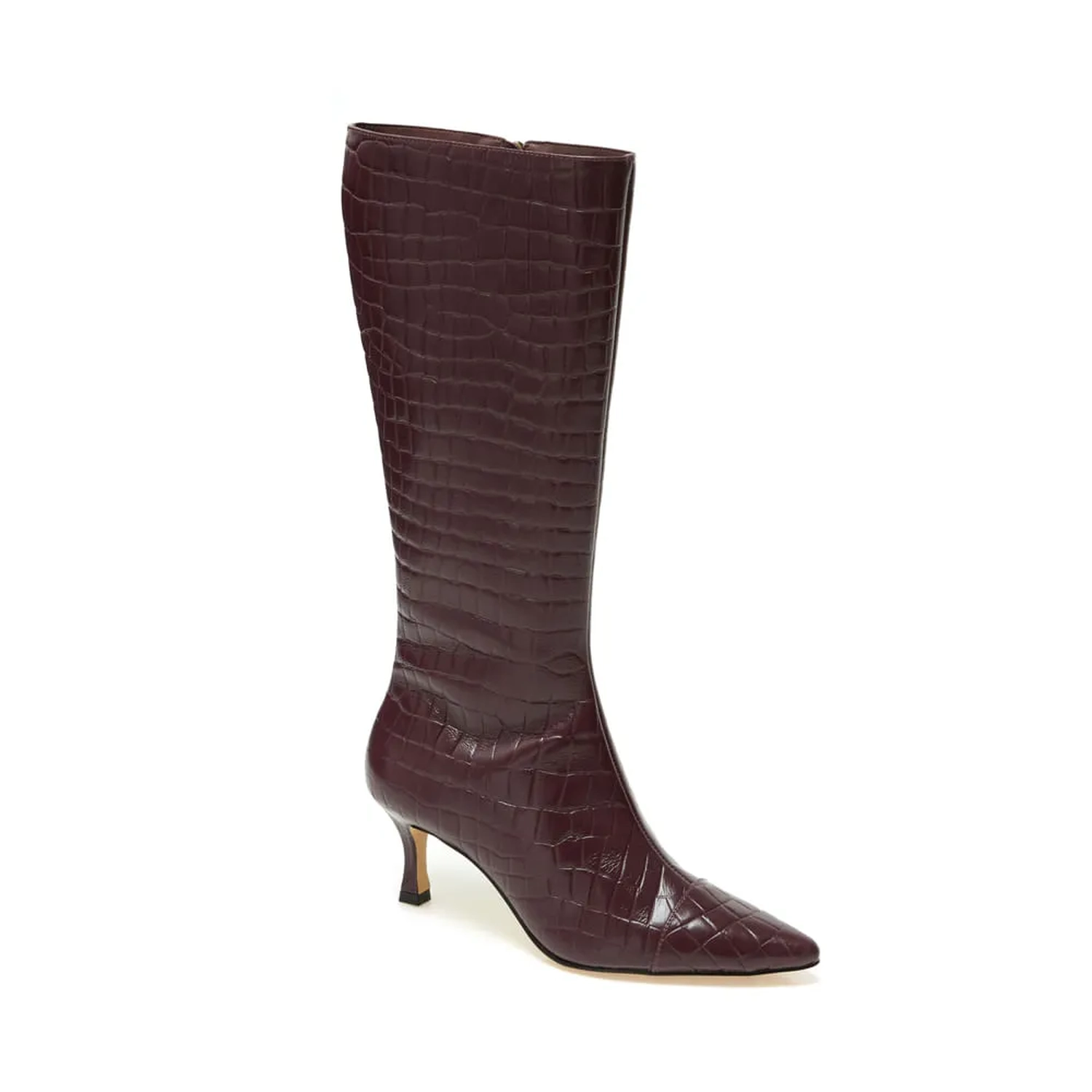 A Bota Marbella é produzida em couro com textura em croco. O modelo carrega as principais trends internacionais e tem com ponto chave  a textura e a paleta de cores. De modelagem contemporânea e ultrafeminina, a construção da peça  conta com cano alto, salto médio, bico fino e fechamento lateral, além de todo conforto presente no DNA Paula Torres.