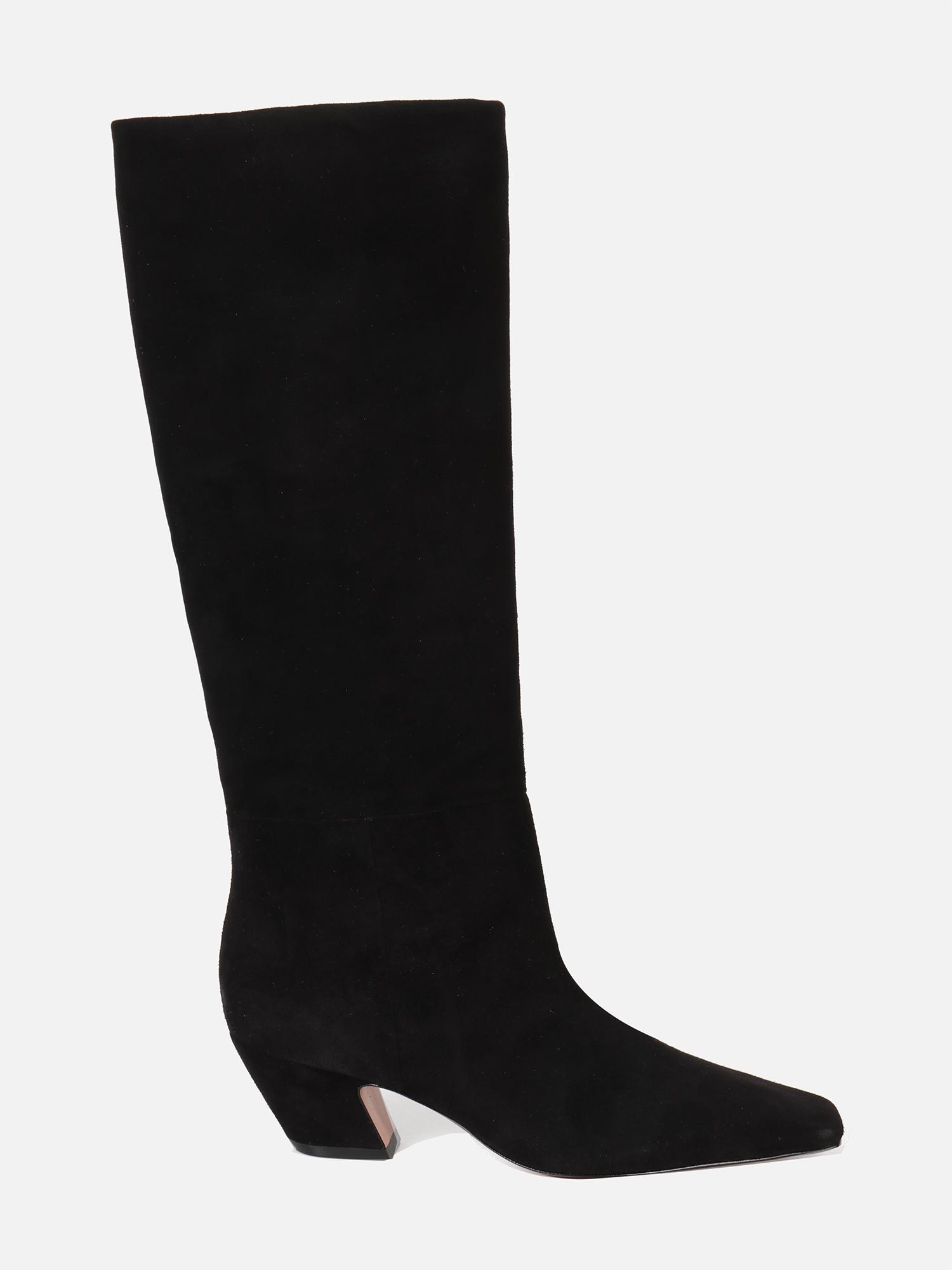 A Bota Marici é confeccionada em camurça, trazendo textura macia e acabamento sofisticado ao modelo. Com bico levemente quadrado e cano alto estruturado, a peça transmite elegância contemporânea e presença marcante na composição. O salto médio grosso adiciona modernidade ao design, equilibrando estilo e conforto. O solado em couro reforça a qualidade e o cuidado nos acabamentos, garantindo estabilidade e um caminhar seguro.