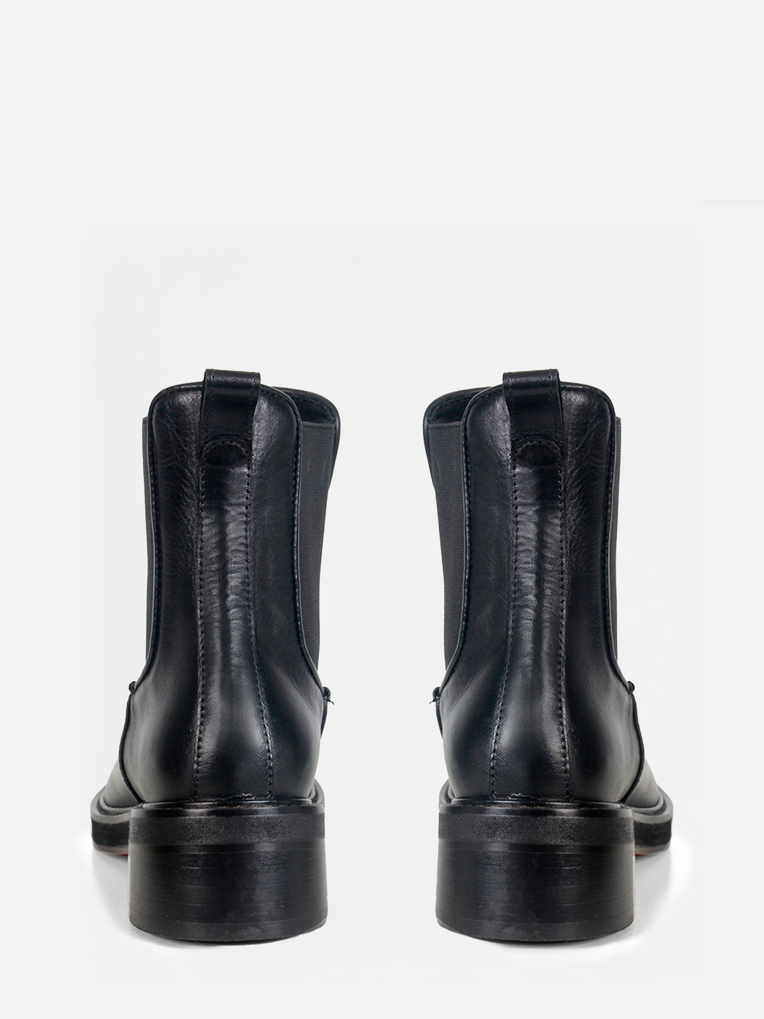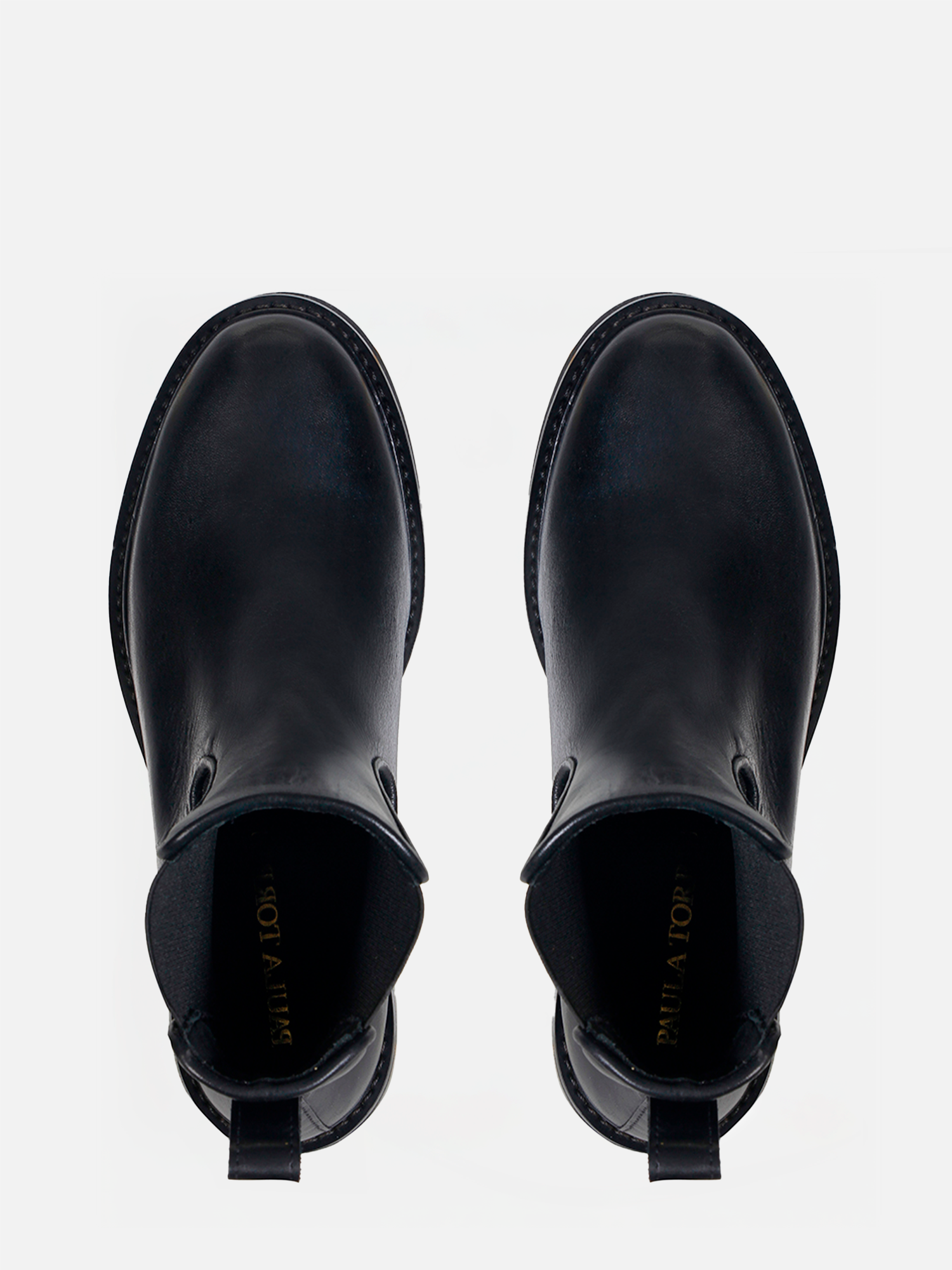 A Bota Nanda é feita em couro de alta qualidade. O modelo apresenta elásticos laterais no cano ajustado à perna, caracterizando o clássico estilo Chelsea. Com bico arredondado e solado em couro assegura durabilidade e conforto a peça.