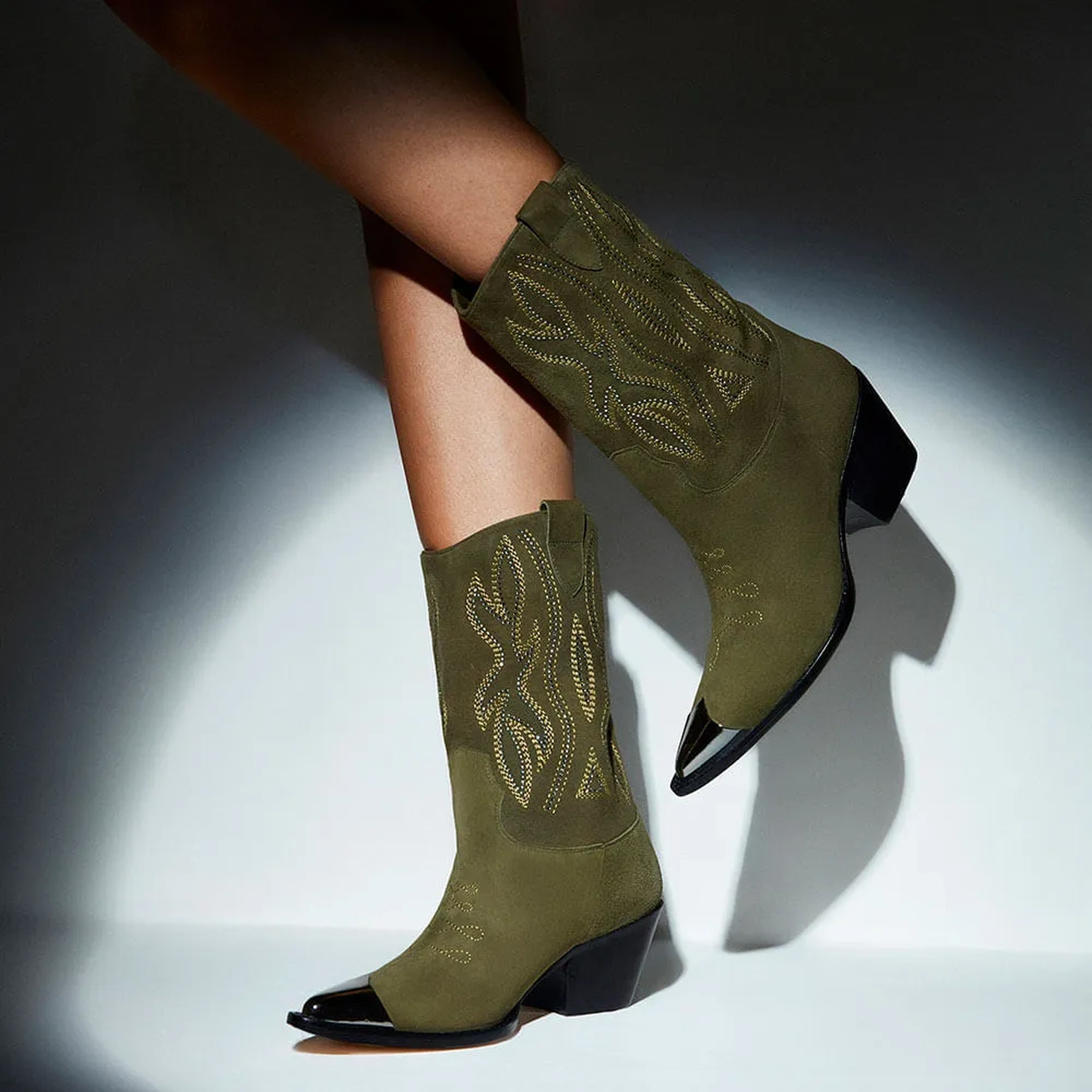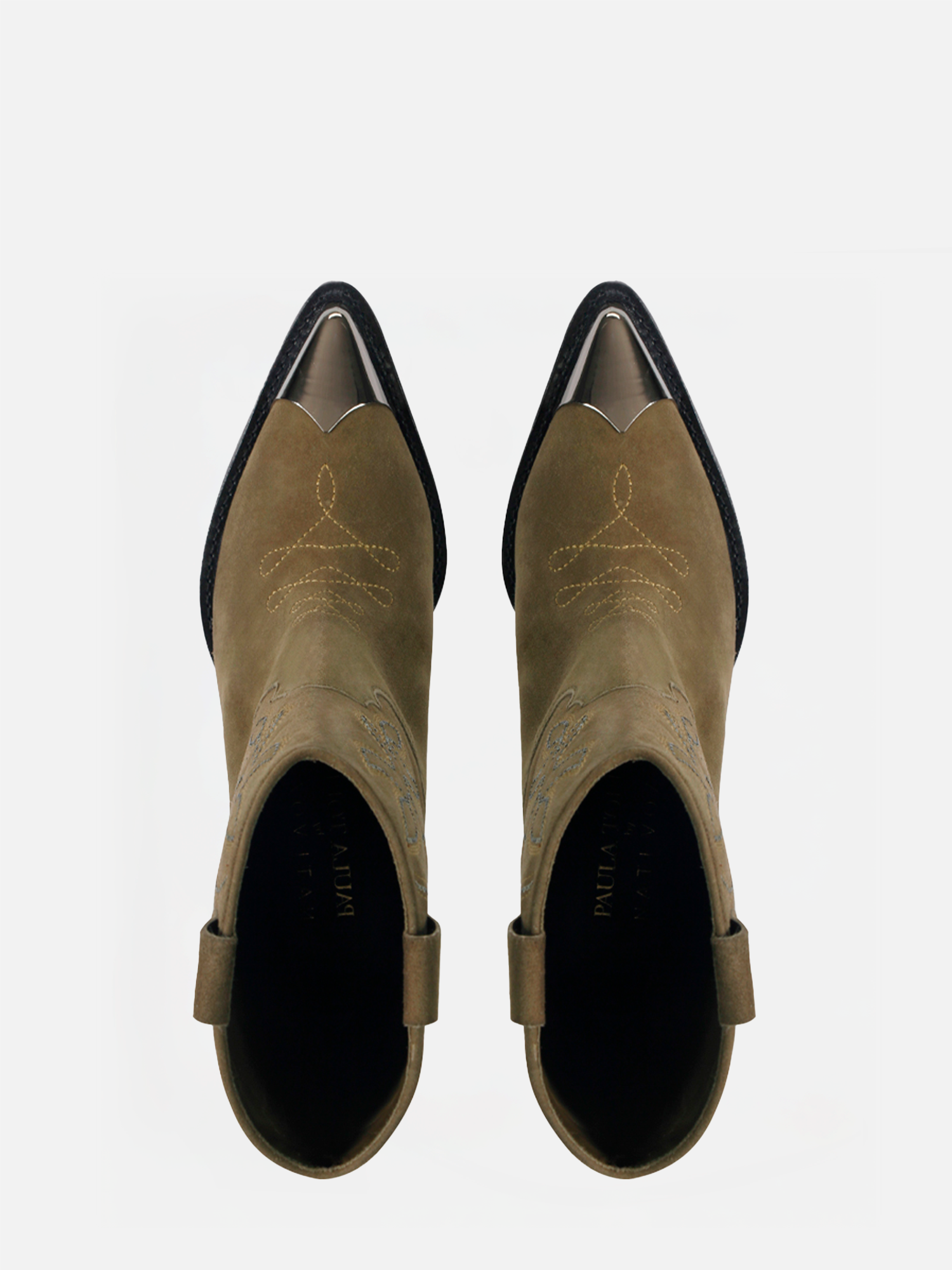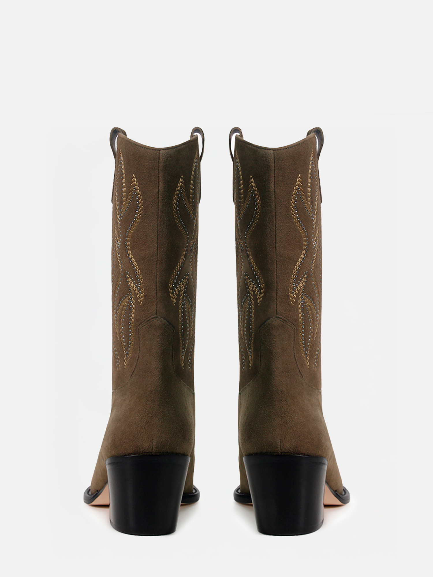 A Bota Nara é um calçado feminino moderno e elegante. Confeccionada em camurça de alta qualidade, este modelo apresenta um cabedal com detalhes western pespontados, que dão um toque de charme e rusticidade ao modelo. O hotfix na parte do cano é outra característica marcante deste modelo, adicionando um brilho discreto e elegante à bota. A biqueira em aço é um detalhe que protege o bico da bota. O bico fino é uma característica marcante deste modelo, conferindo um visual sofisticado e elegante. O salto baixo bloco proporciona conforto e estabilidade ao caminhar.