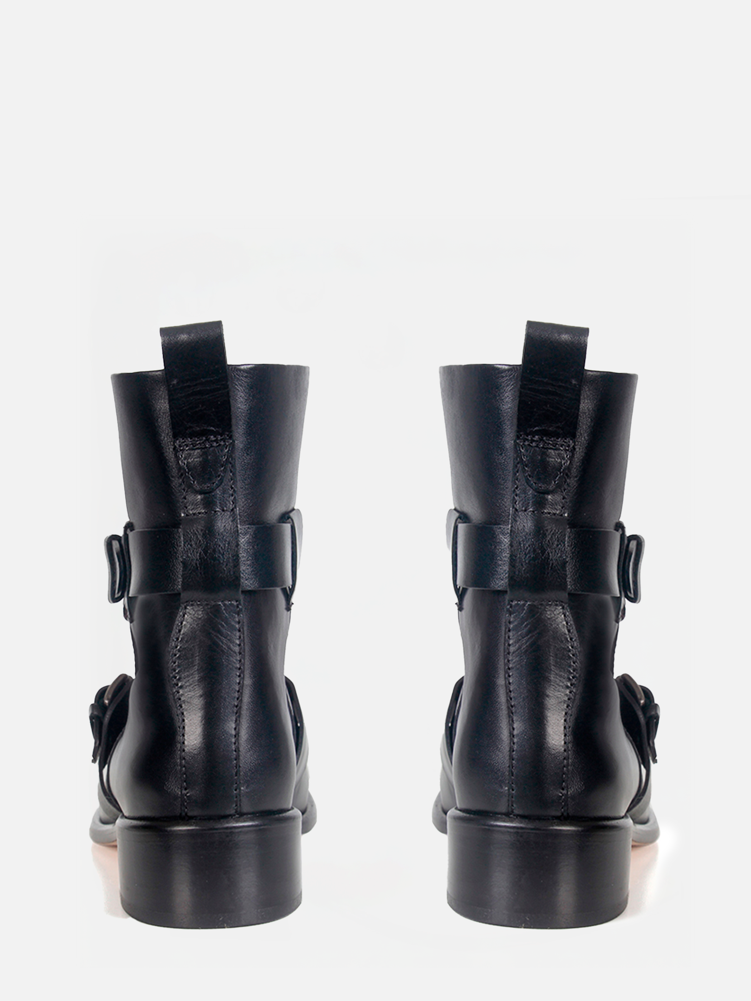 A Bota Nora é confeccionada em couro. O modelo apresenta bico redondo e uma abertura elegante no peito do pé, complementada por duas tiras ajustáveis com fivelas, que adicionam charme e funcionalidade. O solado em couro garante durabilidade e um acabamento refinado.