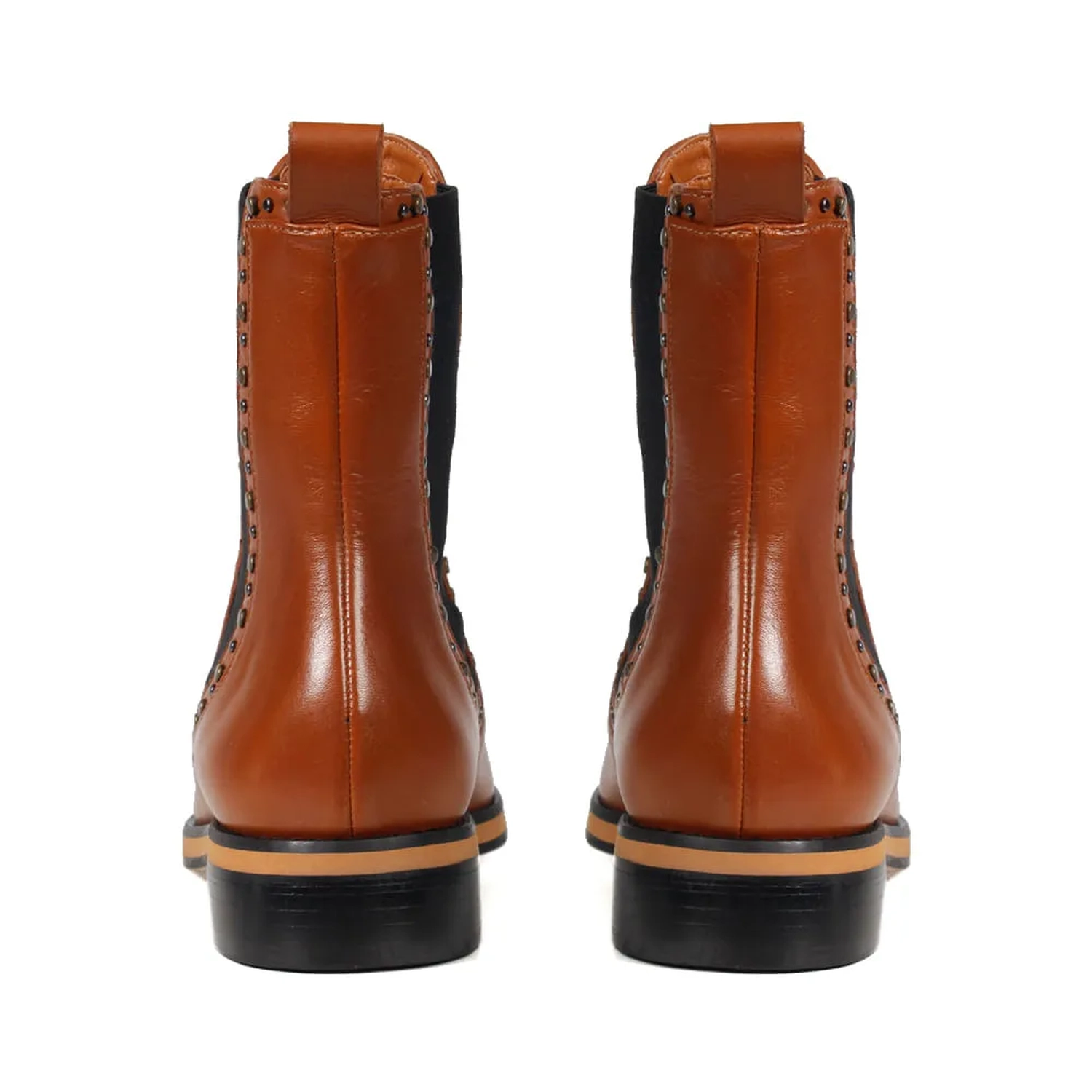 A Bota Talin é confeccionada em couro. De modelagem clássica, a peça possui como diferencial os rebites (intercalados em ouro envelhecido e metalizados) contornando o elástico e a superfície do cano da bota. Outro destaque do modelo é o solado bicolor, o arremate perfeito para bota.
