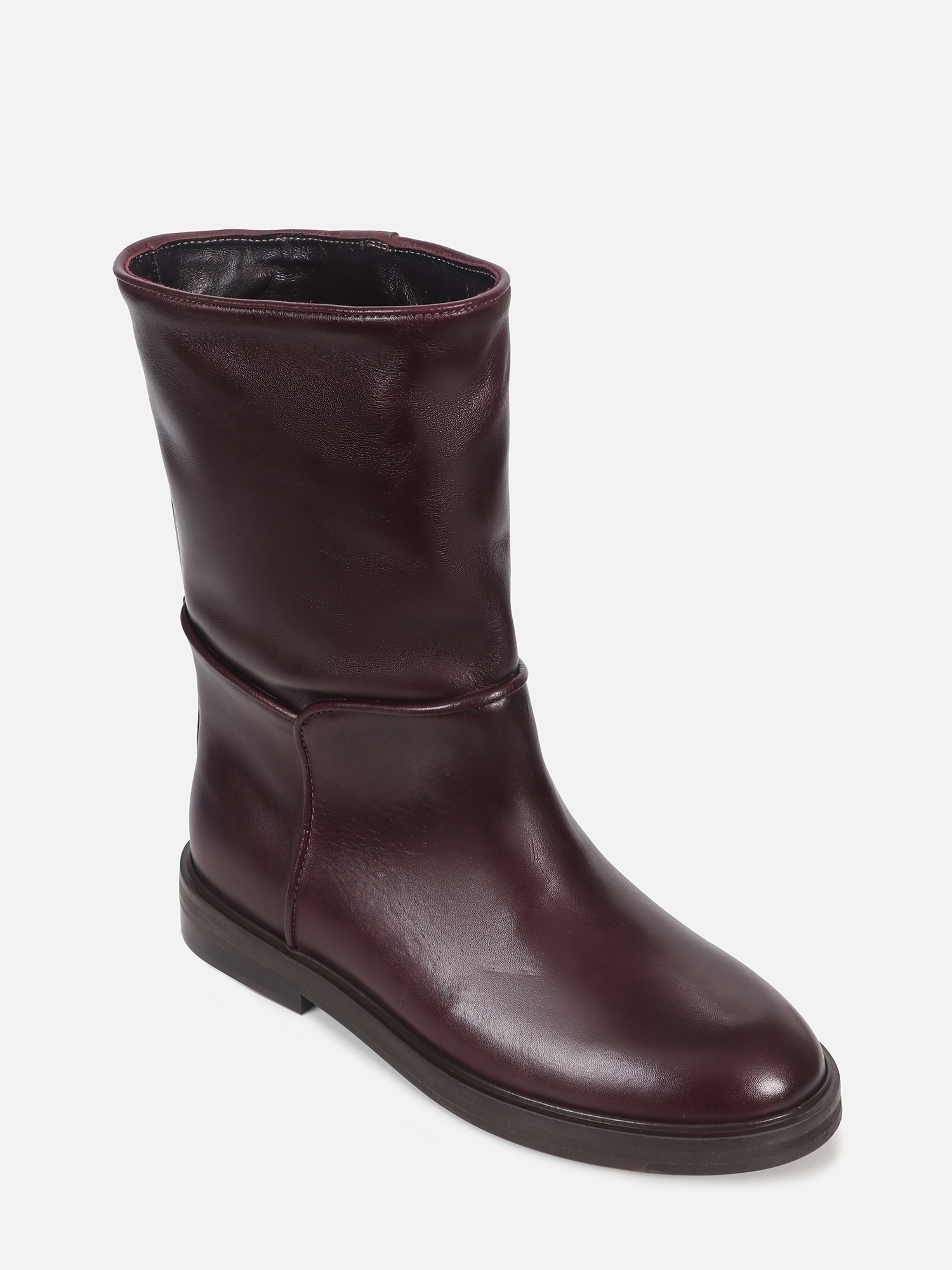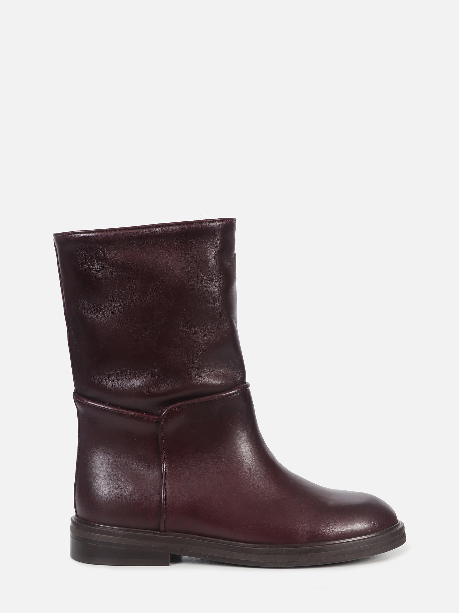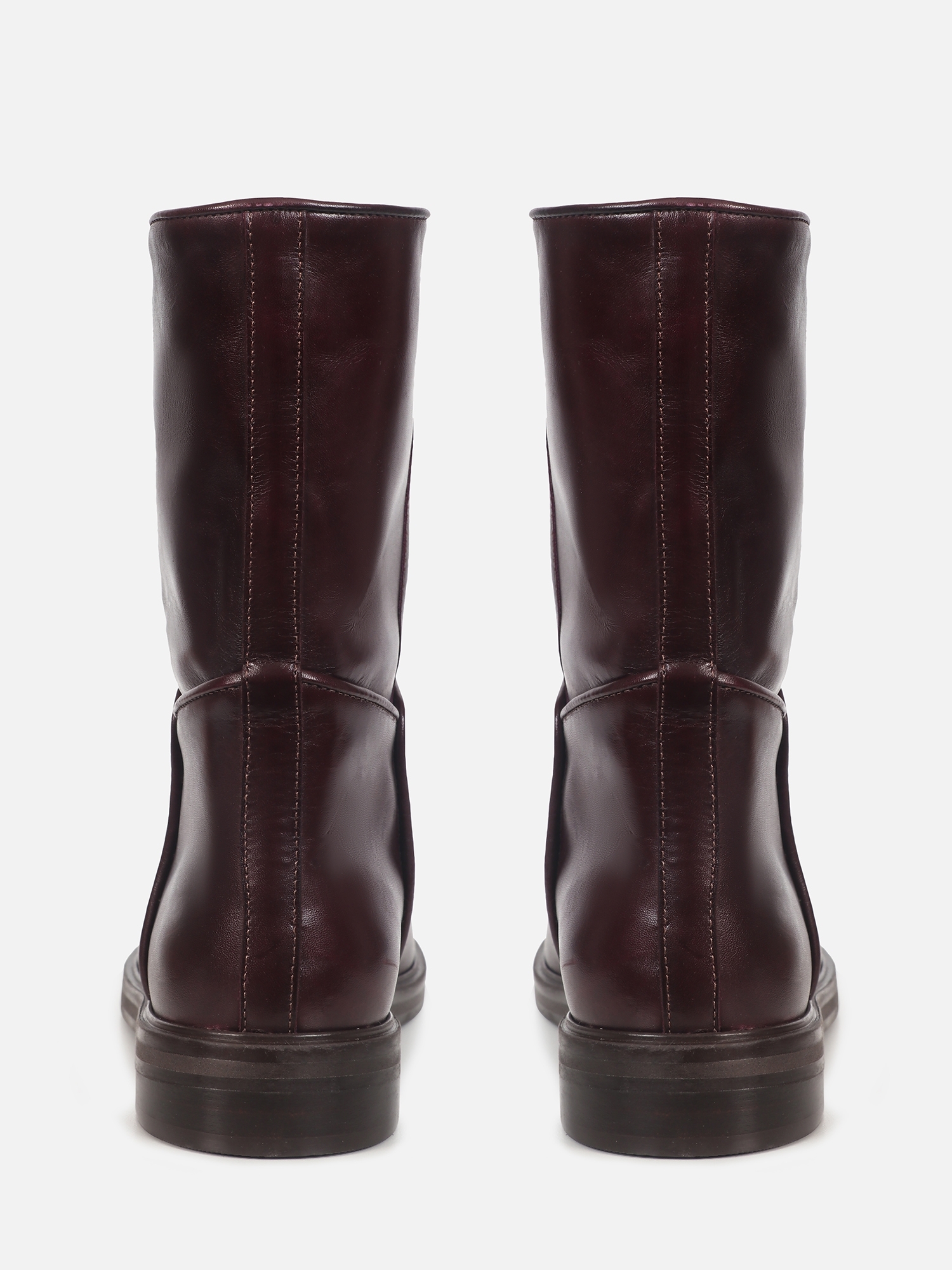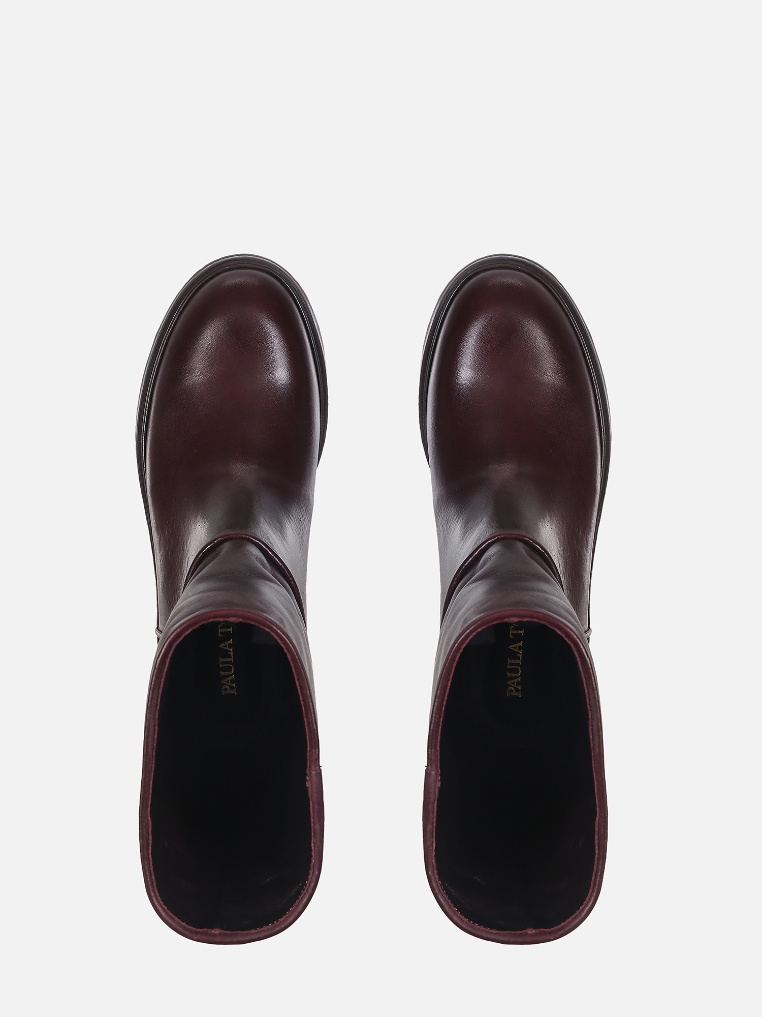 A Bota Teodora é produzida em couro e apresenta design elegante e atemporal, com cano médio de linhas minimalistas que valoriza o visual e facilita o calce. O modelo conta com bico arredondado, solado baixo estruturado e acabamento sofisticado, proporcionando conforto, estabilidade e durabilidade para o dia a dia, sendo ideal para compor produções refinadas e versáteis.