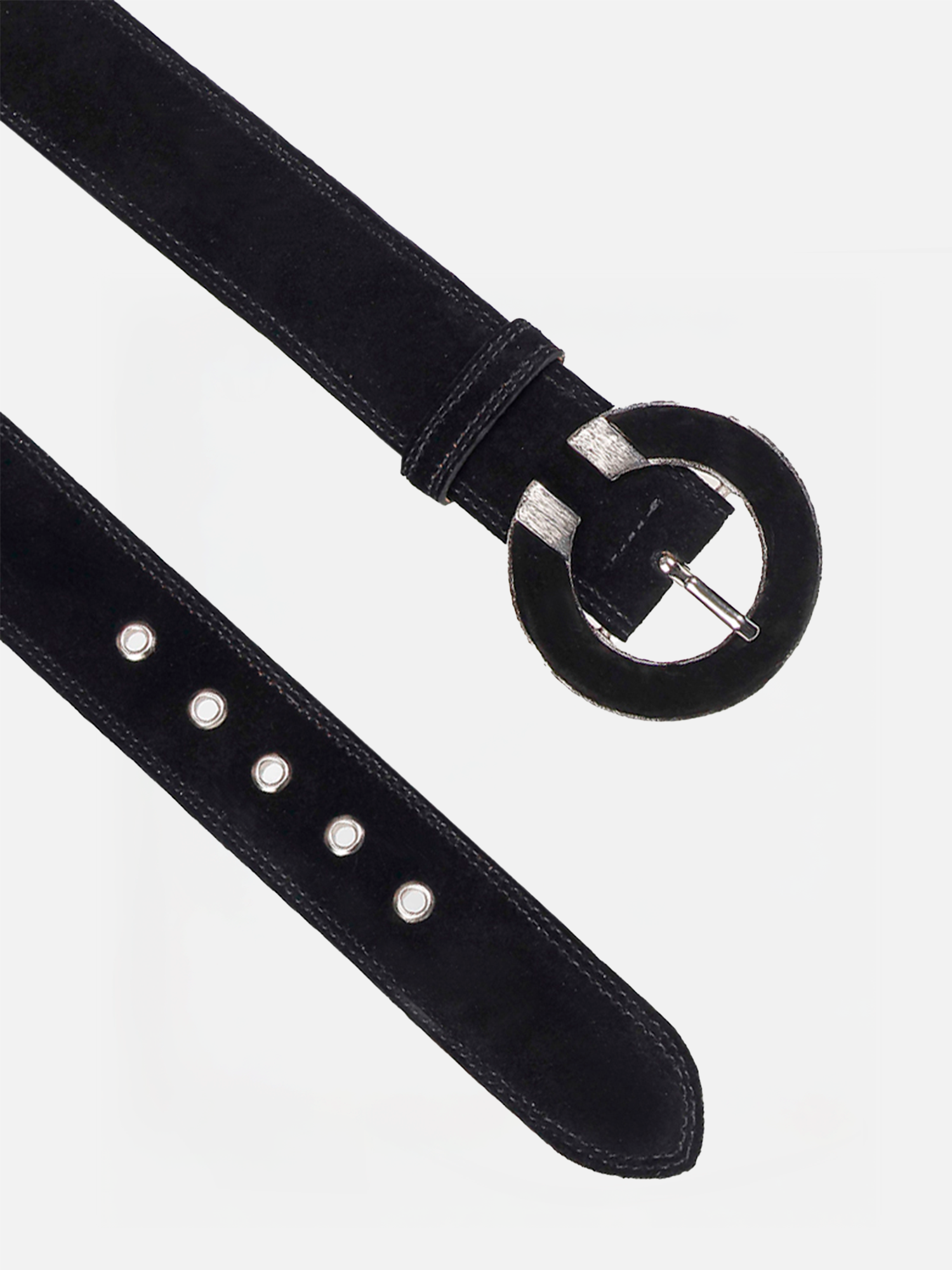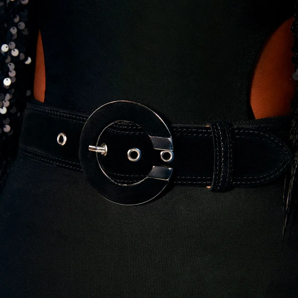 O Cinto Cecília é produzido em camurça. A peça possui espessura grossa, com passante em camurça e fechamento ajustável em cinco níveis. O diferencial é a fivela circular metalizada, com abertura lateral e preenchimento em camurça. Os detalhes monocromáticos criam uma estética sofisticada, oferecendo charme à peça, traduzindo DNA da marca.