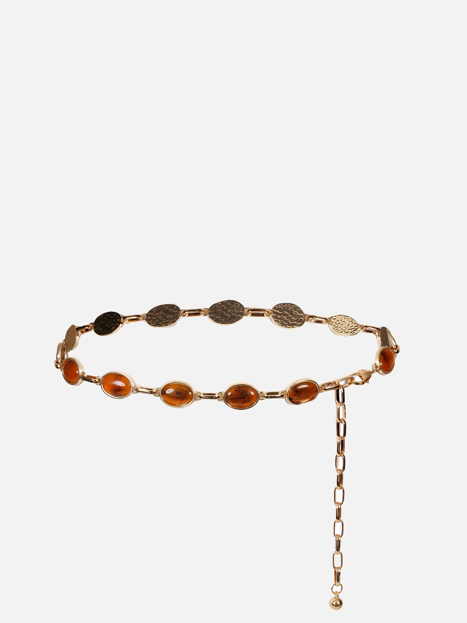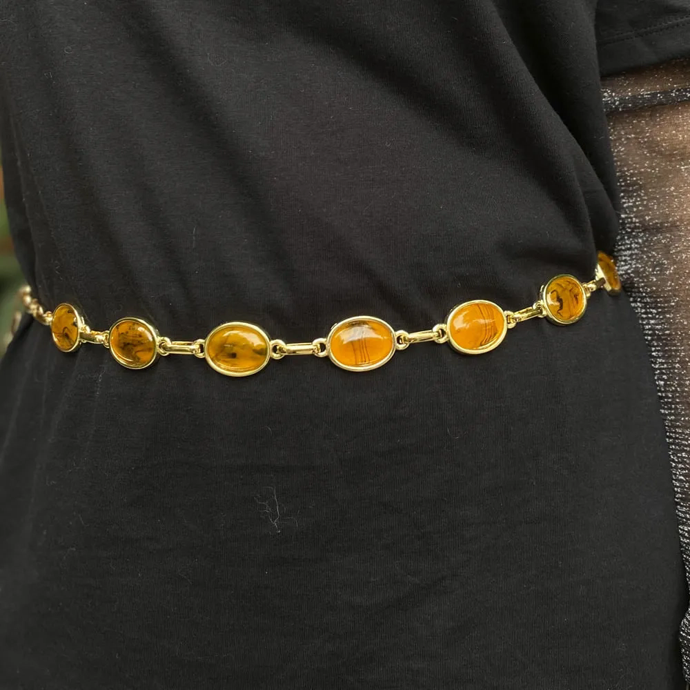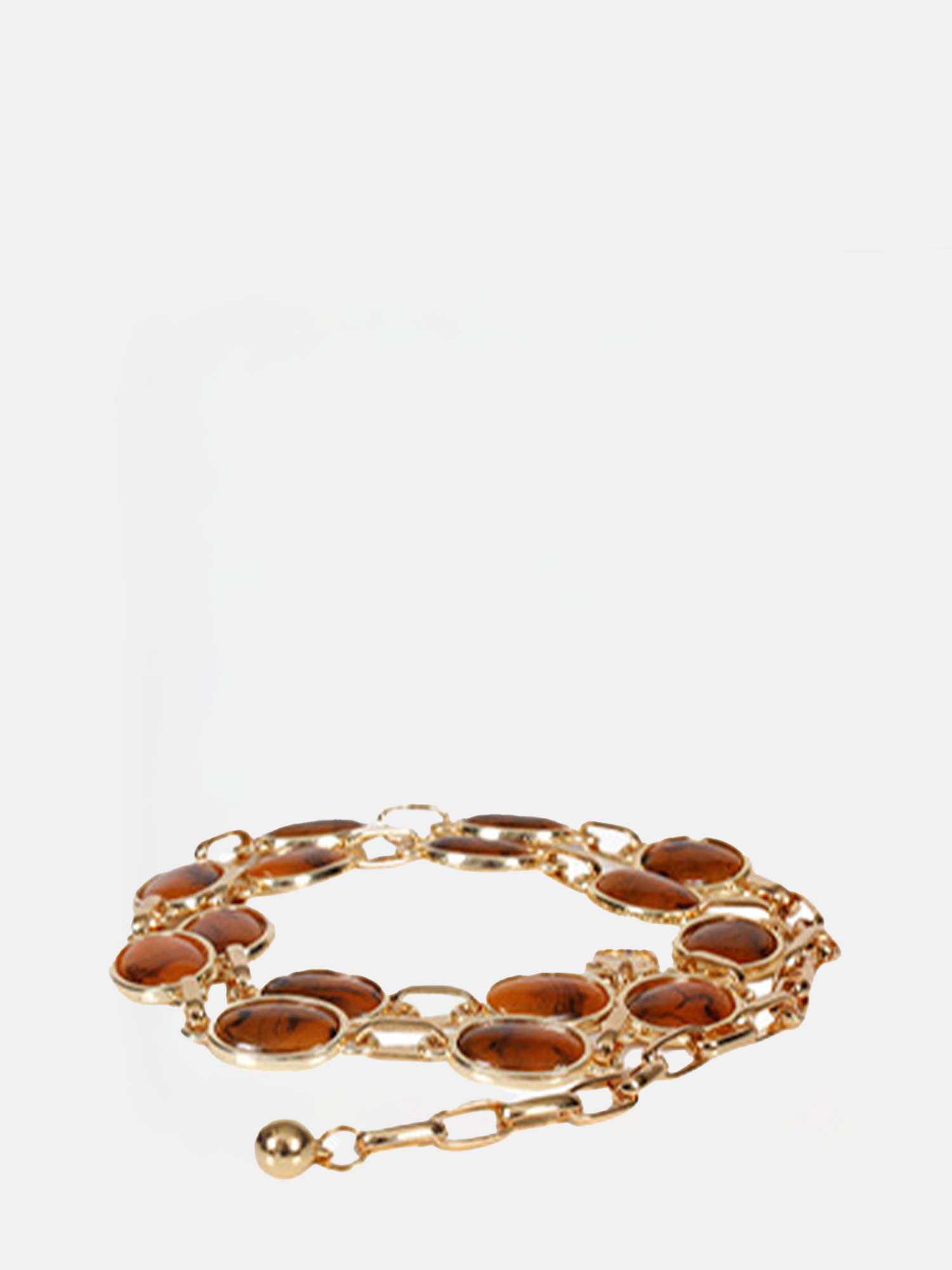 O Cinto Helena é um acessório atraente. Confeccionado em metal de alta qualidade. O destaque do Cinto Helena é uma aplicação meticulosa de resina que adiciona um toque de cor e brilho ao acessório. A resina é cuidadosamente colocada no metal, criando um padrão único e vibrante. A combinação do metal sólido com a delicada aplicação de resina cria um contraste visual intrigante e sofisticado. O Cinto Helena é uma representação impressionante da fusão entre artesanato e moda contemporânea.