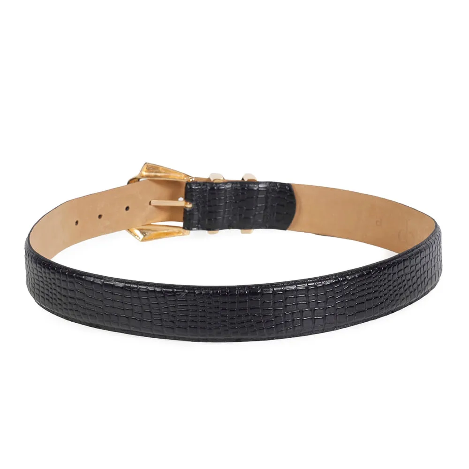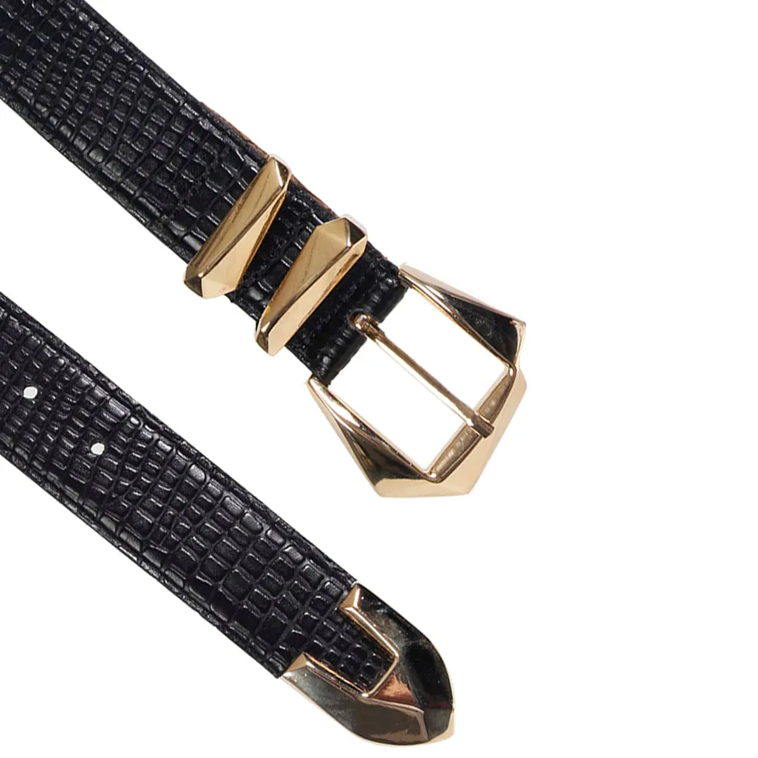 O Cinto Lauren é produzido em couro. A peça possui espessura média, com fivela, passantes e ponteira metálicas e fechamento ajustável em cinco níveis. O diferencial são a proposta de design contemporâneo dos detalhes metálicos, que contrastam com a estampa do couro, oferecendo estilo à peça que traduz de maneira sofisticada o DNA handmade da marca