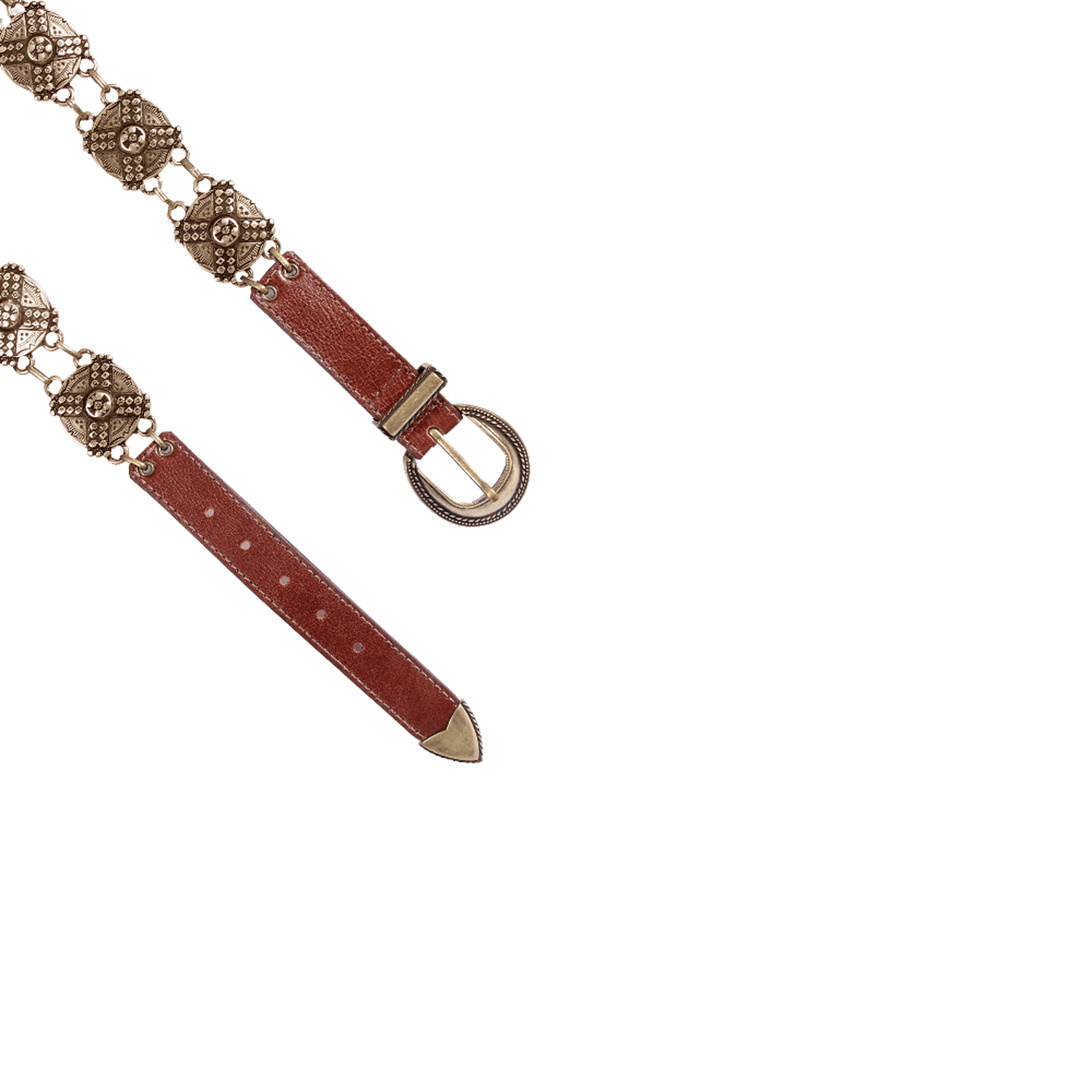 O Cinto Pamplona é um acessório estiloso e elegante. Confeccionado em napa de alta qualidade, ele oferece durabilidade e conforto para o uso diário. Com uma parte frontal em couro e pespontado, o Cinto Pamplona apresenta um design único e moderno. O destaque deste modelo fica por conta da composição de medalhas, que confere um toque de personalidade e exclusividade ao acessório. Além disso, o Cinto Pamplona conta com uma fivela, passante e ponteira em metal trabalhado de mesma cor, que adicionam um toque de sofisticação e requinte ao acessório.