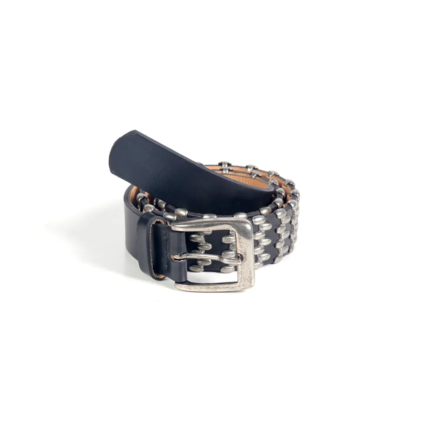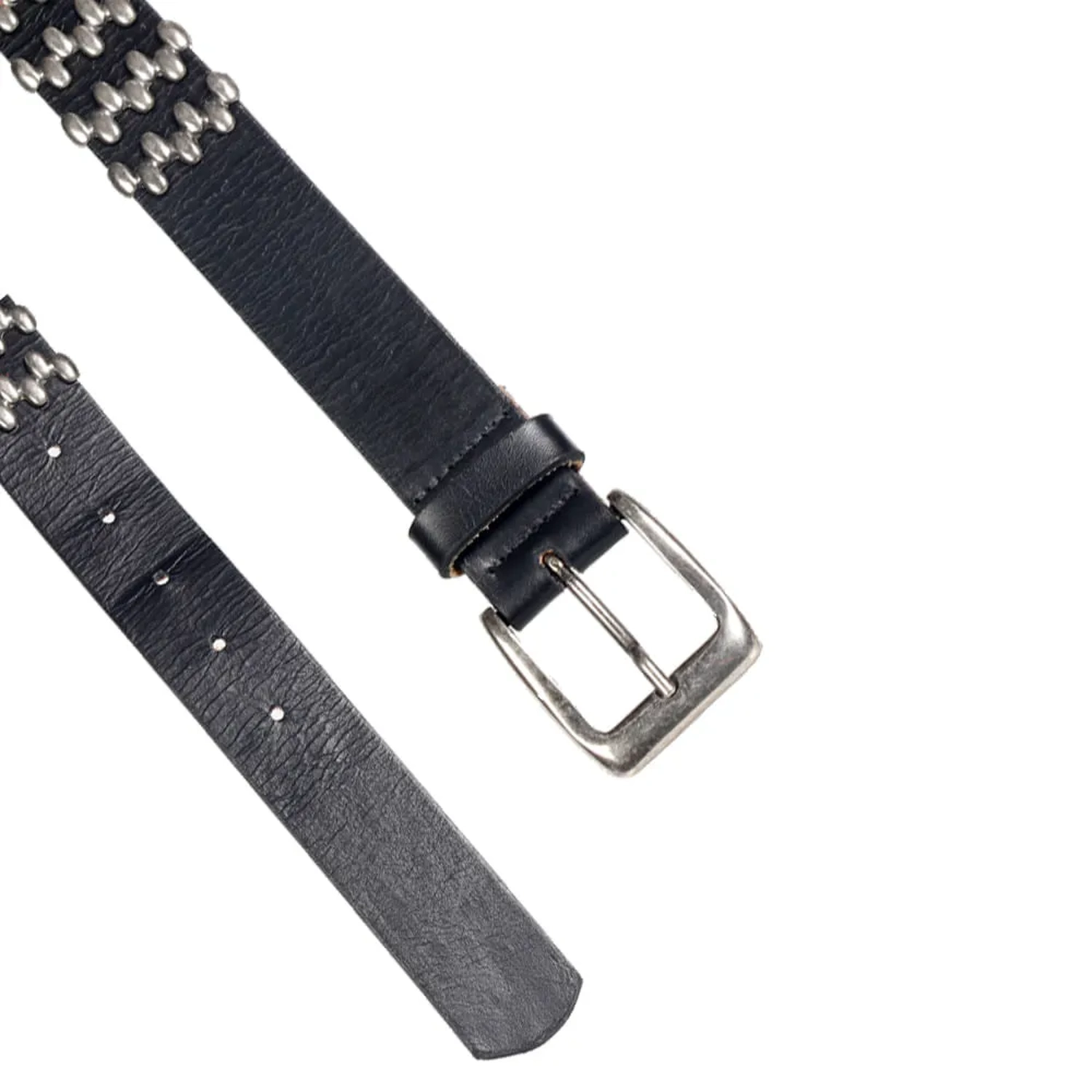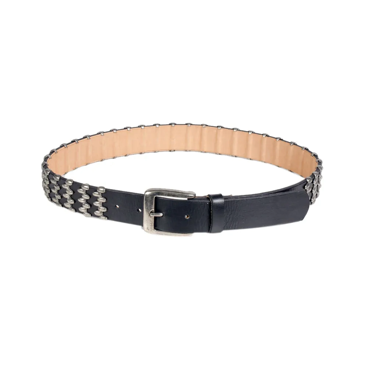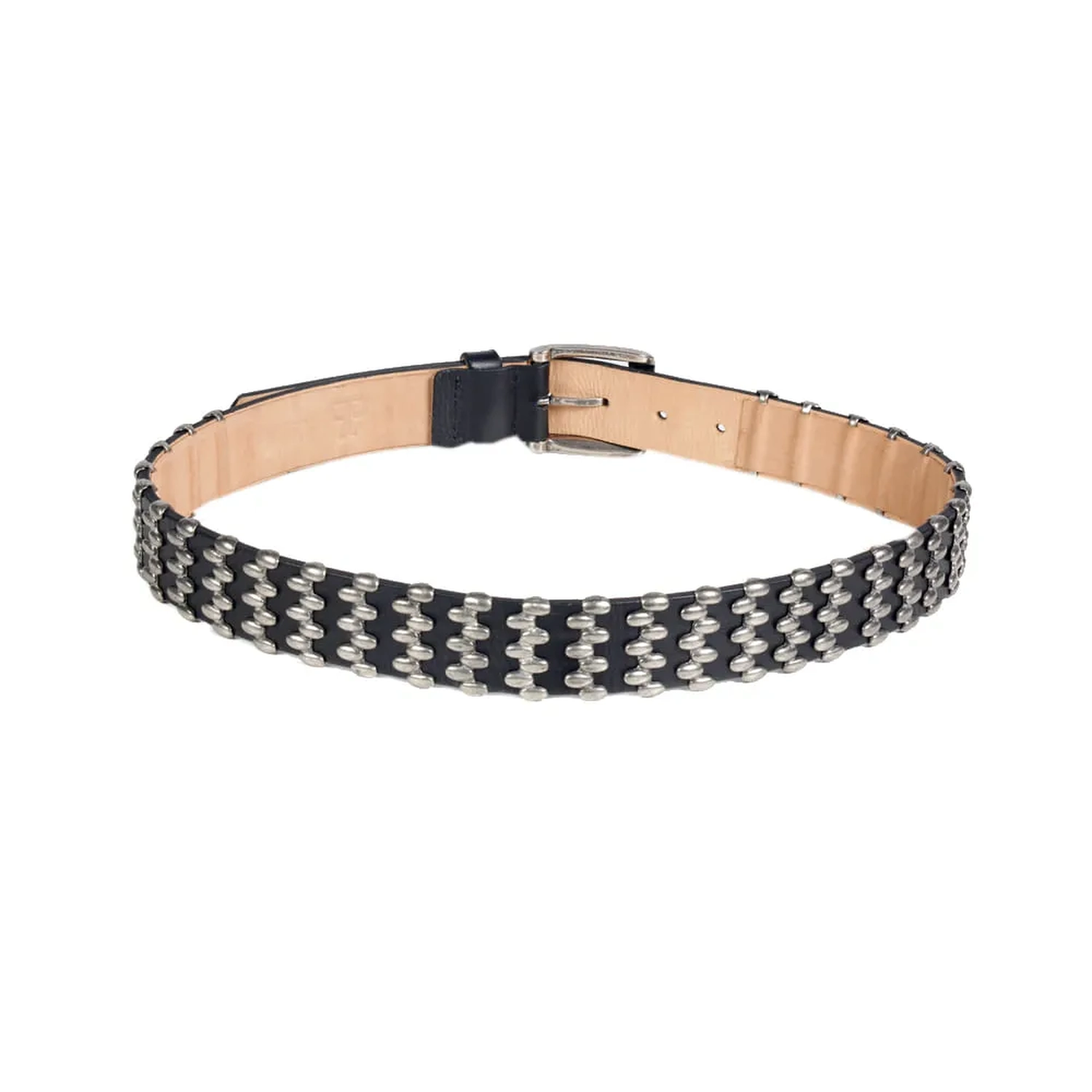 O Cinto Ravena é produzido em couro. A peça possui espessura média, fivela metálica, passante em couro fixo e fechamento ajustável em cinco níveis. O diferencial são as aplicações metalicas envolta de toda a peça, oferecendo charme à peça que traduz de maneira estilosa o DNA handmade da marca.