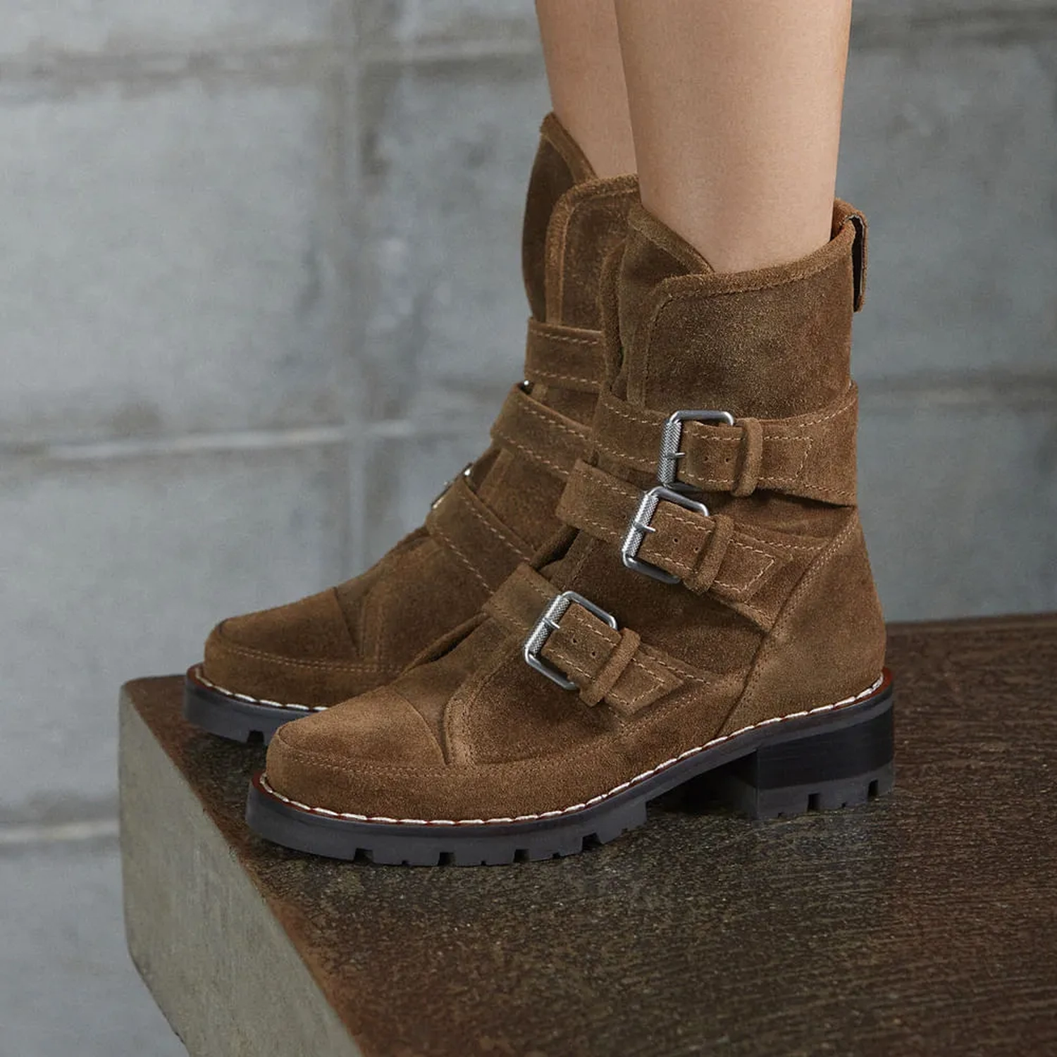 O Coturno Bariloche tem como referência a tendência das biker boots, que se trata de uma estruturação de calçado mais robusto. Neste modelo ele aparece em camurça. O calçado possui aplicação de fivelas que permite o ajuste para te entregar segurança a cada passo. Seu solado é de modelo tratorado em borracha com uma discreta altura, deixando-o confortável para uso prolongado, e também possui puxador aplicado no posterior para melhor calce. Com suas características marcantes, este modelo cria um design único e moderno.