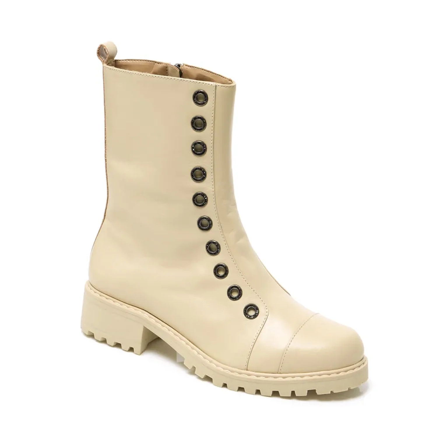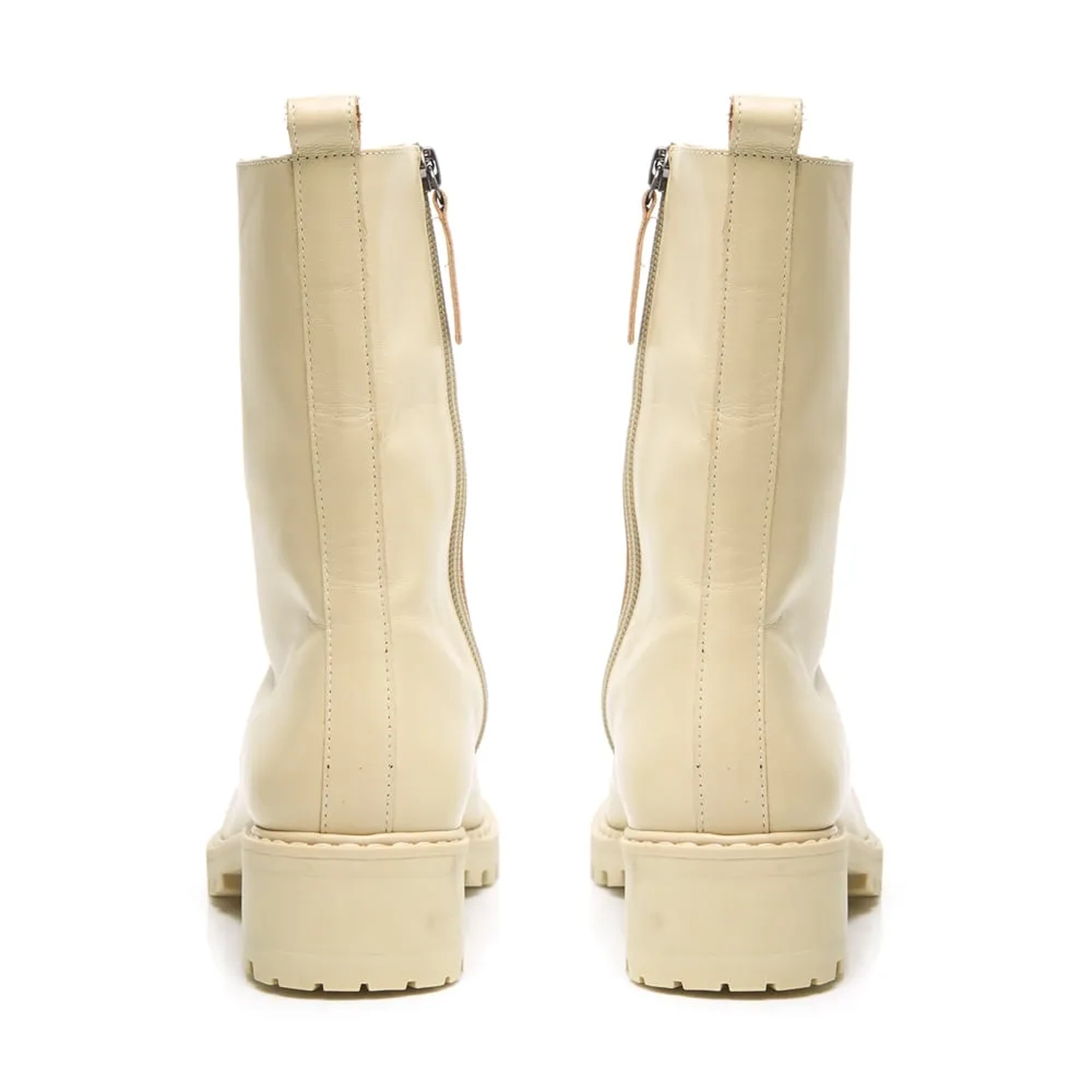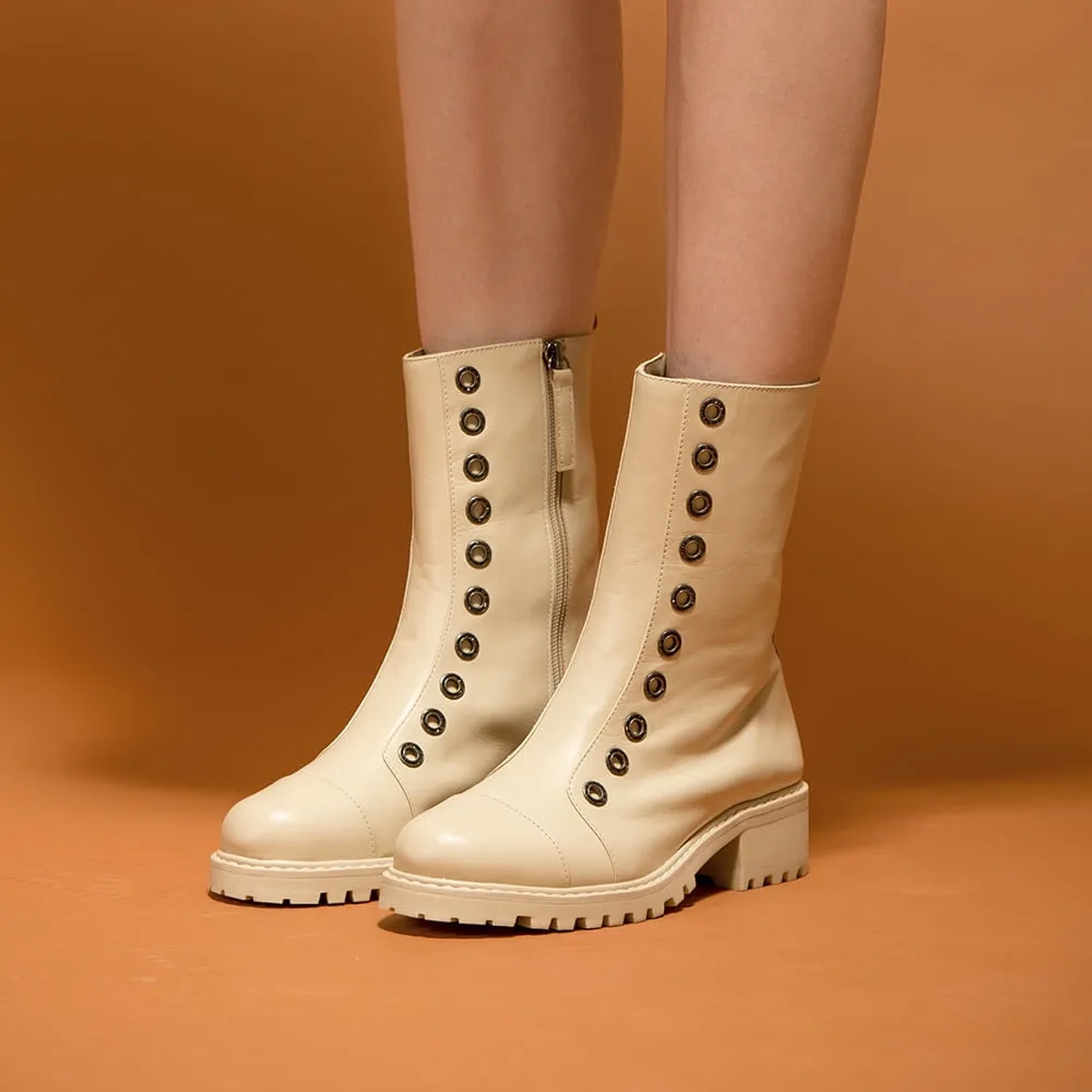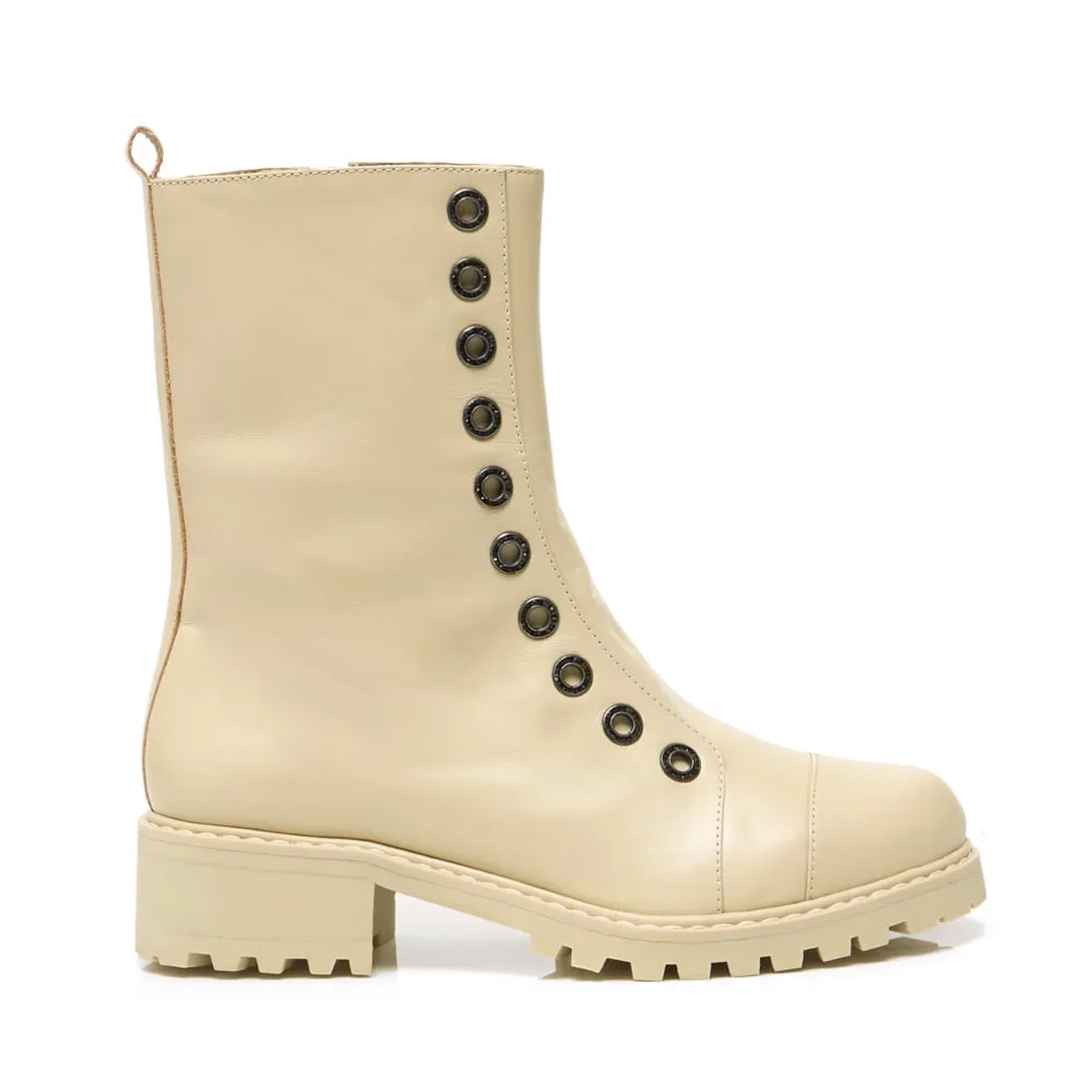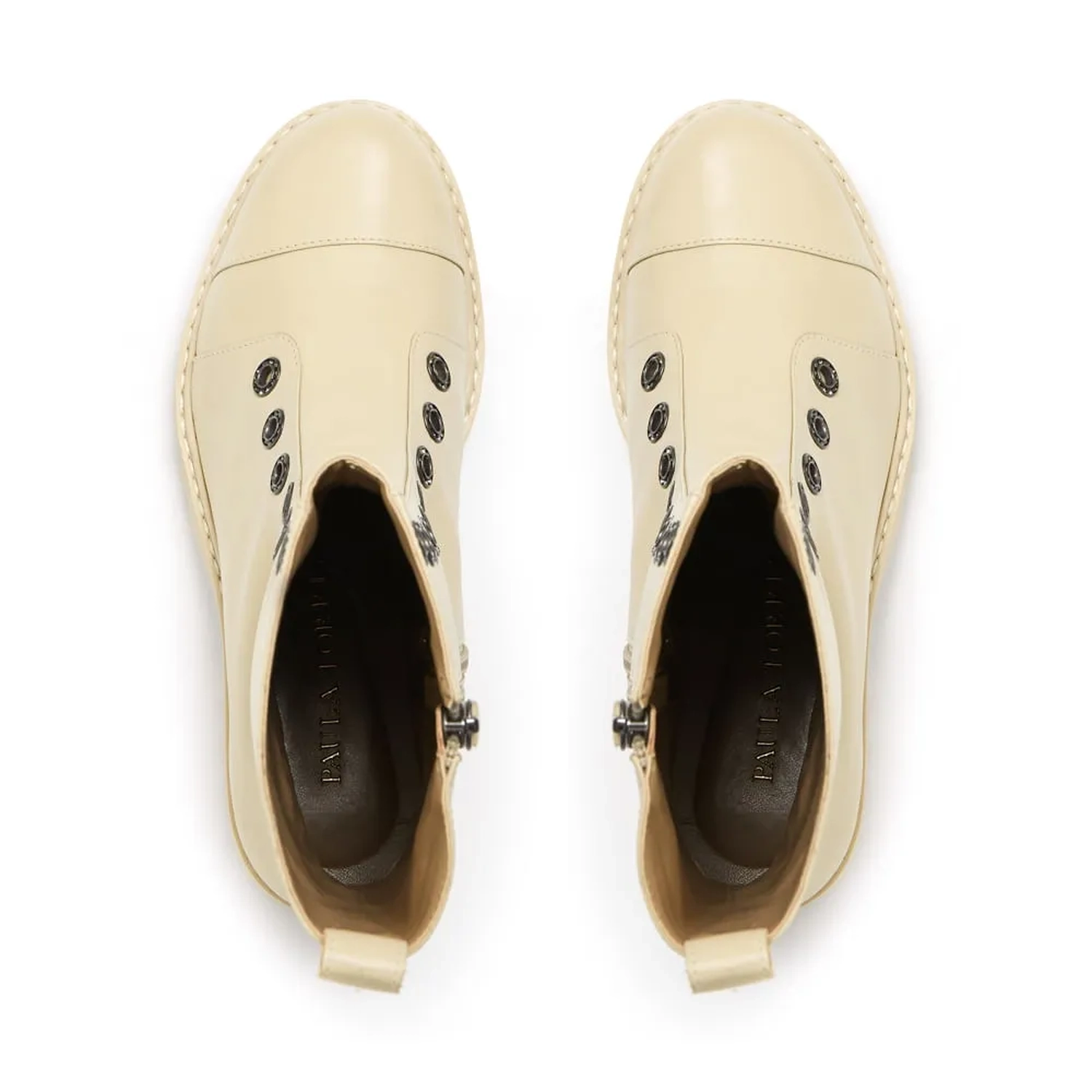 O coturno toledo é confeccionado em couro. Sua modelagem segue a principal trend desfilada nas semanas de moda internacionais que tem as botas utilitárias como principal aposta e na Winter Collection Paula Torres o modelo ganha destaque com a construção seguindo o tipo coturno com fechamento por zíper lateral e solado tratorado em borracha na mesma cor do cabedal. O grande destaque está na aplicação de ilhóses com stass conferindo delicadeza e sofisticação a peça e tudo associado ao conforto presente no DNA Paula Torres.