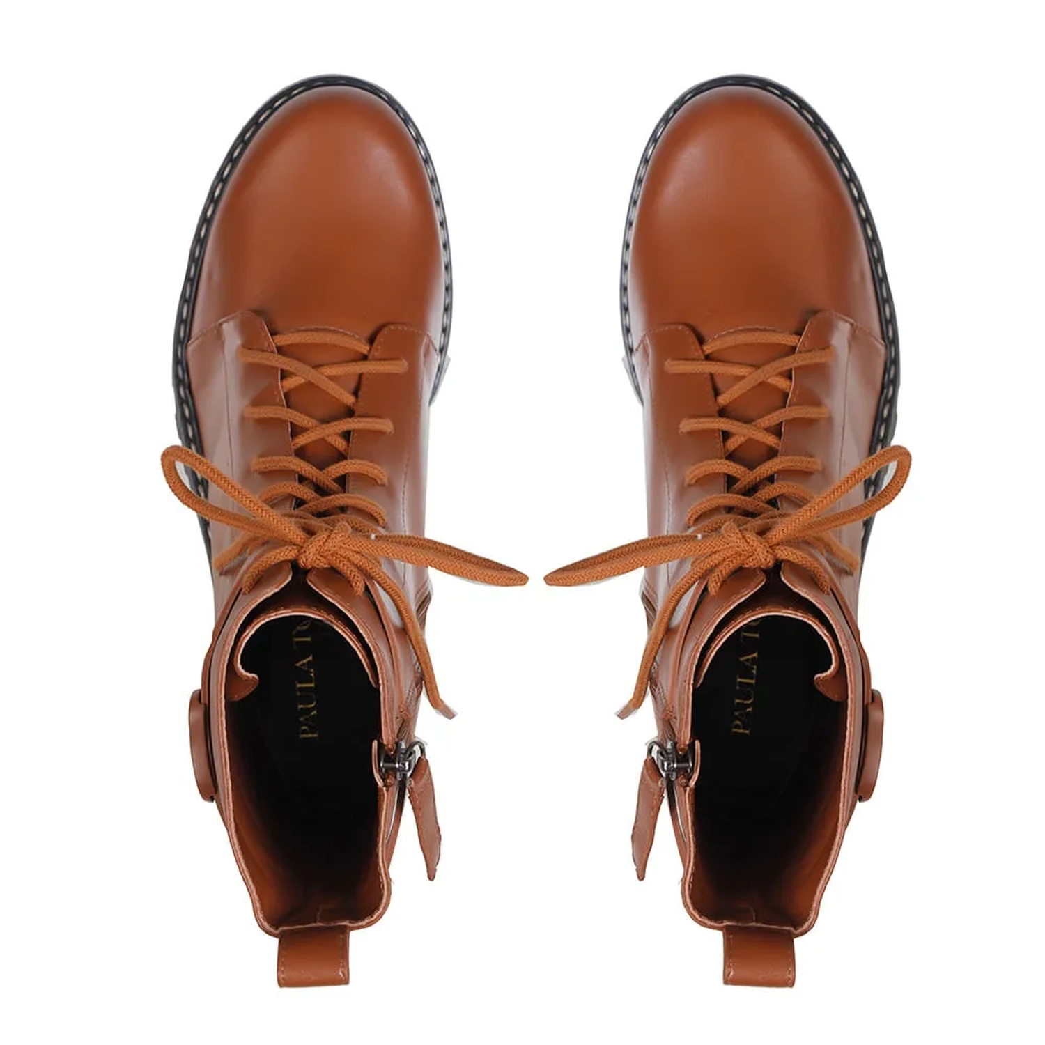 O Coturno Torres é confeccionado em couro. O modelo traz referências do universo militar em sua construção clássica, com o diferencial da tira lateral no tornozelo, com o detalhe do monograma Paula Torres, oferecendo estilo e autenticidade. Seu fechamento é feito por cadarço de fio encerado frontal e zíper lateral. Um modelo atemporal e presente em todas as semanas de moda internacional chega à Paula Torres, carregado de referências de moda, identidade, estilo e todo o conforto presente no DNA da marca.