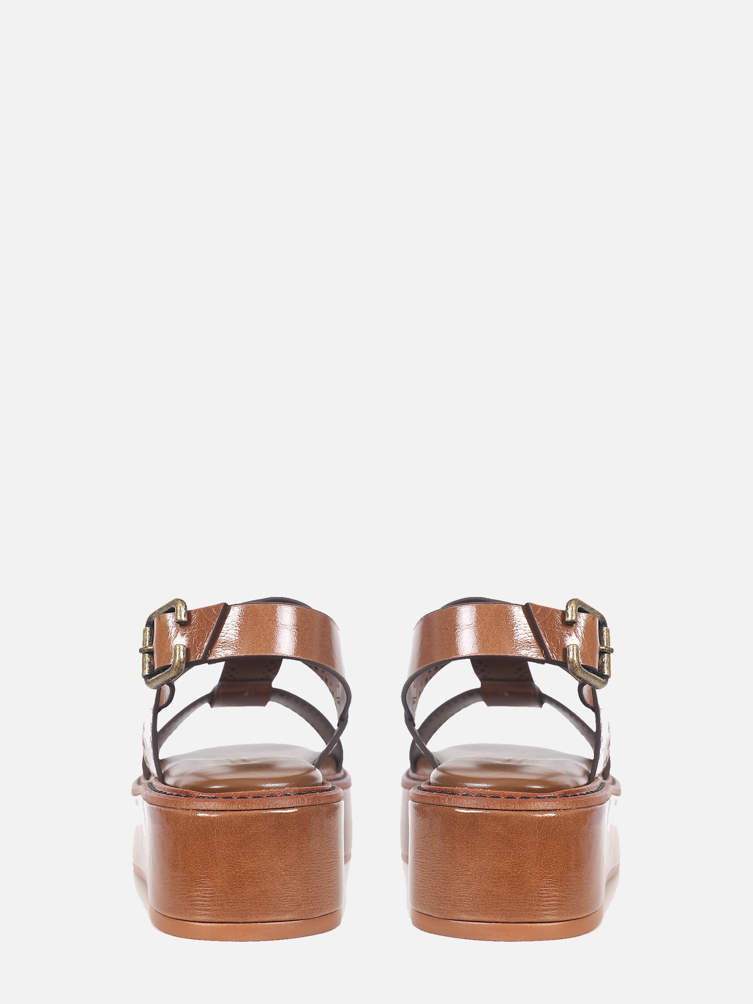 A Flatform Giu é produzida em couro com leve brilho e apresenta um design contemporâneo com acabamento perfurado em estilo brogue, que acrescenta sofisticação ao visual. O modelo conta com tiras largas, fechamento por fivela ajustável e solado flatform, que garante estabilidade, conforto e elevação na medida certa, sendo ideal para compor produções modernas e versáteis, do casual ao urbano chic.