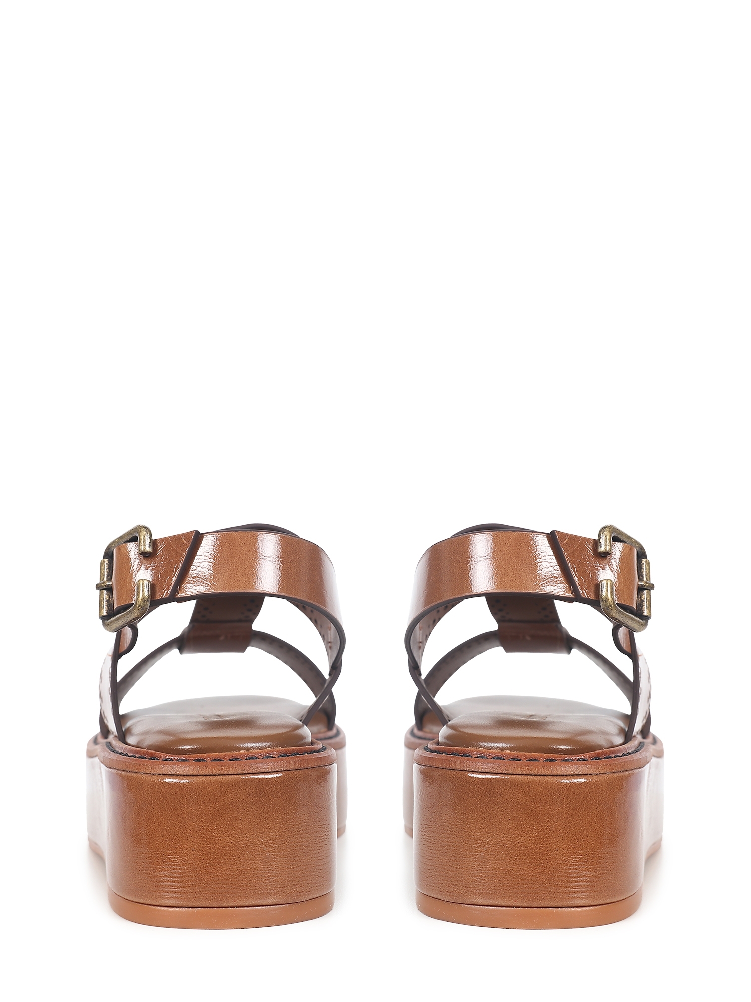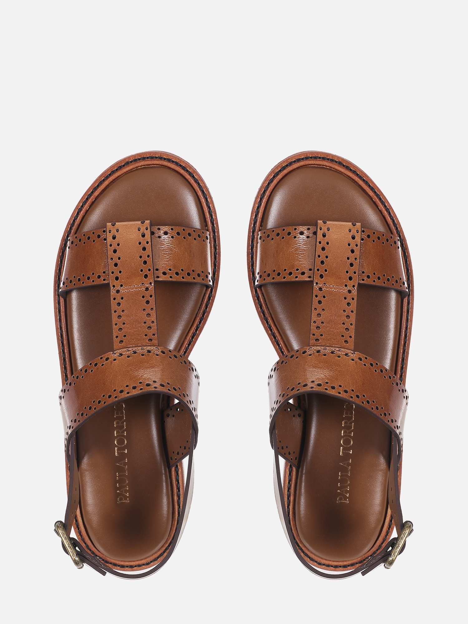 A Flatform Giu é produzida em couro com leve brilho e apresenta um design contemporâneo com acabamento perfurado em estilo brogue, que acrescenta sofisticação ao visual. O modelo conta com tiras largas, fechamento por fivela ajustável e solado flatform, que garante estabilidade, conforto e elevação na medida certa, sendo ideal para compor produções modernas e versáteis, do casual ao urbano chic.
