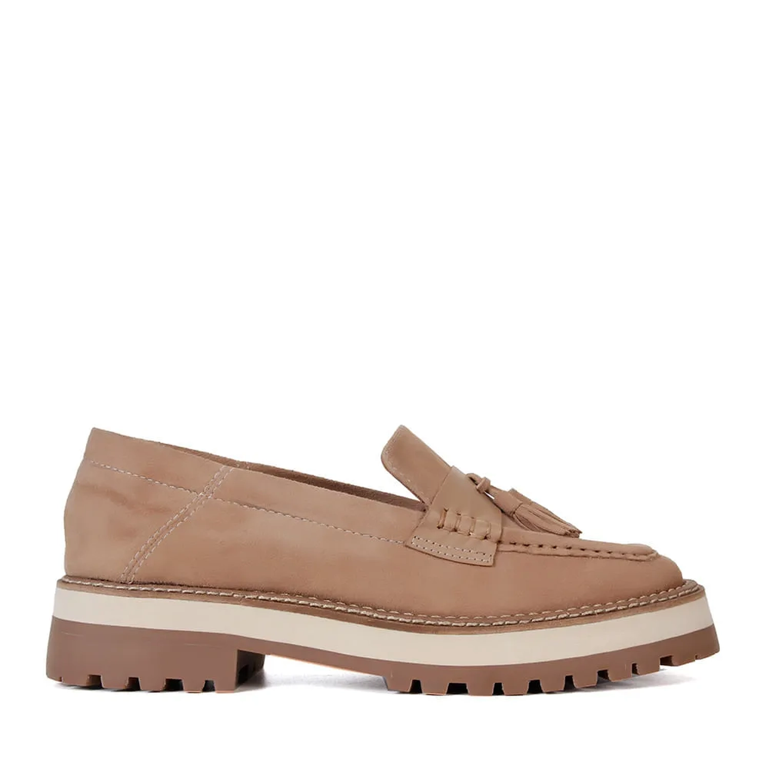 O Mocassim Lorena é um calçado elegante e confortável, confeccionado em camurça de alta qualidade. O bico redondo confere um design clássico e casual ao mocassim. A sola tratada é uma característica marcante do Mocassim Lorena, que além de acrescentar um toque moderno, também proporciona aderência e estabilidade ao caminhar. O cabedal do mocassim possui um recorte lateral na gáspea, trazendo um detalhe interessante e elegante ao calçado. Além disso, a costura destacada na biqueira acrescenta um toque artesanal e sofisticado ao mocassim. Uma das características distintivas do Mocassim Lorena é a aplicação de uma tira larga em napa com barbicachos, que confere um toque de estilo único ao calçado. O pesponto em cor contrastante destaca ainda mais essa tira e acrescenta um elemento de moda e personalidade. A entressola em EVA na cor off white proporciona conforto e amortecimento ao caminhar, tornando o Mocassim Lorena uma excelente escolha para uso diário e longas caminhadas.