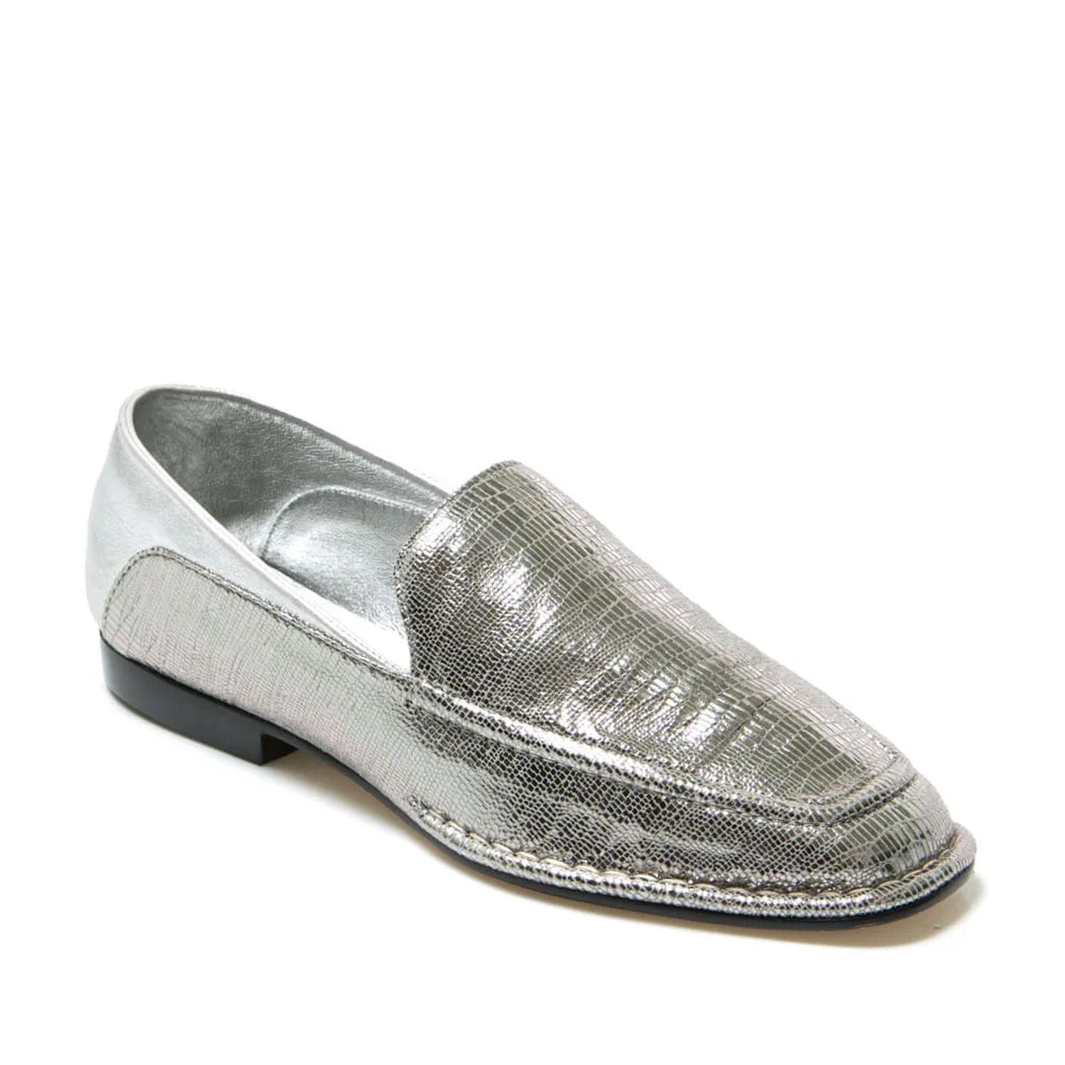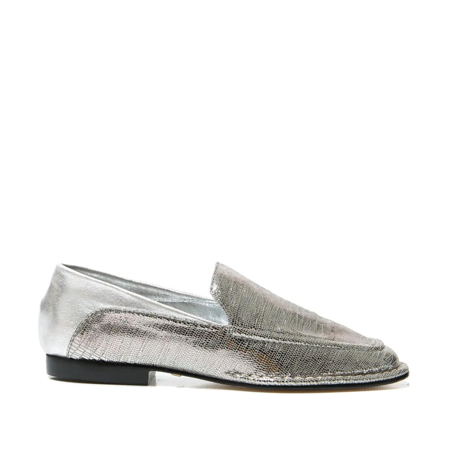 O Mocassim Madrid é produzido 100% couro. O modelo atemporal veio repaginado com o bico levemente quadrado, e vira com pesponto. O couro metalizado craquelado traz um ar de praticidade a peça, que pode ser usado fechada, como também "pisando sobre o calcanhar", deixando assim com aspecto de mule para maior praticidade.