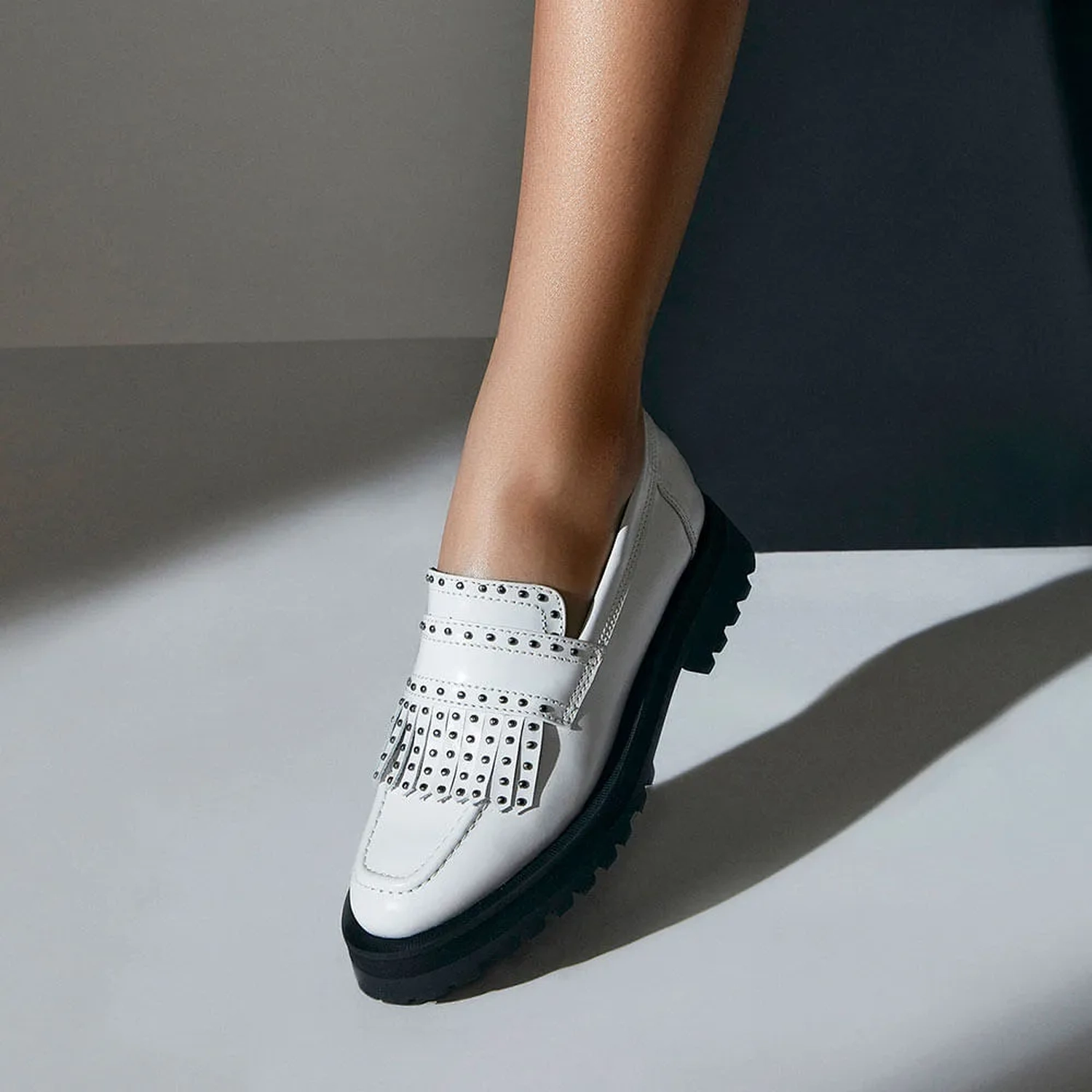 O Mocassim Sevilha é um calçado elegante e moderno, perfeito para quem procura estilo e conforto em um único produto. Confeccionado em couro de alta qualidade, este mocassim é resistente e durável, garantindo uma longa vida útil. Com um bico arredondado e salto tratorado, o Mocassim Sevilha oferece uma combinação perfeita de conforto e estilo. A vira rajada dá ao calçado um toque de sofisticação, enquanto o cabedal com franjas e aplicação de tachas metálicas adiciona um toque de elegância e modernidade ao design.