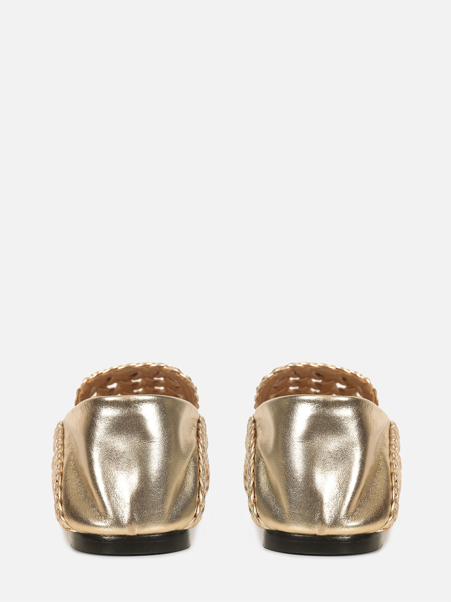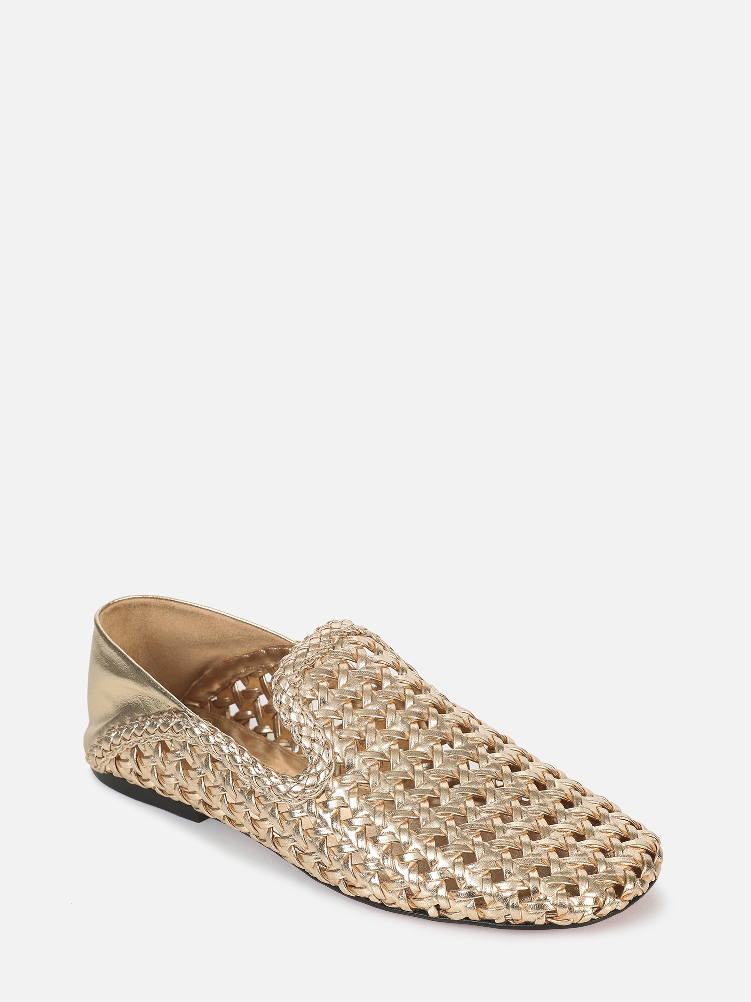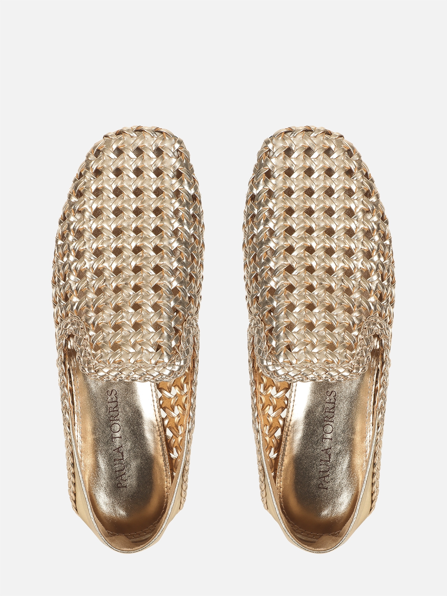 O Mocassim Teodora é confeccionado em couro metalizado macio com tramado manual, que valoriza o design artesanal do modelo. Com bico levemente quadrado, apresenta calcanheira em couro liso, proporcionando ainda mais conforto ao calce. O solado em couro garante sofisticação e durabilidade.