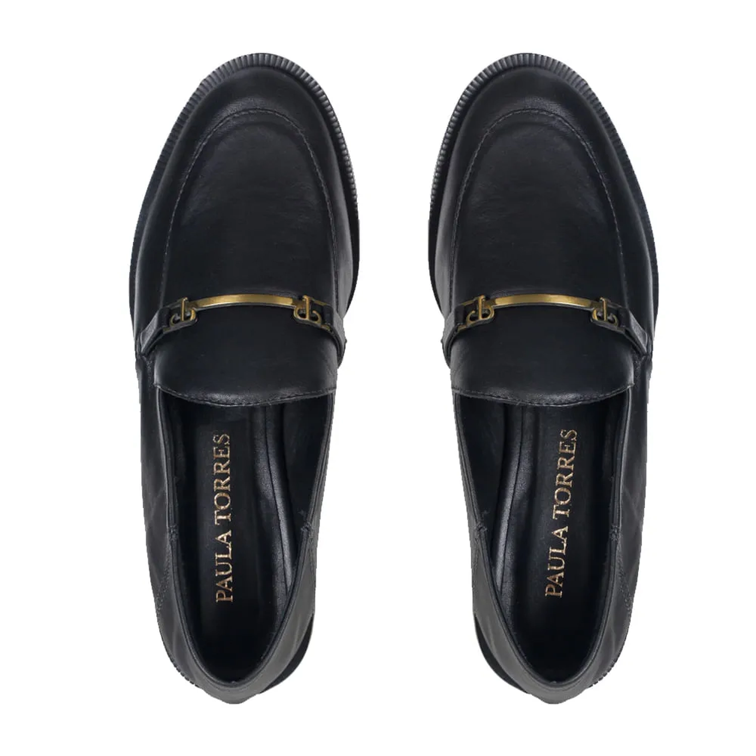 O Mocassim Torres traduz o clássico ao Verão 23' Paula Torres. Produzido em couro, a peça mescla o clássico ao moderno. Seu cabedal apresenta o atemporal mocassim que se contrapõem ao solado mais robusto, reforçando o design e atenção às tendências. Em destaque, o pesponto no cabedal e lapela que desenha os pés, conferindo modernidade e feminilidade ao calce. Na parte superior, a fivela em tortuga com o logo nas extremidades entrega charme e sofisticação.