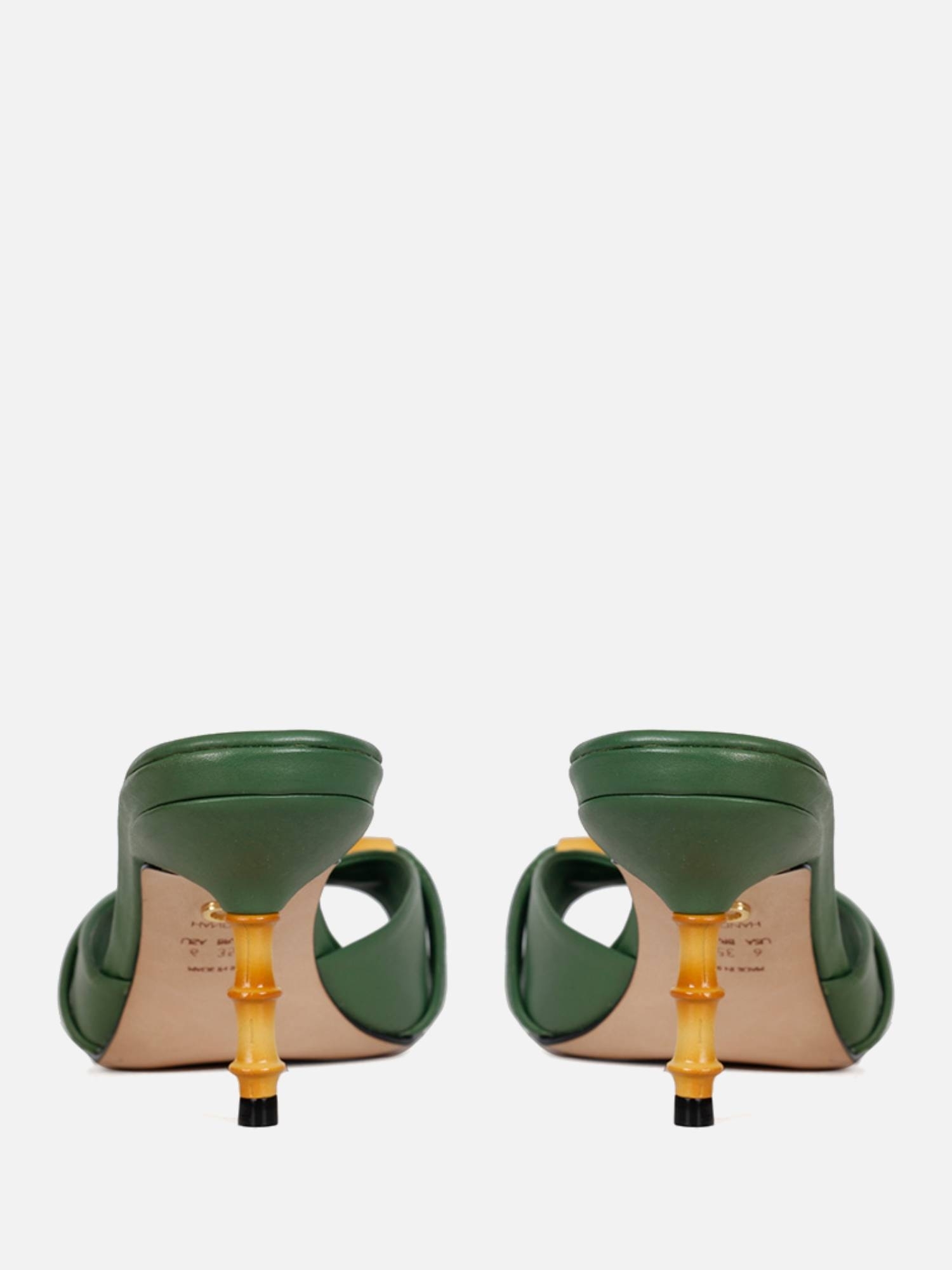 O Mule Cora é uma peça de destaque que combina estilo e originalidade, confeccionado em napa de alta qualidade para garantir um calçado reforçado e sofisticado que é perfeito para qualquer ocasião. O bico redondo do mule oferece um toque de suavidade e conforto, proporcionando um ajuste acolhedor aos seus pés. O salto em pino de ferro, coberto com uma capa de bambu em ABS, é um detalhe marcante que adiciona uma dose extra de elegância e comprovação ao design da mula. O cabedal do mule apresenta um decote arredondado e um peep toe, que oferece um toque de ousadia e estilo. O destaque principal é a peça de bambu em resina, que é um detalhe único e artístico que certamente chamará a atenção.