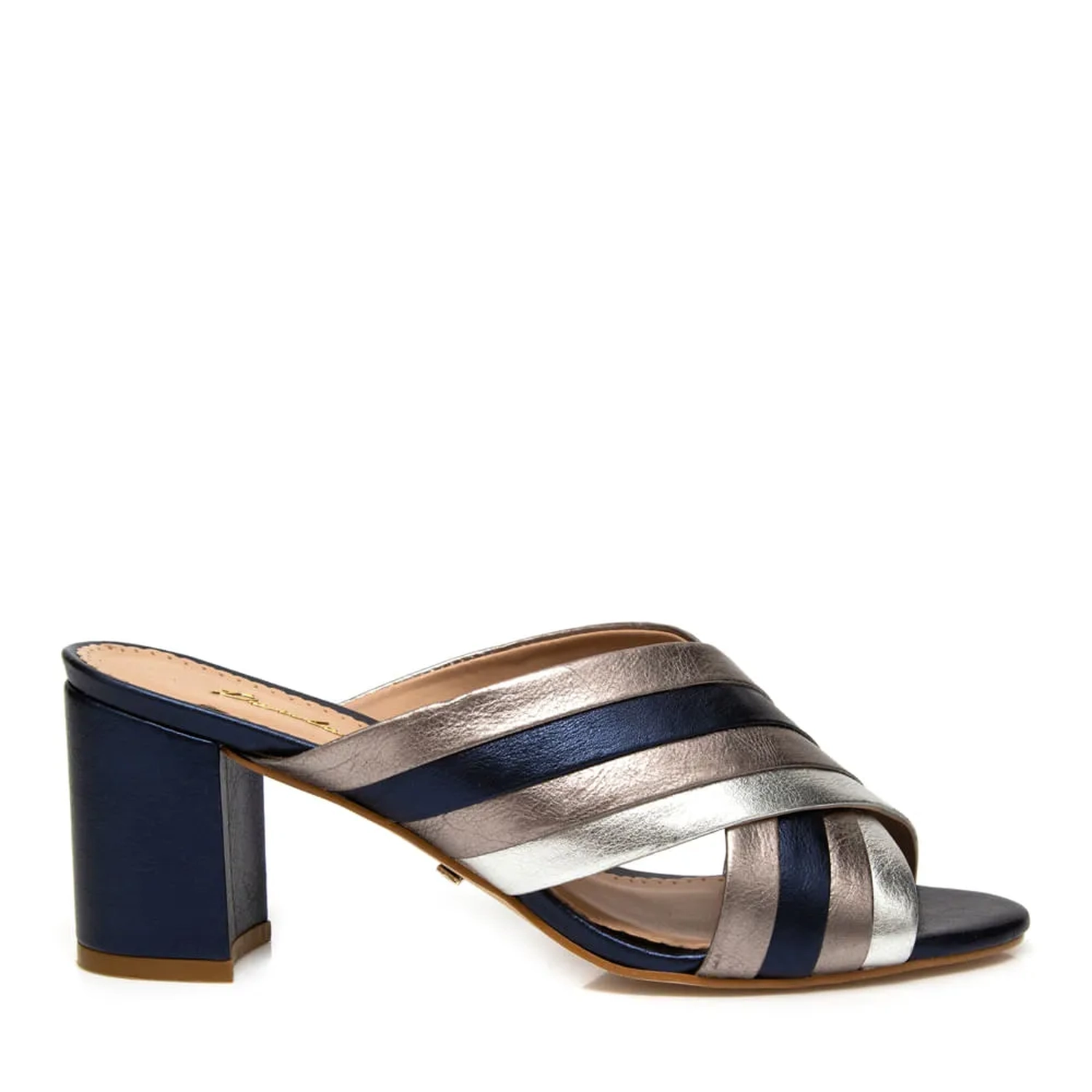 Mules são sempre uma opção prática e com muito estilo. ainda mais se tratando do mule ferrara, confeccionado em couro metalizado que dá um brilho extra deixando sua produção ainda mais moderna e descolada. O trabalho das tiras em tons diferentes é o que vai tirar seu look do comum, deixando para os pés o elemento principal da produção. ;)