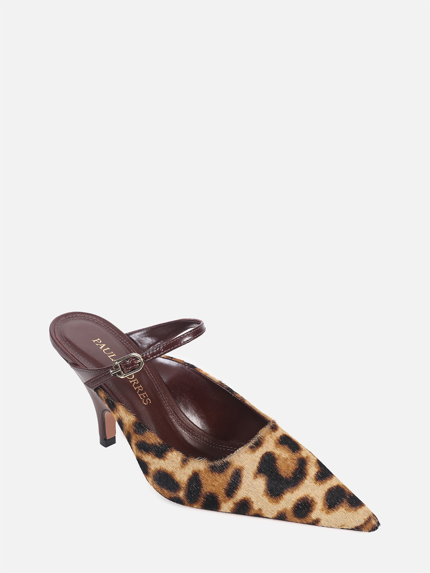 O Mule Glória é produzido em pelo com estampa animal print e apresenta design elegante e marcante, com bico fino que alonga a silhueta e tira sobre o peito do pé com fivela, garantindo melhor ajuste e segurança ao calçar. O modelo conta com salto médio curvado, que proporciona leveza e conforto ao caminhar, além de um acabamento sofisticado que valoriza produções refinadas com personalidade.