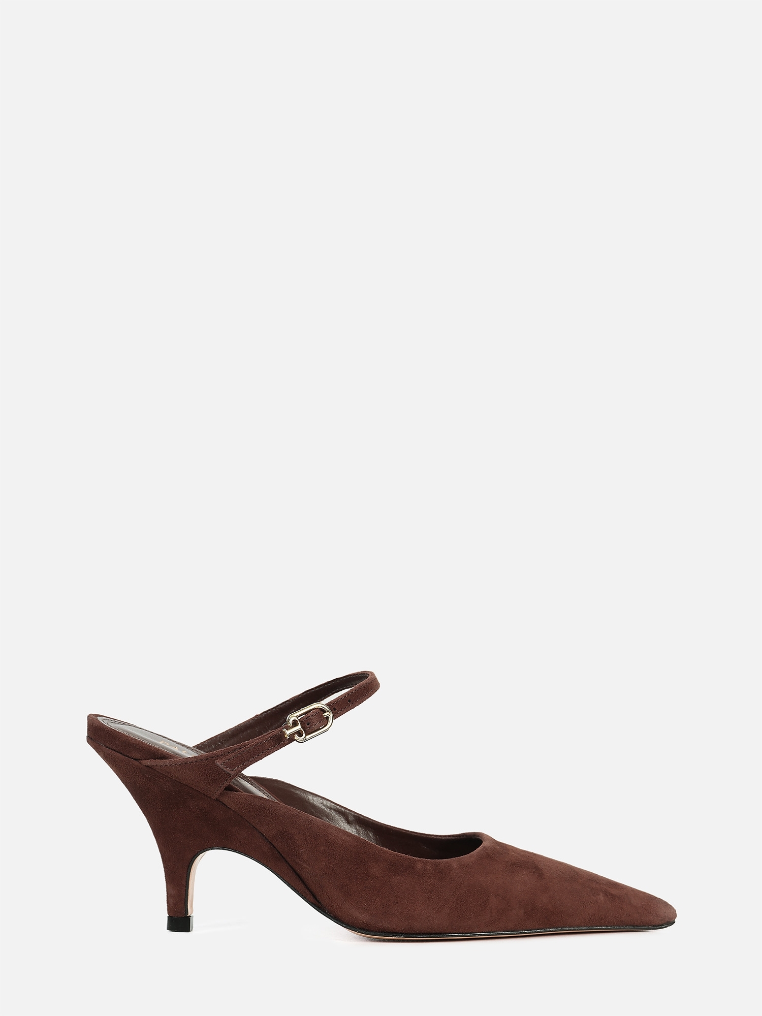 O Mule Glória é produzido em couro e apresenta design elegante e marcante, com bico fino que alonga a silhueta e tira sobre o peito do pé com fivela, garantindo melhor ajuste e segurança ao calçar. O modelo conta com salto médio curvado, que proporciona leveza e conforto ao caminhar, além de um acabamento sofisticado que valoriza produções refinadas com personalidade.
