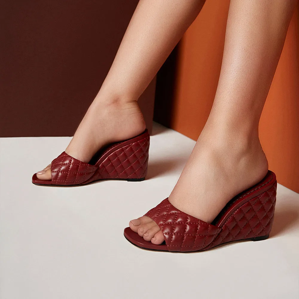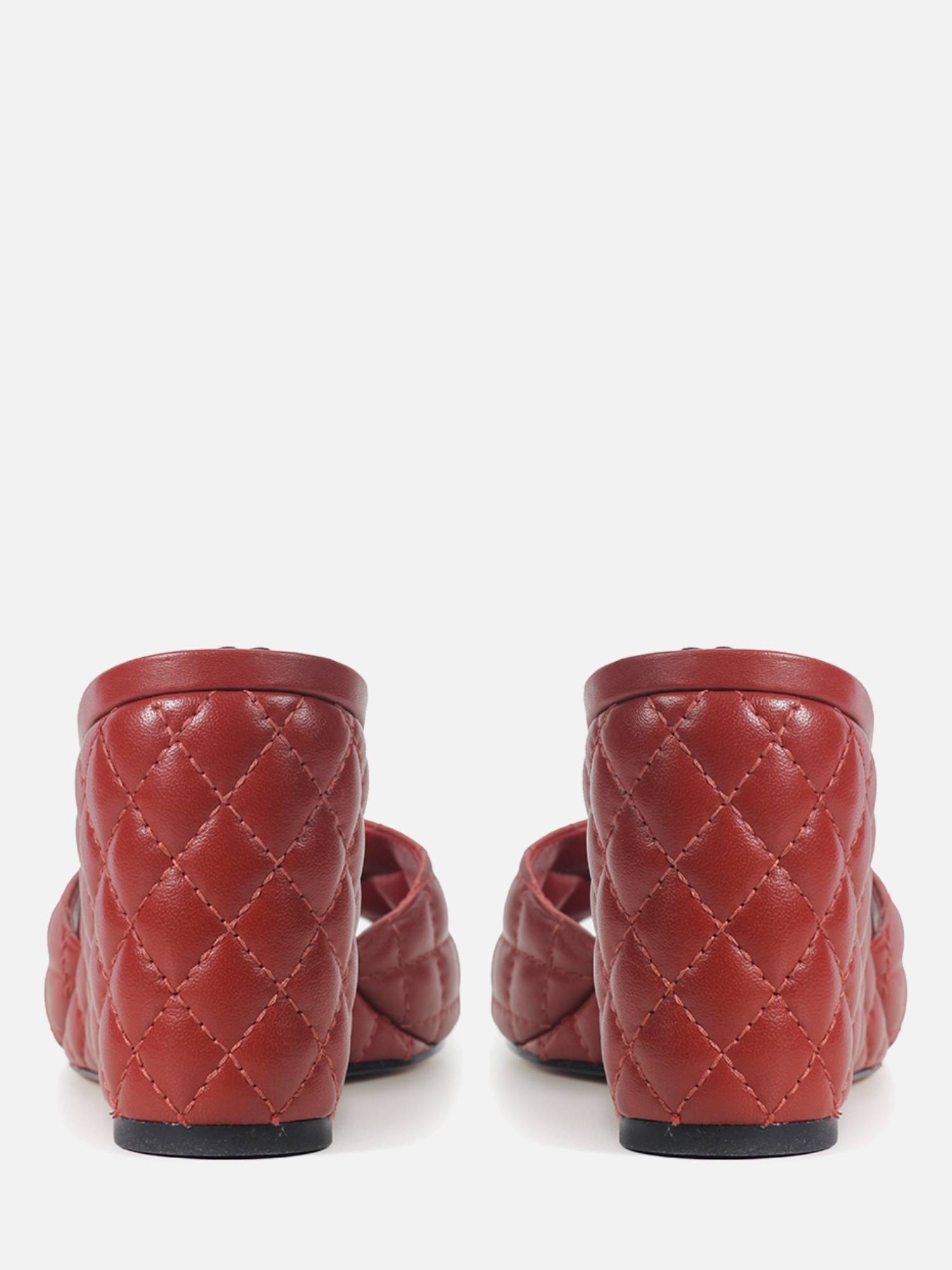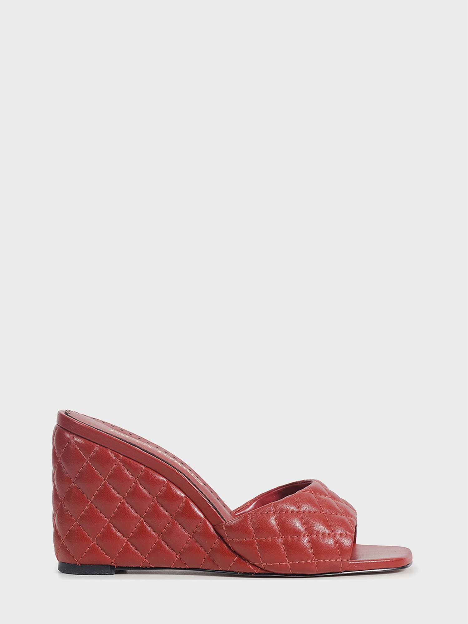 O Mule Mônaco é confeccionado em napa. O modelo conta com salto do tipo anabela e bico quadrado. Detalhe para a técnica em matelassê na anabela. Seu cabedal conta com abertura do bico peep toe.