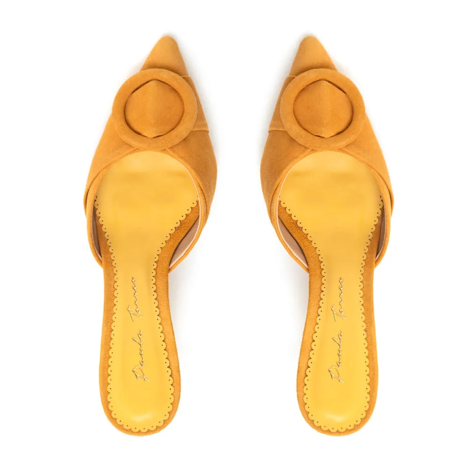 Mule de camurça com o detalhe das tiras grossas na frente e a fivela que dão mais força para os pés, valorizando sua produção e a deixando mais sofisticada e com atitude. Para as mulheres mais clássicas que não dispensam um salto fino ¿com tamanho médio ¿ para aguentar todos os compromissos do dia-a-dia em cima do salto em grande estilo. ;) Cor: Mostarda Salto: 8.0CM