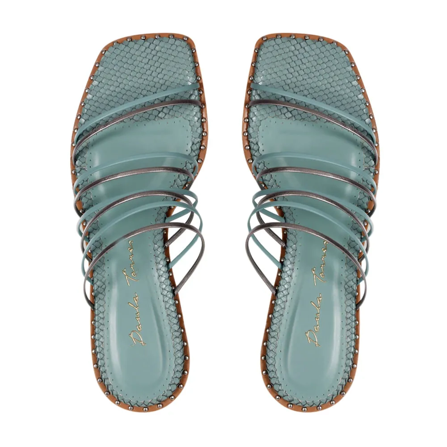O Mule Pietra é confeccionado em couro. Modelagem em bico quadrado e salto redondo. Cabedal formado por tiras finas metalizadas. Base com tachas metalizadas ao redor de toda palmilha. Uma peça moderna, com muito estilo, totalmente Verão 22!