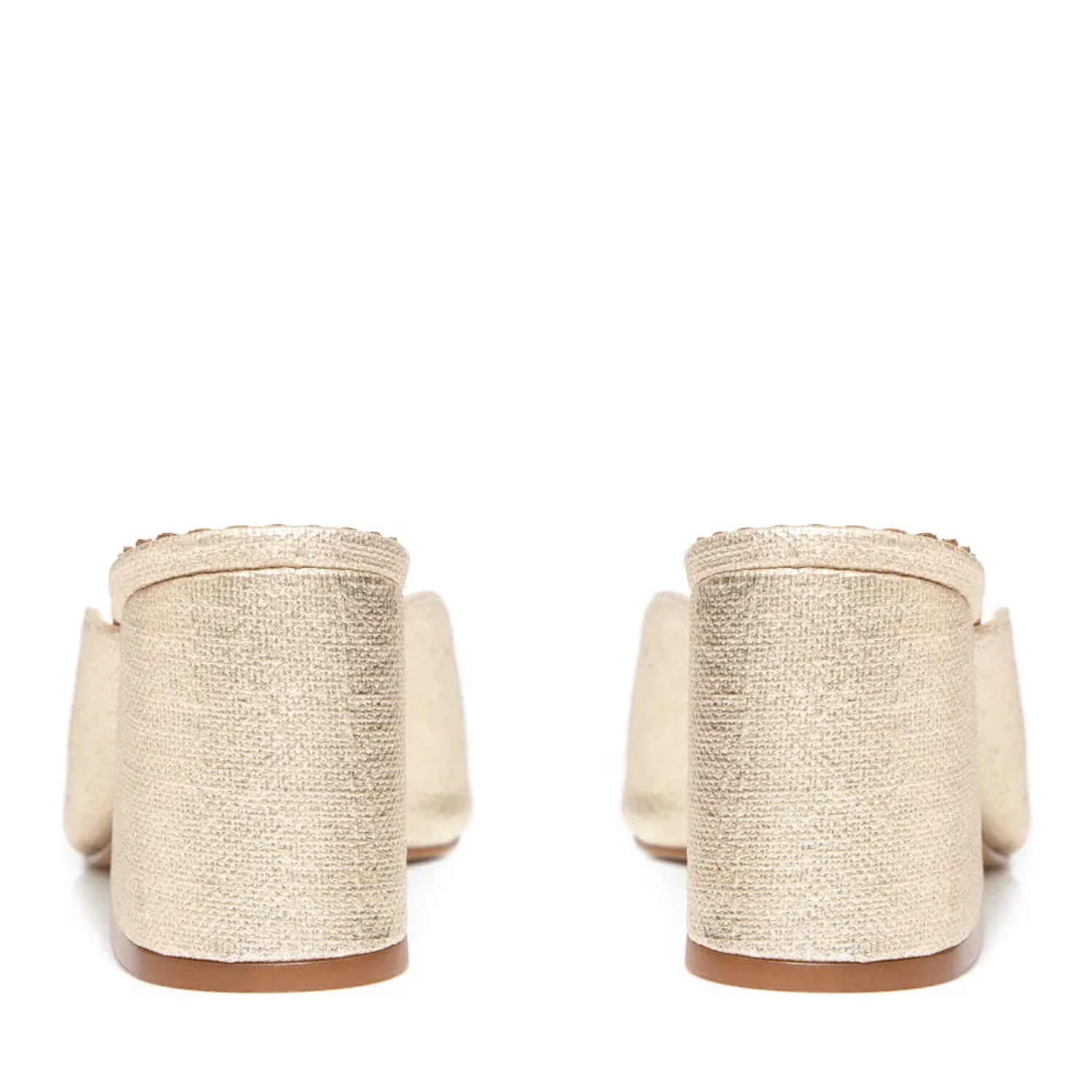O Mule Sky é confeccionado em couro metalizado. Modelagem em bico redondo constratando a com abertura quadrada. O salto bloco traz conforto ao modelo sofisticado.