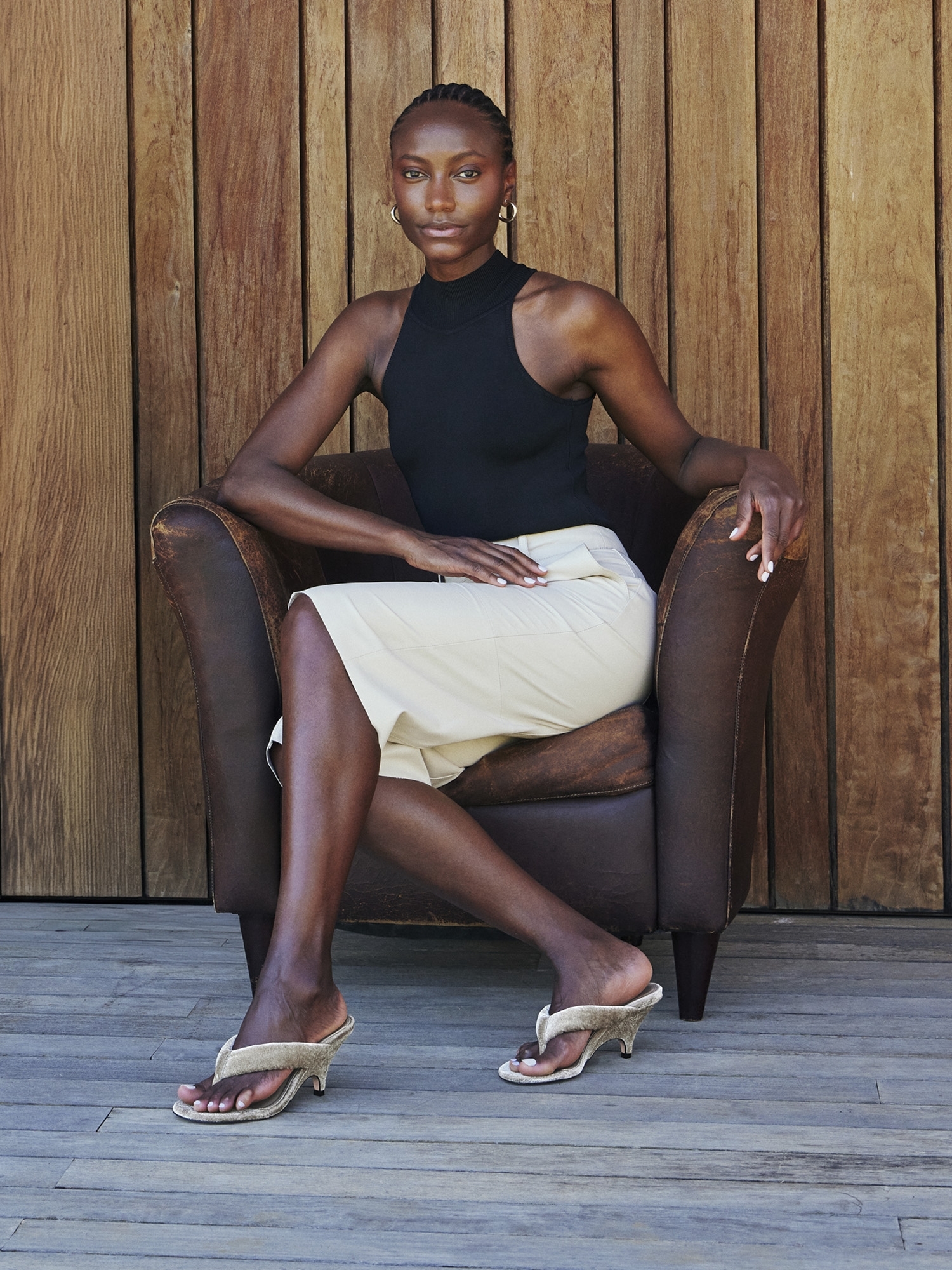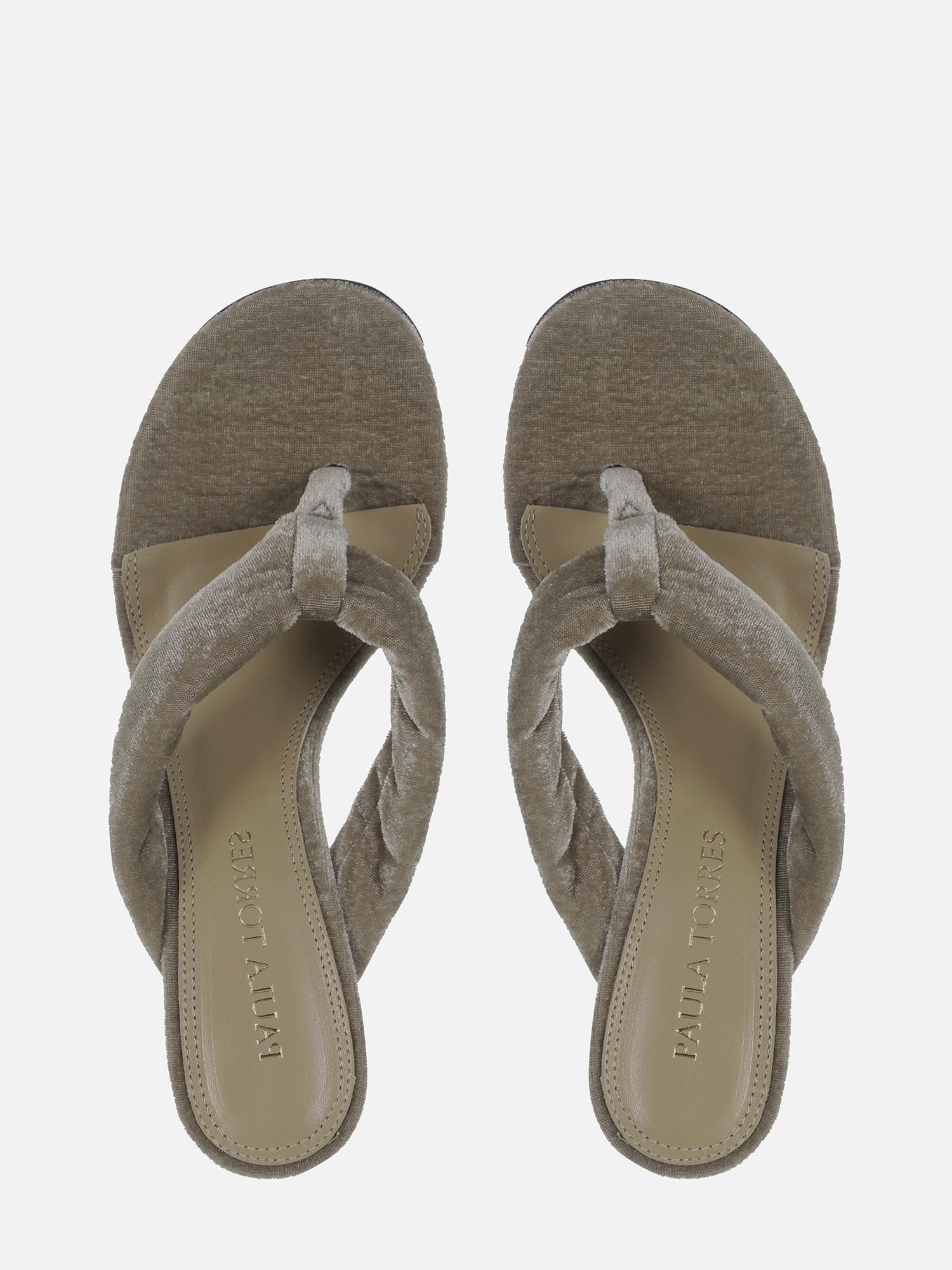 O Mule Velvet Bege é produzido em veludo e se destaca pelo design de linhas limpas, valorizando uma estética elegante e contemporânea. O modelo possui tiras acolchoadas no estilo thong sandal, pensadas para oferecer melhor ajuste aos pés.