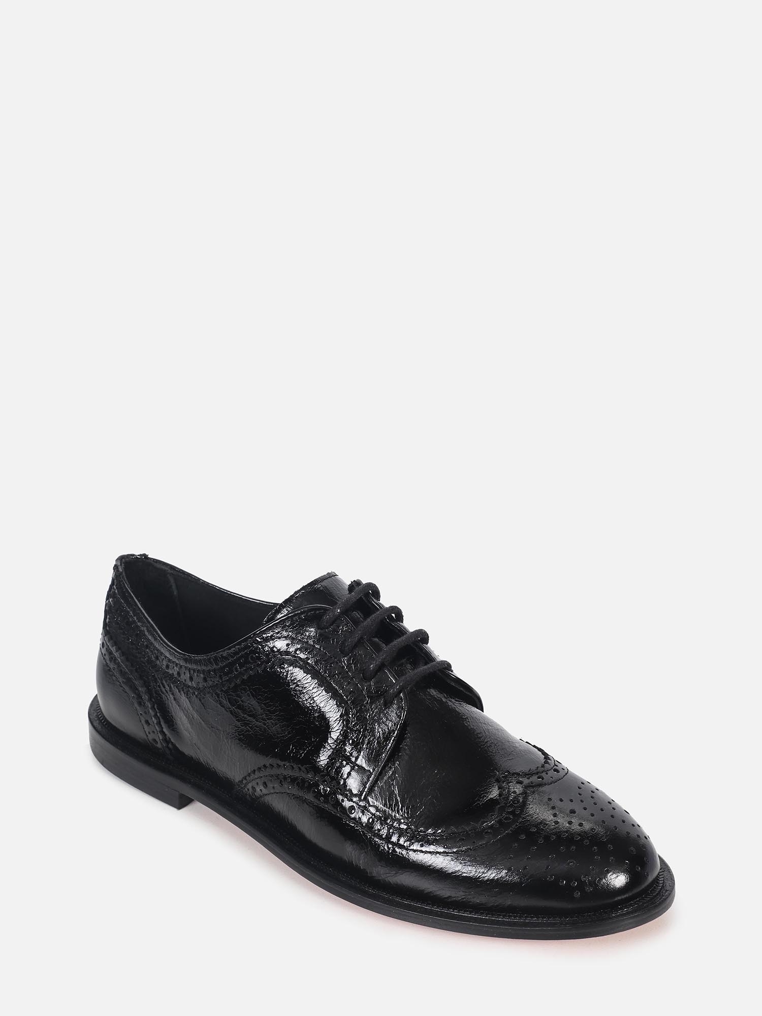 O Oxford Olívia é produzido em verniz com acabamento amassado, que se destaca pelo brilho sofisticado, textura marcante e visual contemporâneo, além de apresentar design clássico com acabamento brogue, que adiciona elegância ao modelo. Conta com solado em couro, garantindo conforto, durabilidade e um acabamento refinado, sendo ideal para compor looks versáteis, do casual elegante às produções mais elaboradas.