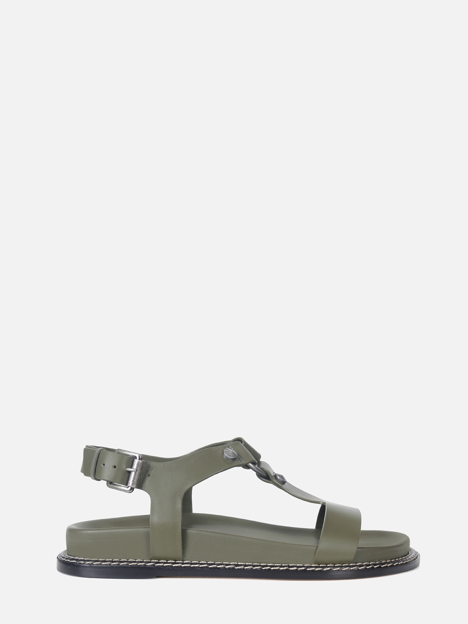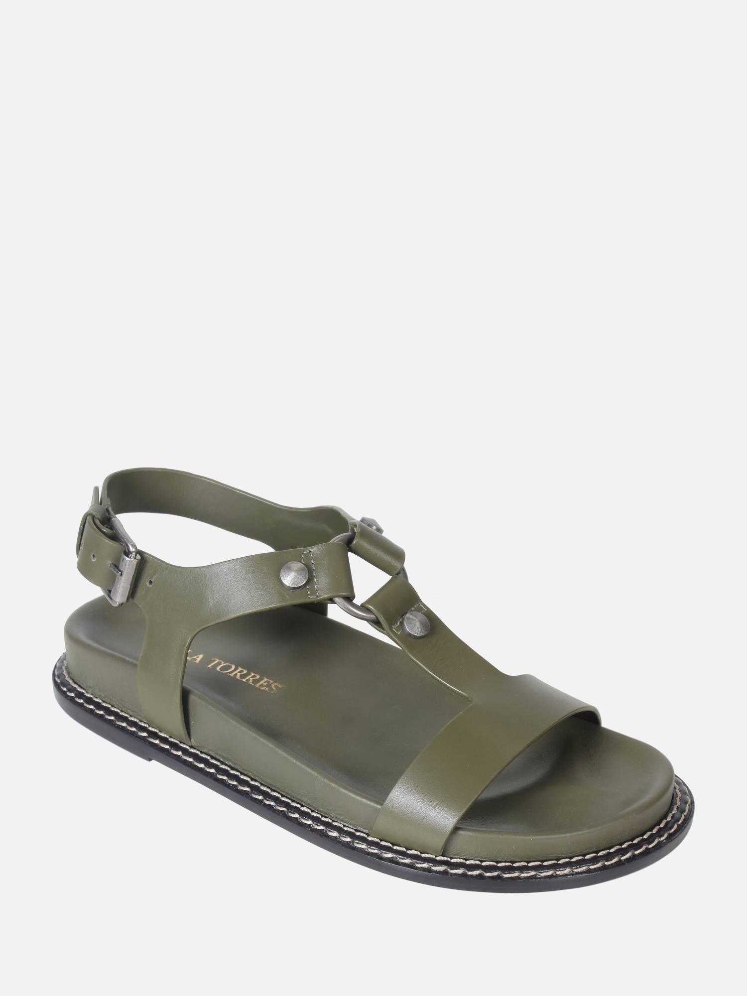 A Papete Clair é confeccionada em couro box, reconhecido por seu acabamento liso e sofisticado. O modelo oferece conforto e segurança com sua palmilha anatômica e solado emborrachado, que proporcionam maior estabilidade ao caminhar. O grande destaque está na elegante argola de metal sobre o peito do pé, que conecta as tiras de couro formando um charmoso, enquanto outra tira é posicionada sobre os dedos. O ajuste é prático e feito por uma fivela lateral.