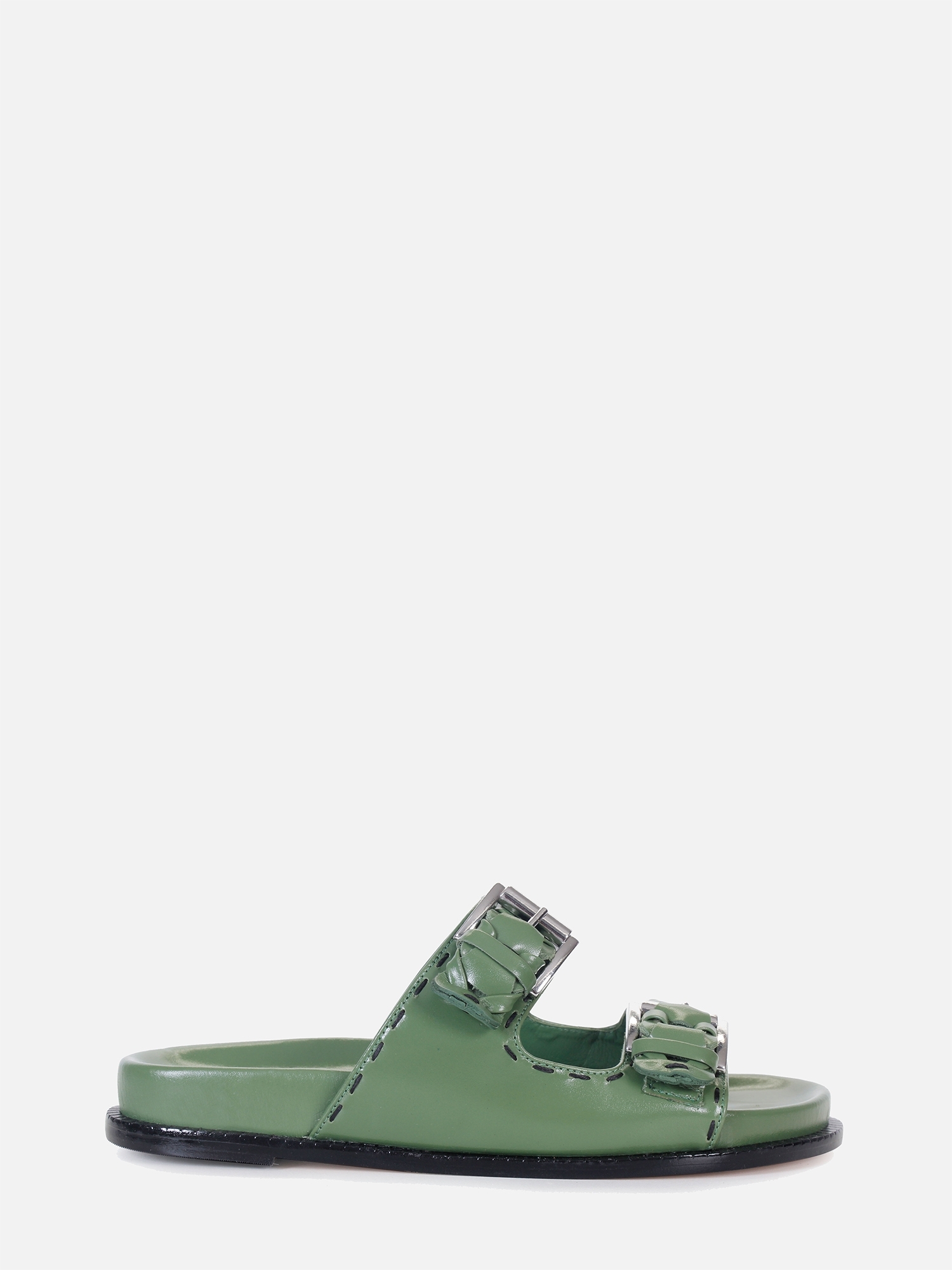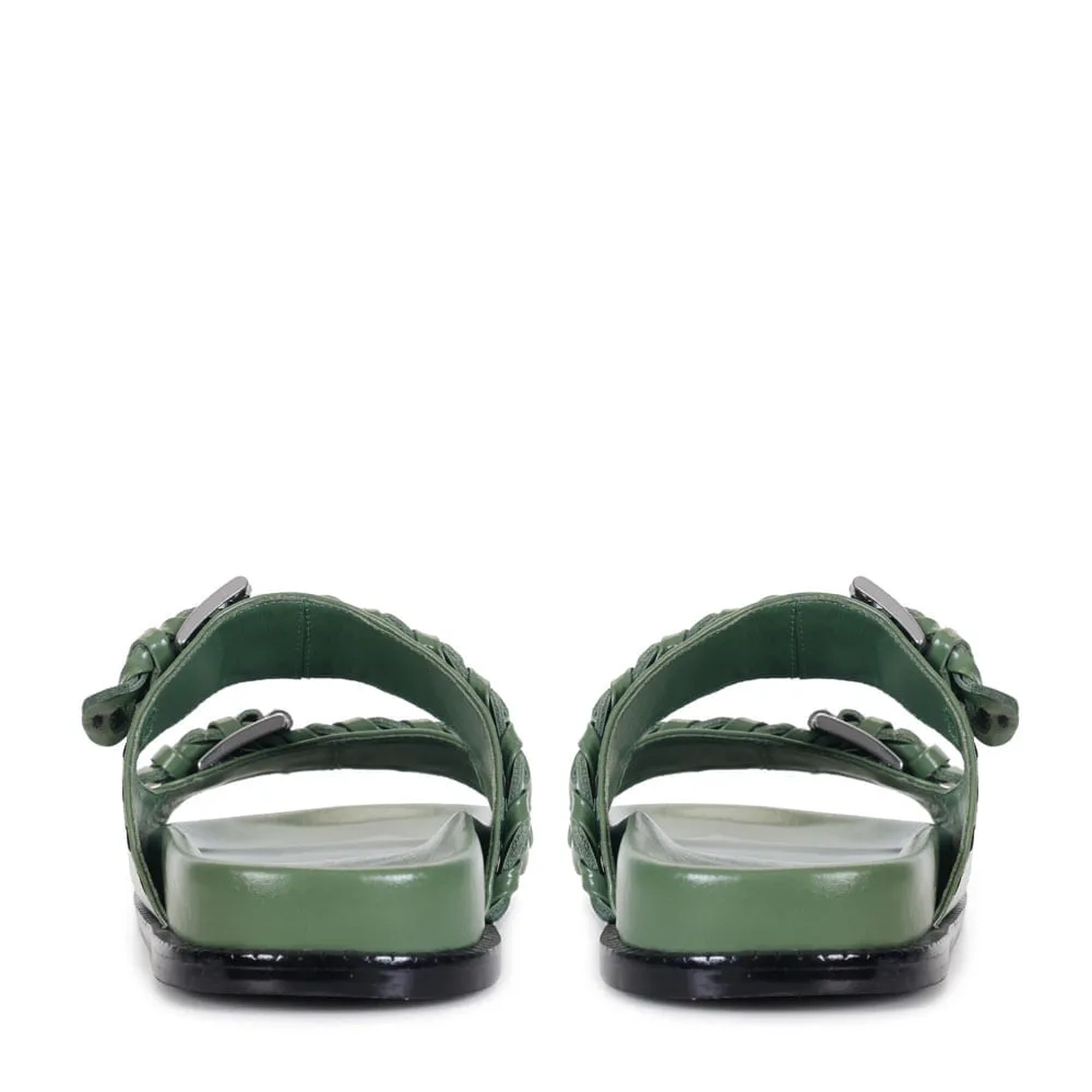 O Slider Ellen é um calçado confortável e estiloso, confeccionado em caseína, um material resistente e de alta qualidade. Ele é projetado com um bico anatômico, que se adapta perfeitamente à curvatura dos pés, proporcionando conforto durante o uso. O slider possui uma vira rajada, que adiciona um toque de estilo e diferenciação ao calçado. O cabedal é composto por tiras largas trabalhadas em macramê, uma técnica de entrelaçamento de fios que confere um visual artesanal e charmoso ao calçado. Para um toque adicional de exaltação, o Slider Ellen apresenta quatro fivelas quadradas em metal nas tiras, trazendo um detalhe sofisticado e moderno.