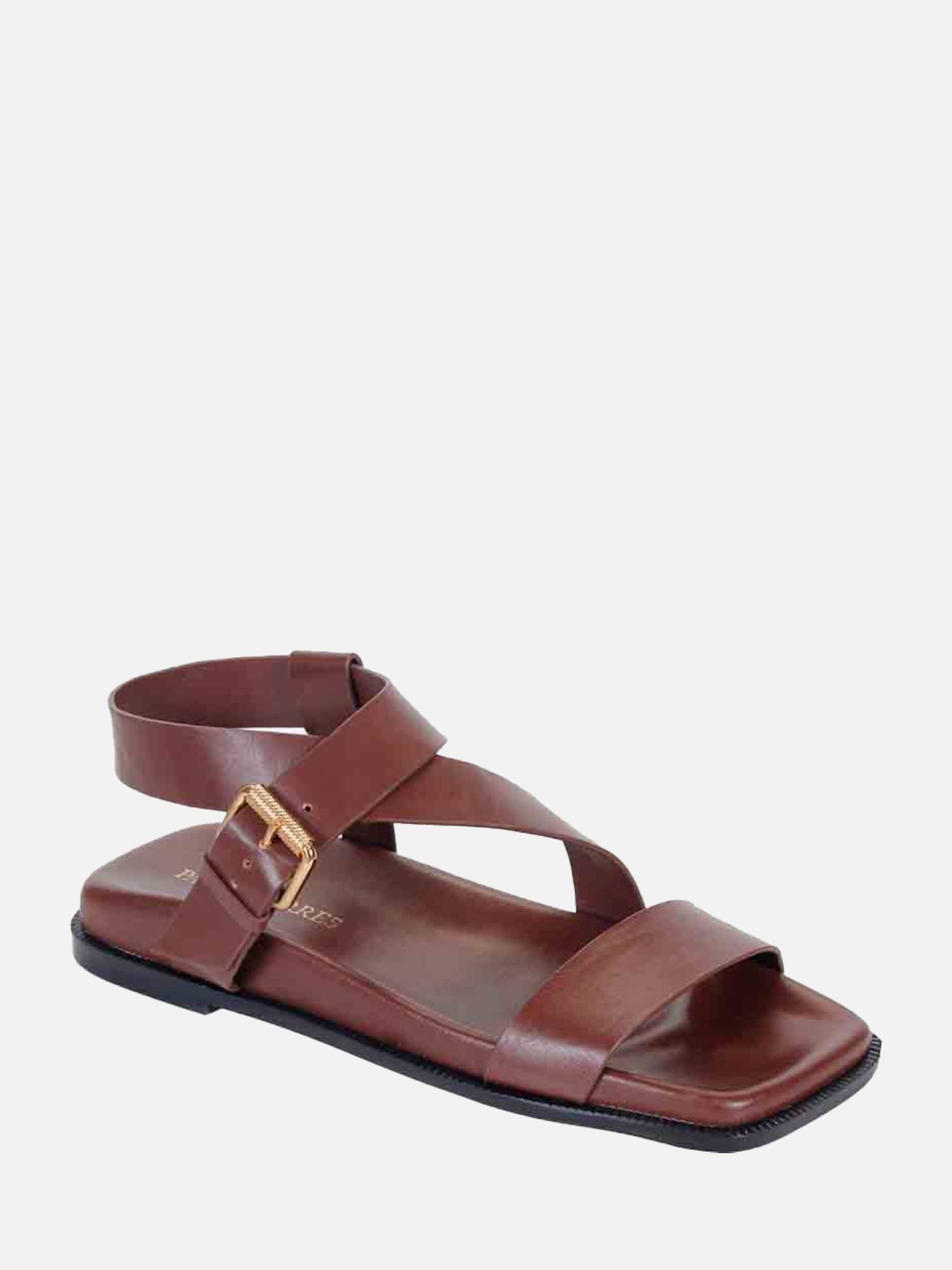 A Papete Sasha é produzida em couro de alta qualidade. O modelo apresenta uma tira larga sobre os dedos e outra tira cruzando o peito do pé passando pelo calcanhar sendo finalizada na lateral com fivela robusta com banho dourado. Palmilha anatômica, com bico quadrado, trazendo um toque moderno ao design e a vira serrilhada com solado em couro completam a peça, assegurando conforto e resistência.