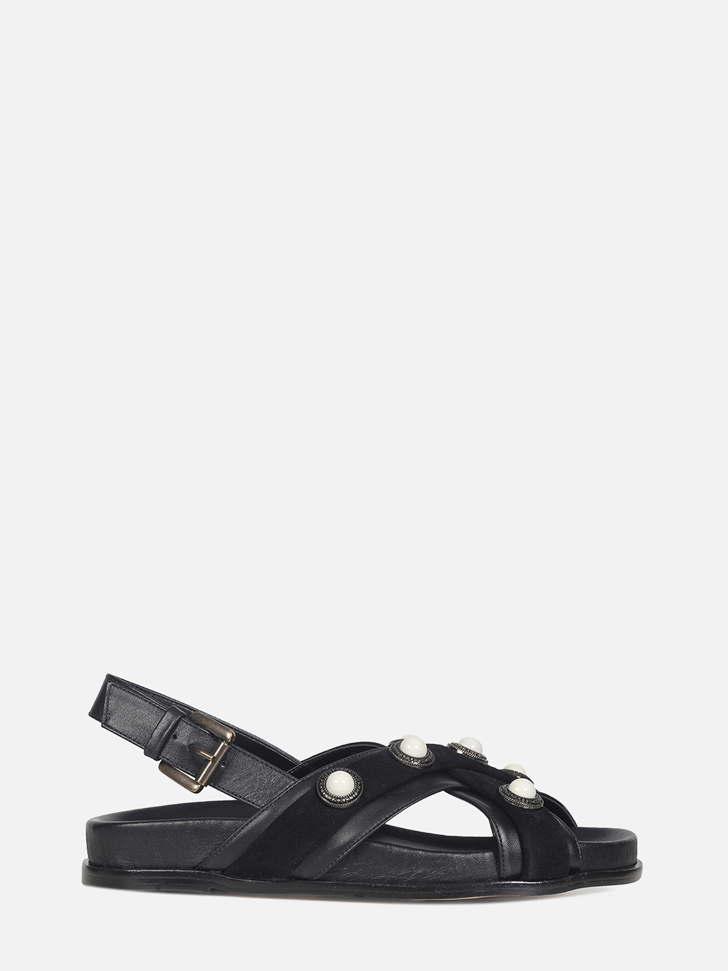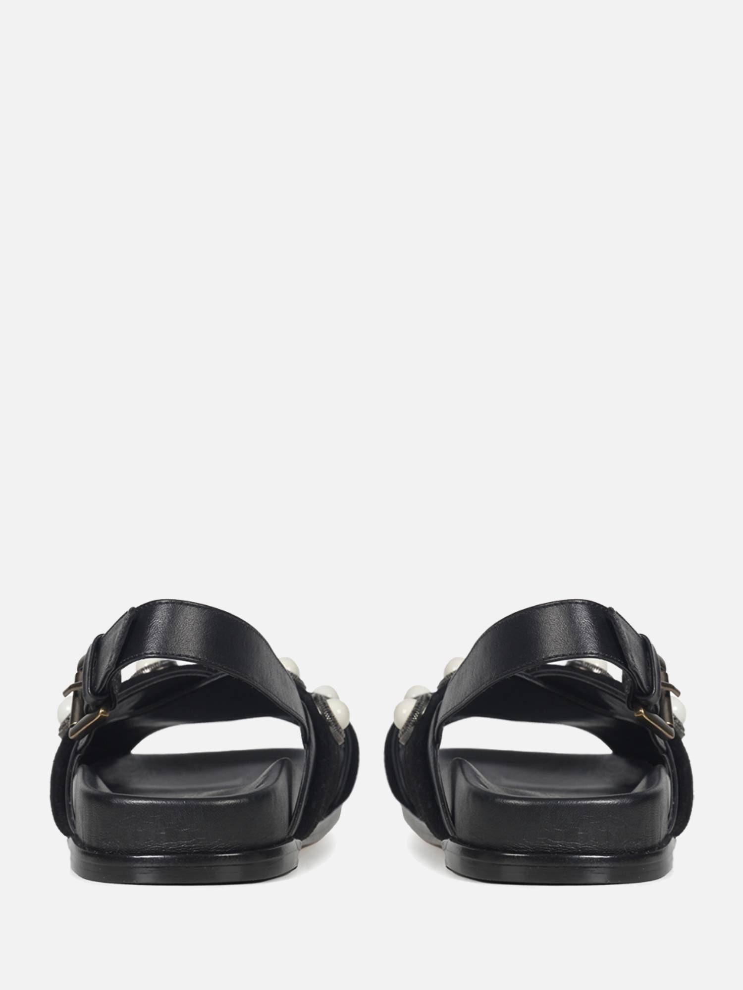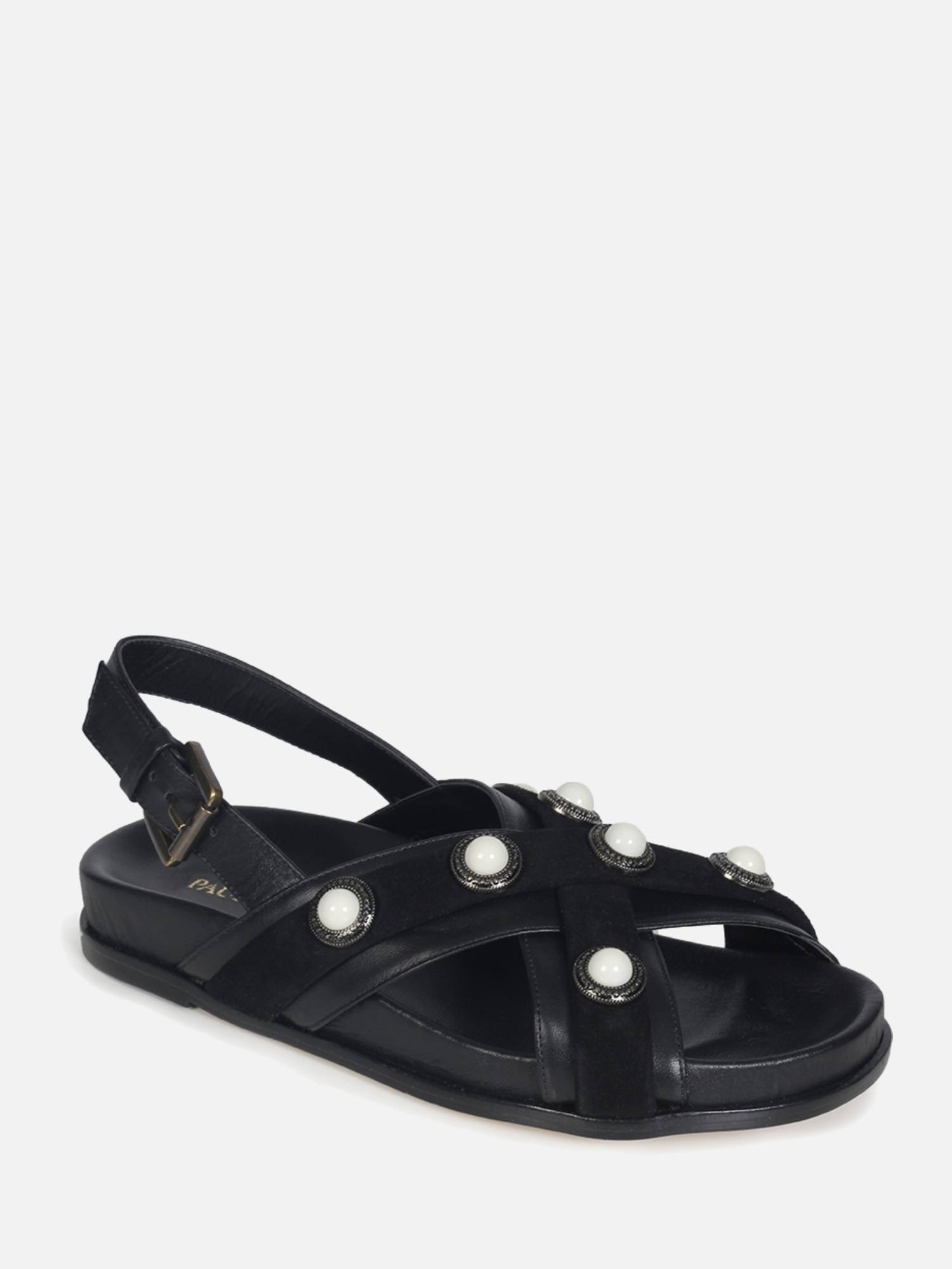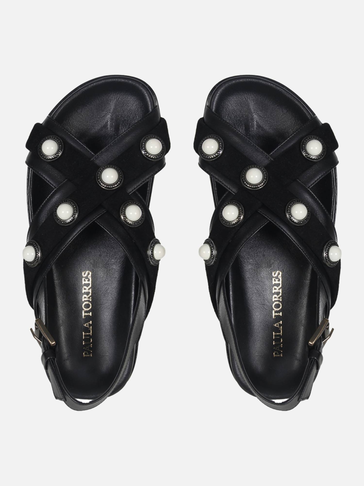 A Papete Yasmin é confeccionada em couro. Repaginando as papetes, a construção da peça traz conforto com a palmilha anatômica e o solado flat. O destaque do modelo são as aplicações em metal com pedrarias circulares na superfície das tiras de couro, conferindo charme e estilo ao calce, traduzindo o DNA handmade da marca.