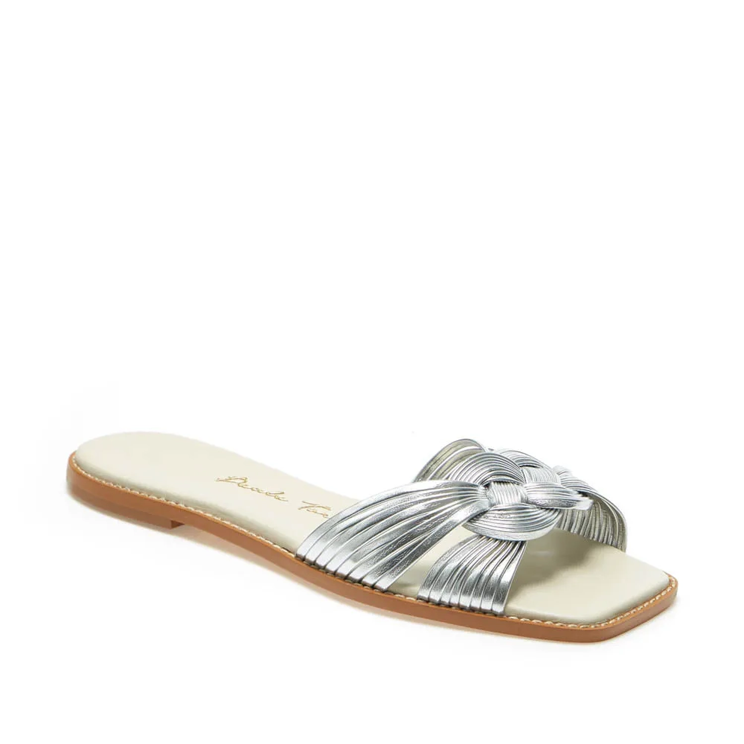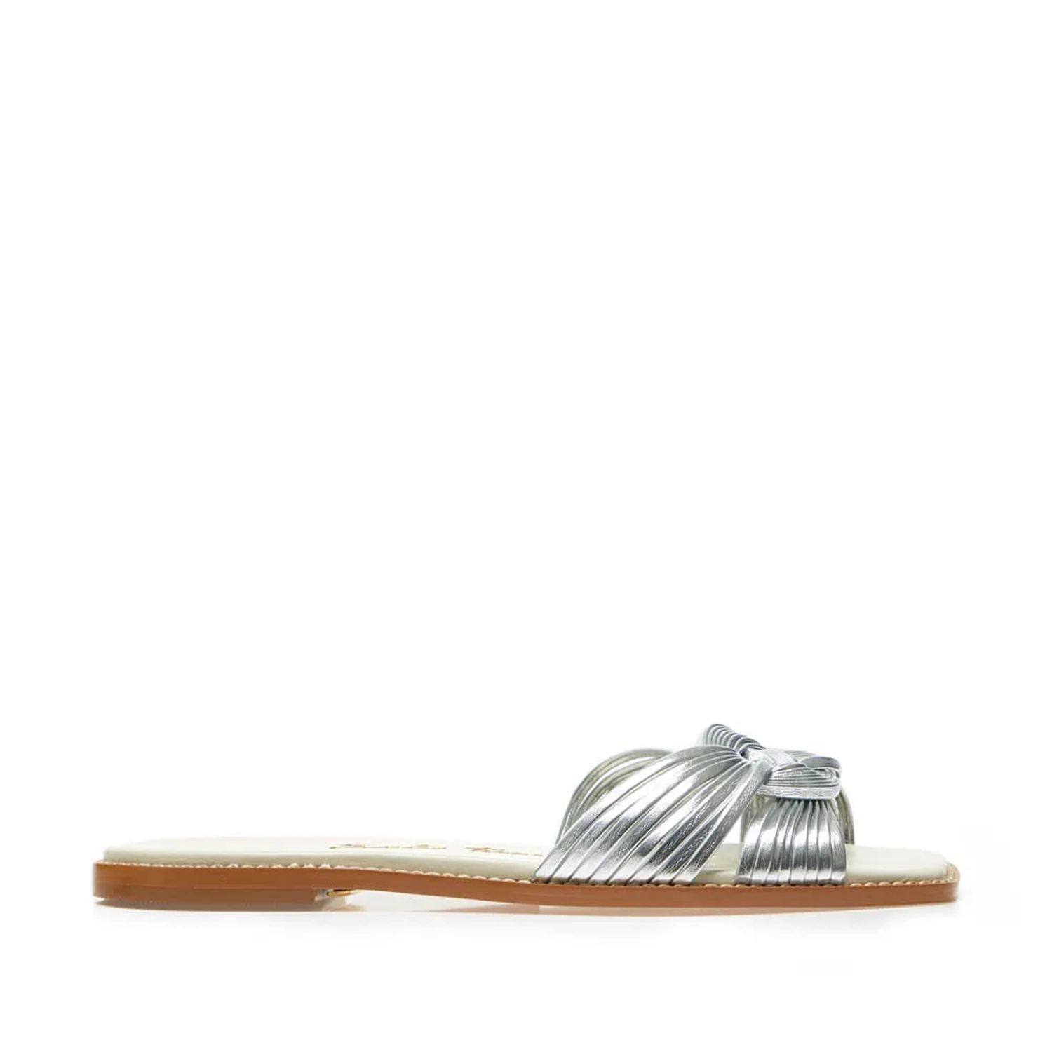 Perfeita para aproveitar o Verão, a rasteira Adele é produzida com tiras finas metalizadas, formando um design artesanal na parte superior. Palmilha acolchoada e vira em couro dão maior confortabilidade a peça.