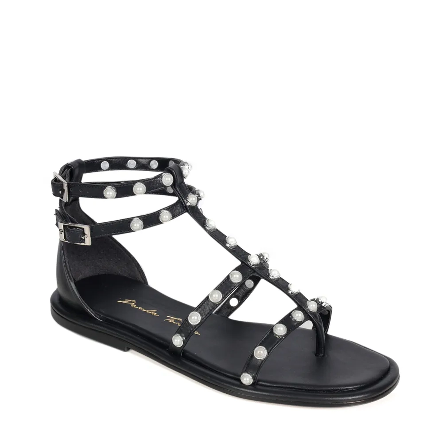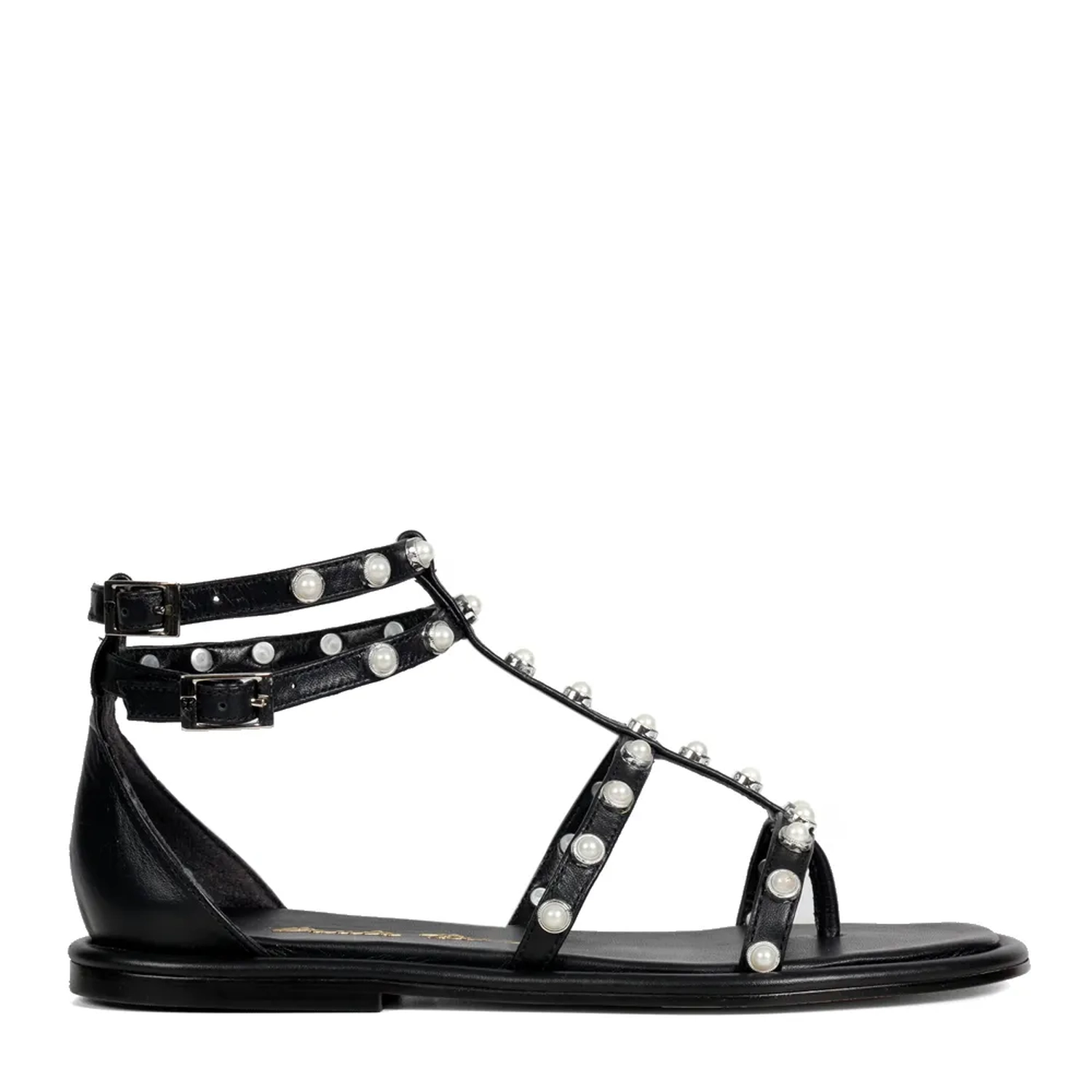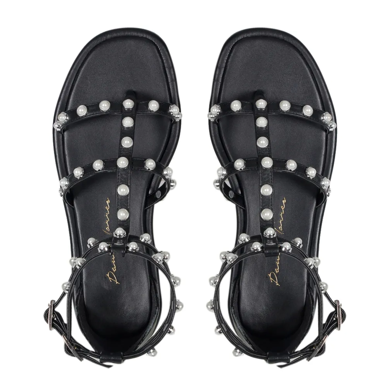 A Rasteira Alexa é confeccionada em couro. Modelagem estilo gladiadora com bico redondo. As aplicações de pérolas sobre as tiras revestidas em couro realçam a feminilidade e trazem um conceito novo. O fechamento lateral é realizado por duas fivelas. Aposte nesse modelo para tornar seus looks inesquecíveis!